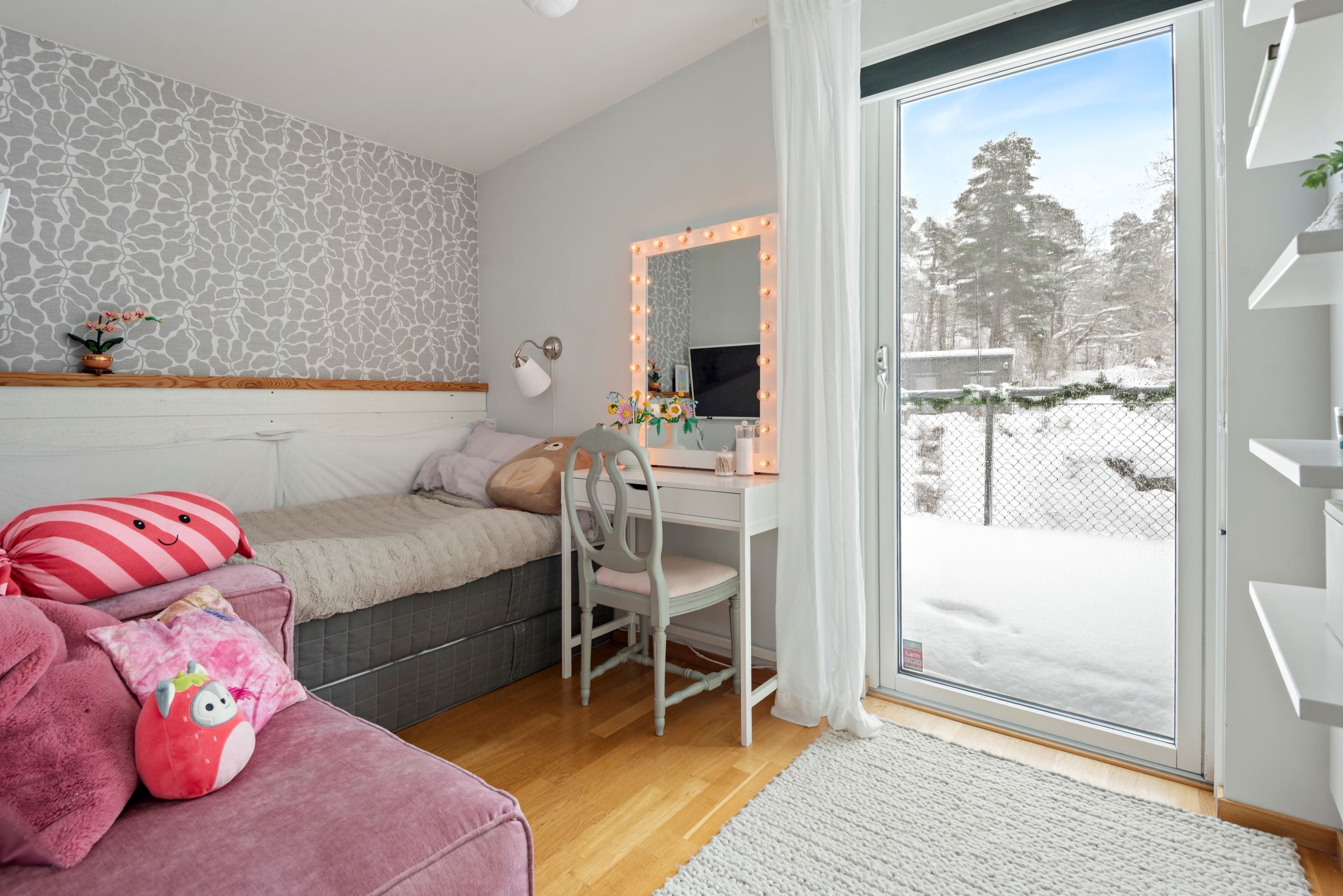 * Parkering med laddstolpe för elbil och uttag för motorvärmare, plogning av väg, utomhusförråd, bostadsrättstillägget.