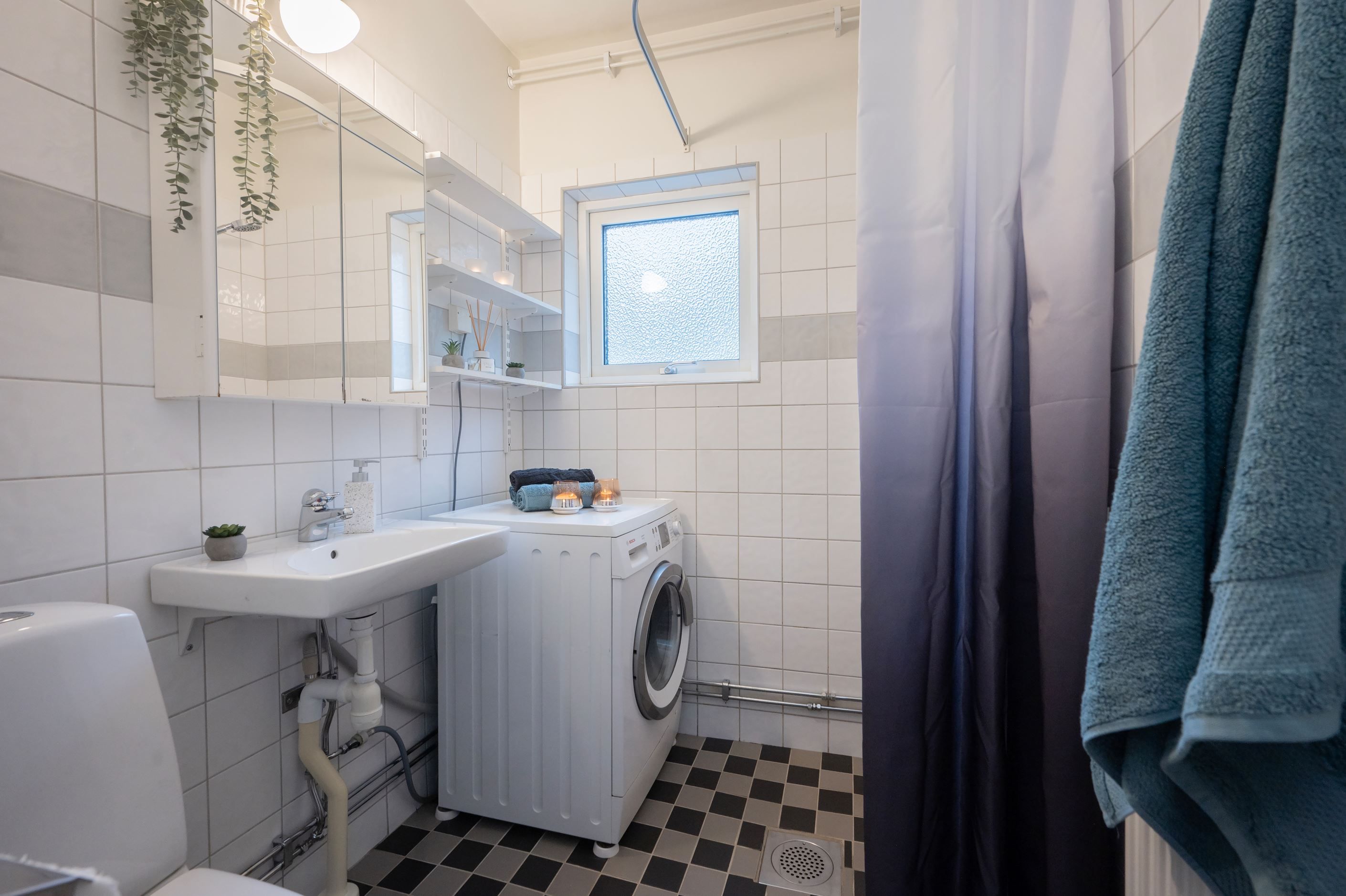 Badrummet är stambytt och fräscht, vilket gör att du slipper tänka på en stor renoveringspost. Sovrummet är rogivande och lättmöblerat, med plats för både dubbelsäng och bra förvaringslösningar. Till lägenheten hör även ett källarförråd.
