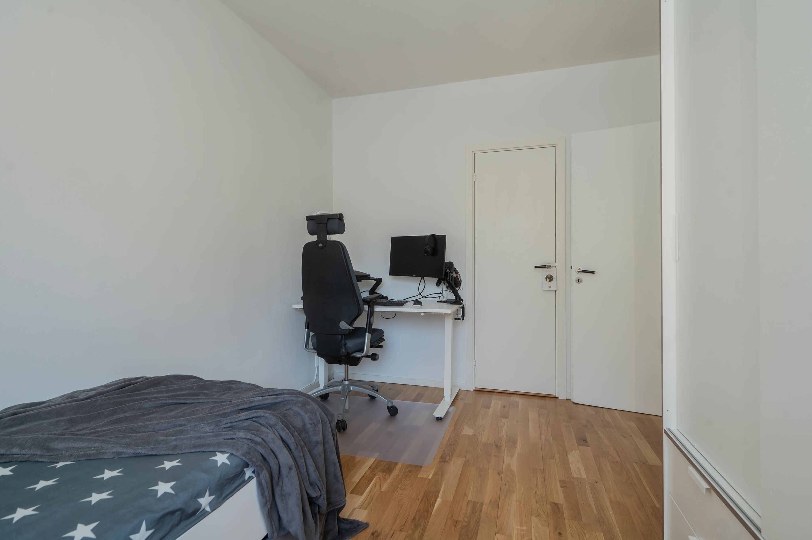 Bostaden har en genomtänkt planlösning med ljusa ytor, genomgående parkettgolv och fina materialval som skapar en varm och välkomnande känsla. Det rymliga vardagsrummet har stora fönster som släpper in mycket dagsljus, och här finns gott om plats för både umgänge och avkoppling. En smart tillbyggd sovalkov gör att rummet även kan rymma ett extra sovutrymme, ett hemmakontor eller en lugn läshörna, beroende på vad du behöver. Sovalkoven kan du annars enkelt ta bort då inget är fastskruvat i parkettgolvet.
