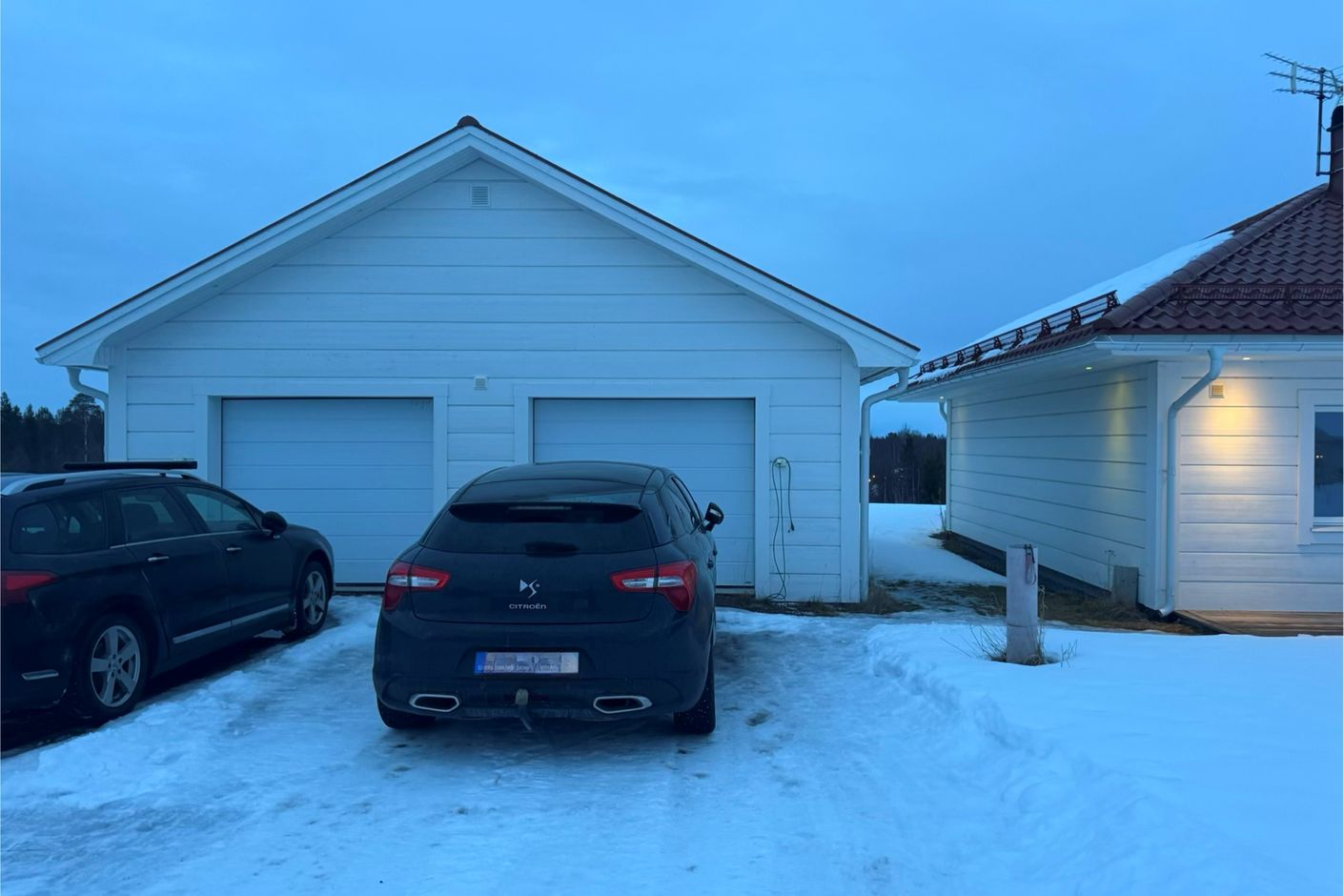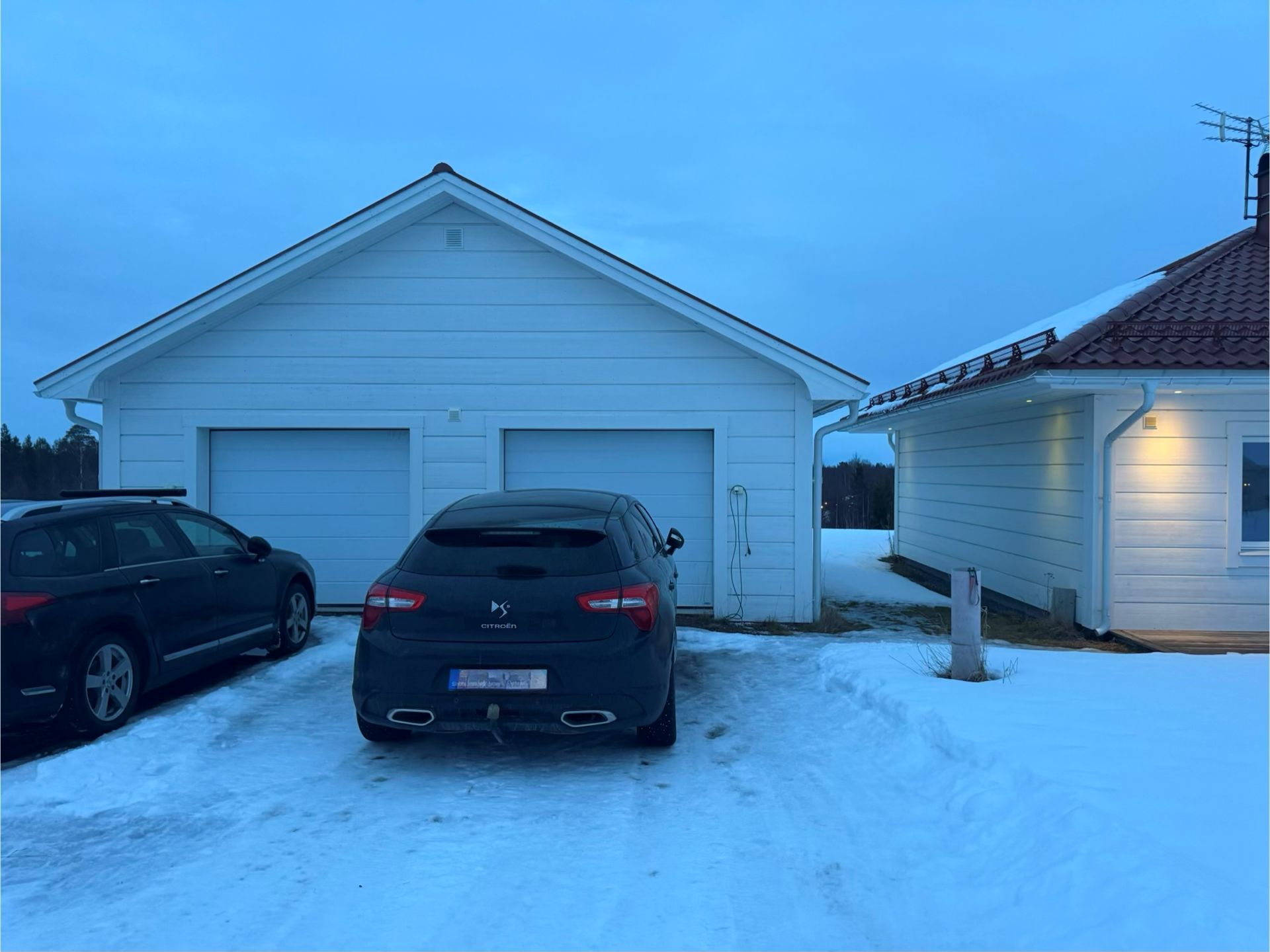 På tomten finns ett stort dubbelgarage.