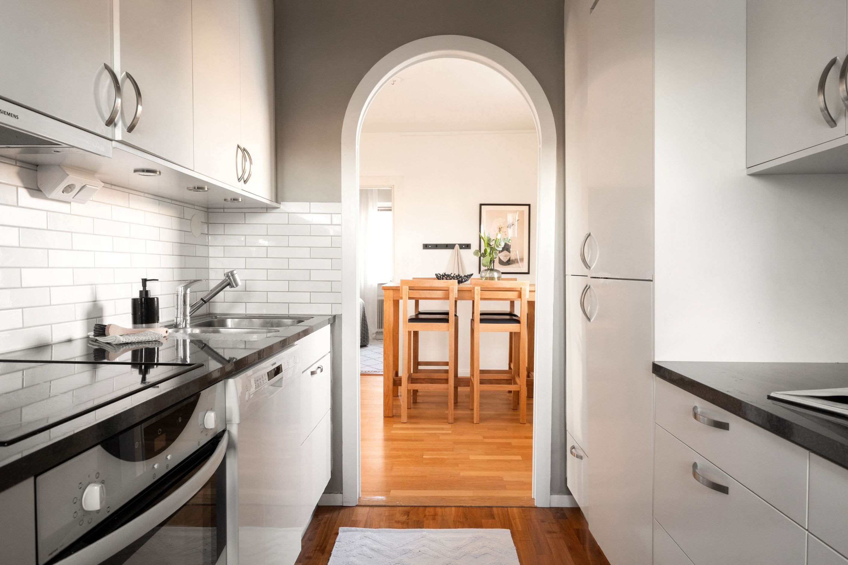 Det separata köket från Marbodal är praktiskt utformat med goda arbetsytor, förvaring i över- och underskåp samt plats för nödvändig utrustning. Sovrummet är väl tilltaget och erbjuder plats för dubbelsäng samt förvaring i garderober. Det extra rummet lämpar sig väl som arbetsrum, barnrum eller gästrum.