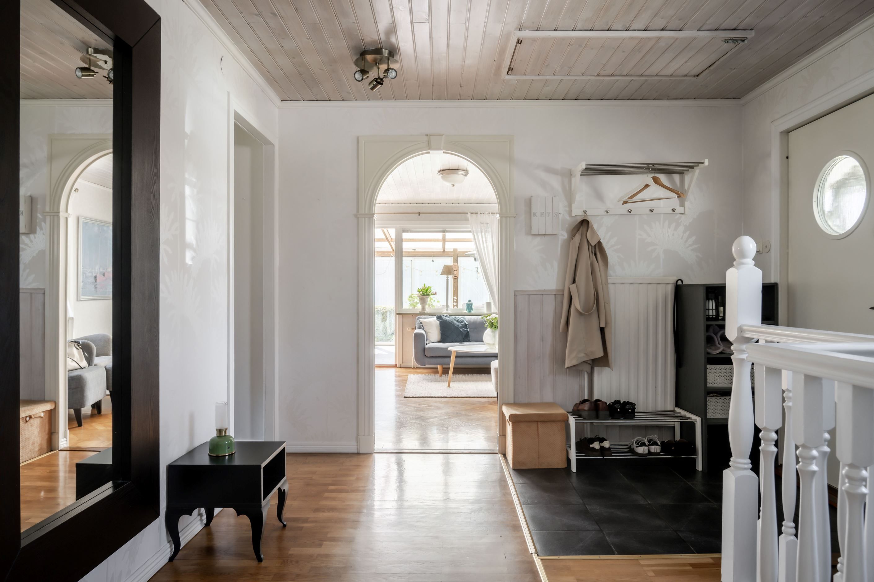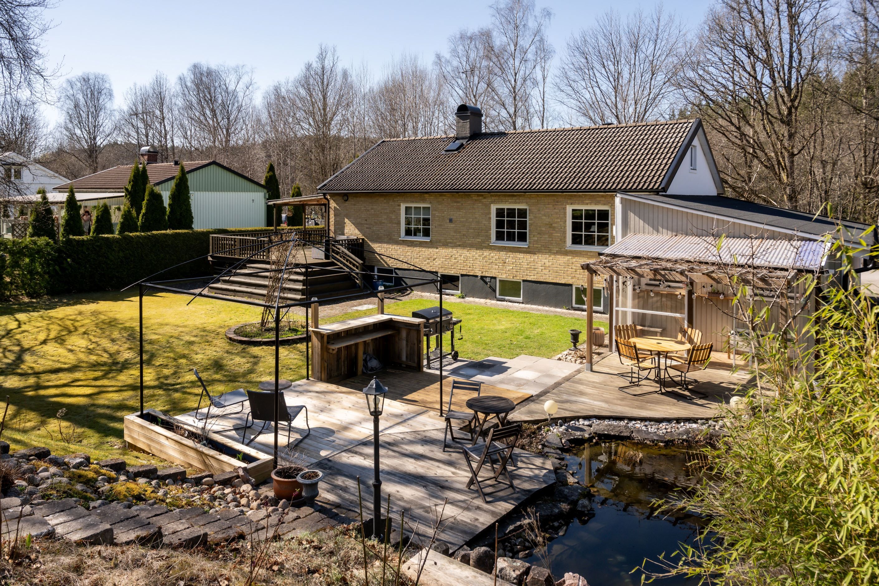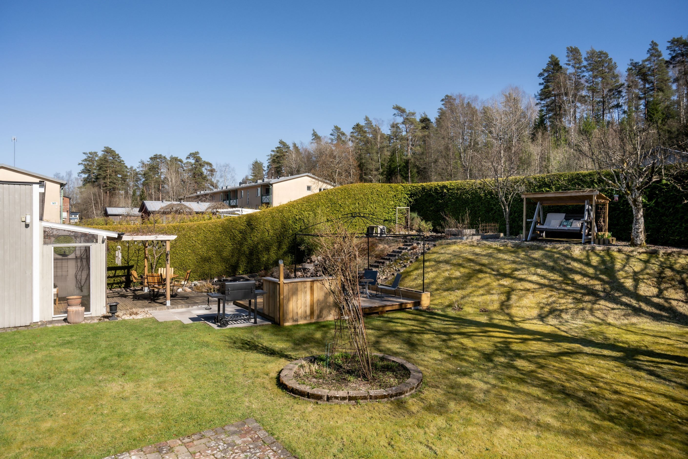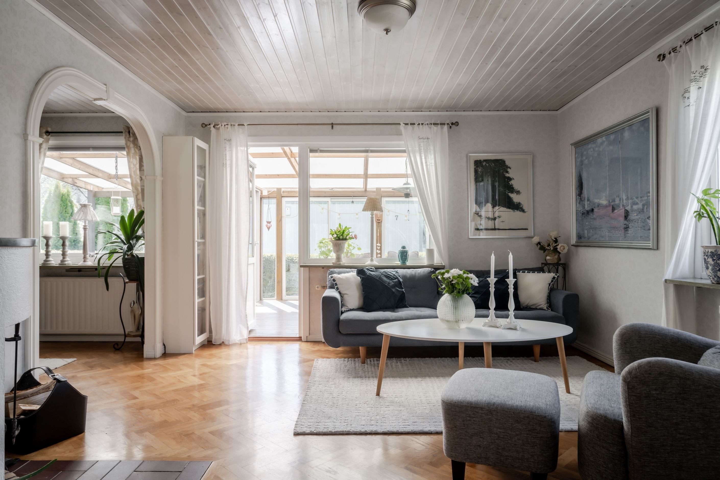 Välkomna till Egnahemsgatan 5 och detta välskötta och påkostade 1-planshus med källare. Här väntar 87 välplanerade kvadratmeter med en lika stor källare. Entréplan bjuder på rymlig hall, tre sovrum, badrum (idag endast gäst-WC men går att återställa ett badkar här), kök, matplats och vardagsrum i halvöppen planlösning samt utgång till inglasat uterum och husets baksida med uteplats och välskött trädgård. En trappa ner väntar ett stort allrum, idag inrett som tonårsrum, gäst-WC, tvättstuga och bastu/relax. Utöver detta finns pannrum, matkällare och förråd. På baksidan erbjuds man flera uteplatser, egen damm, växthus och köksträdgård. Hela baksidan är fint inramad av välklippt häck.