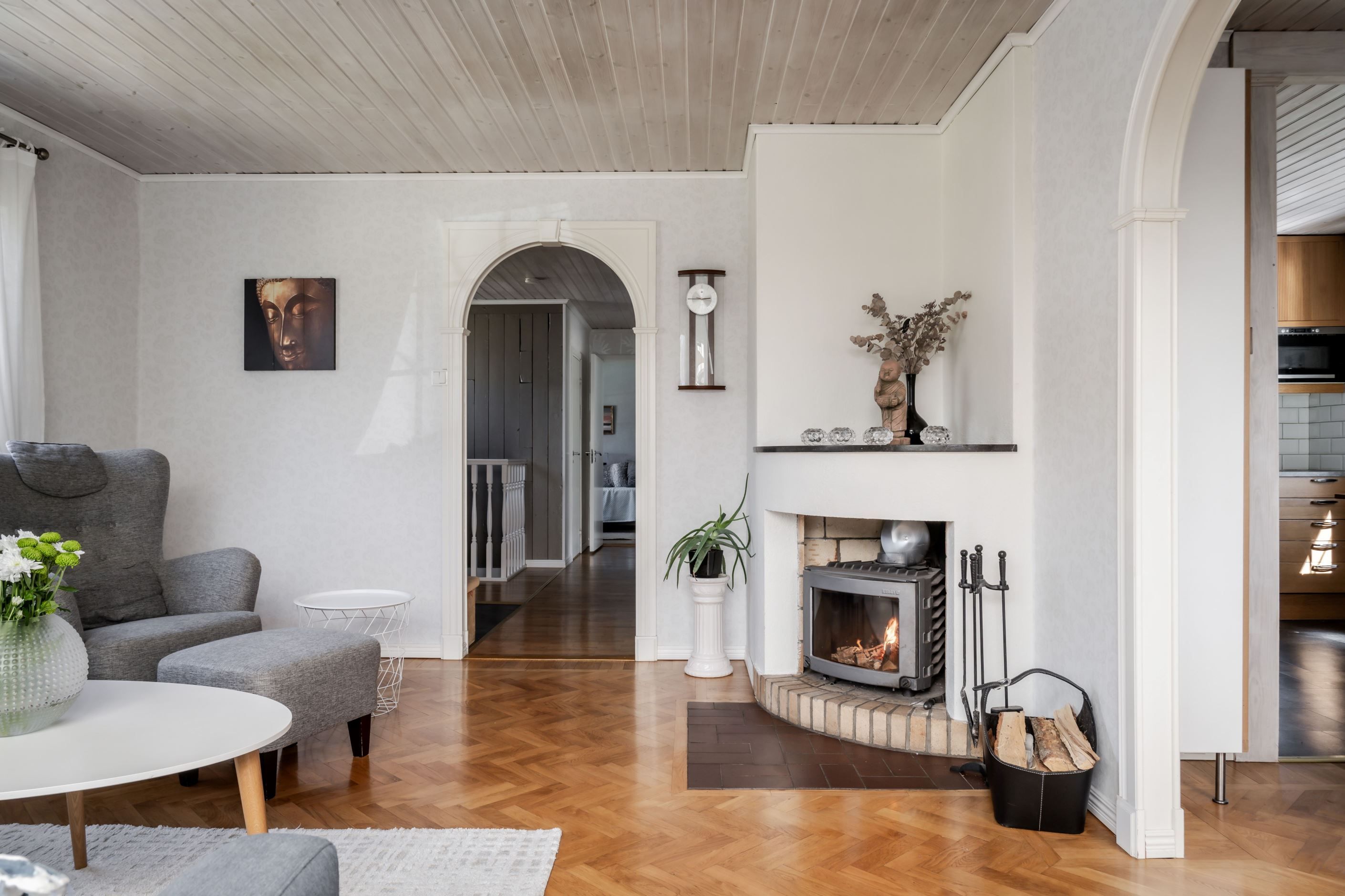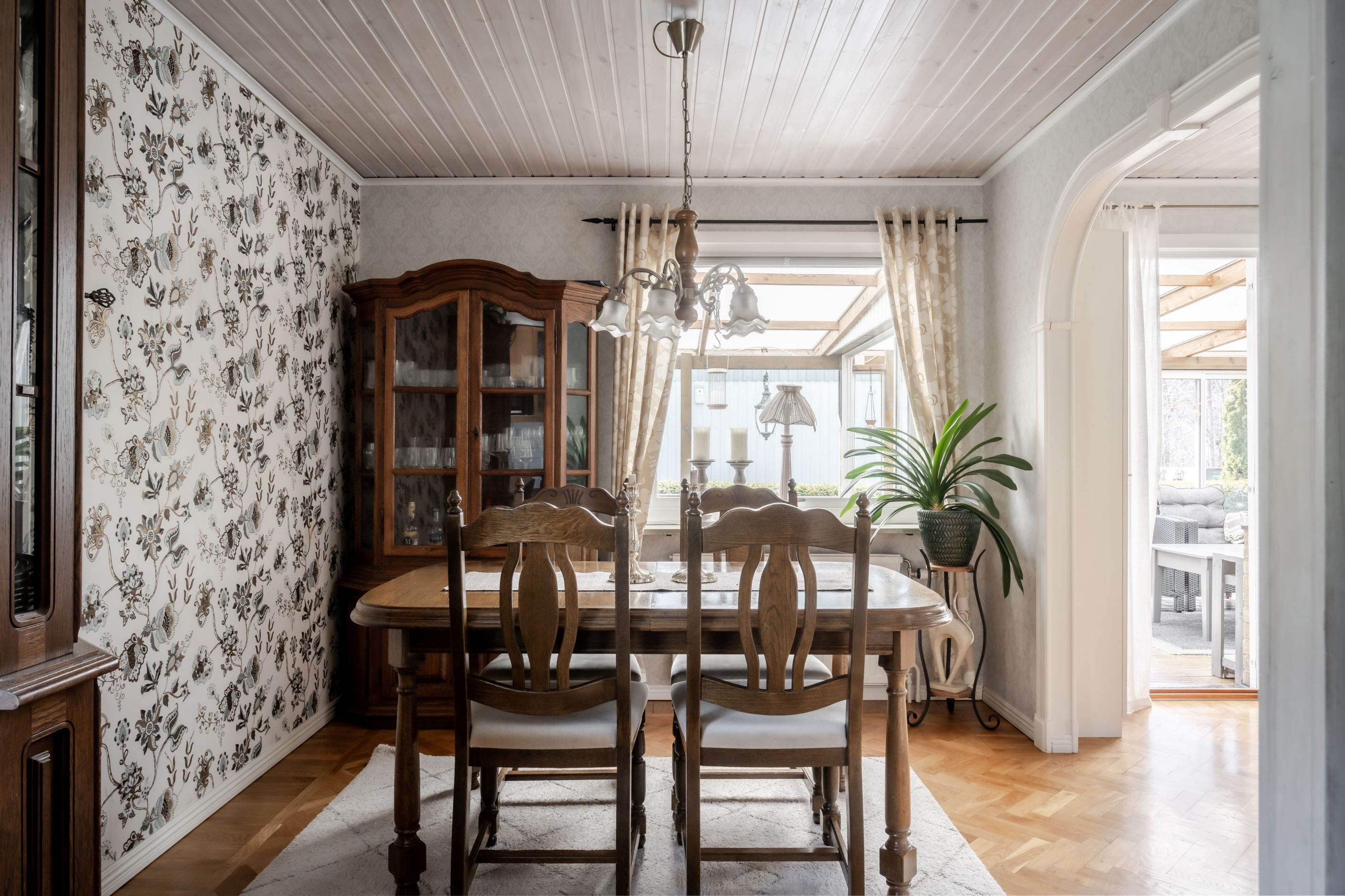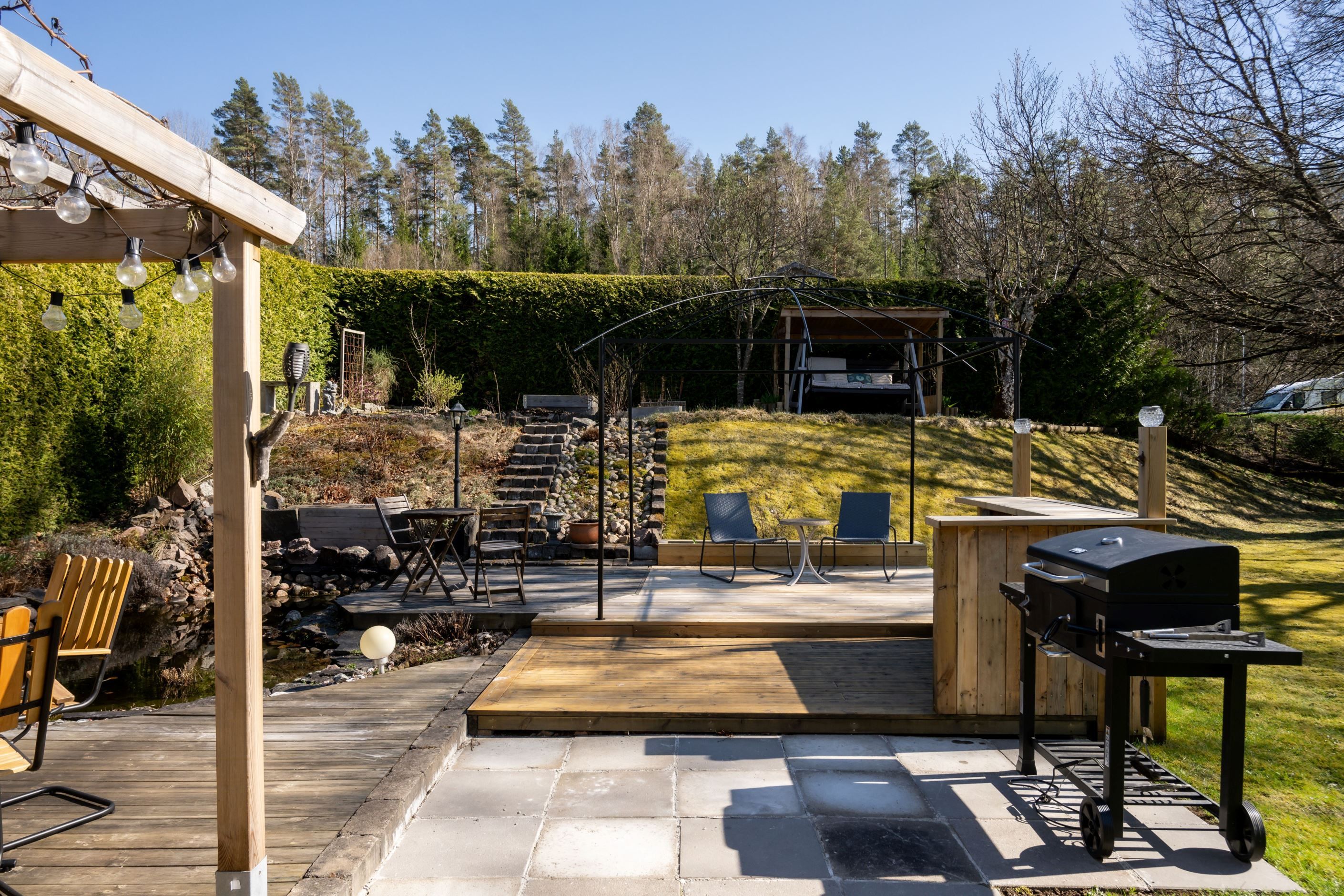 Välkomna till Egnahemsgatan 5 och detta välskötta och påkostade 1-planshus med källare. Här väntar 87 välplanerade kvadratmeter med en lika stor källare. Entréplan bjuder på rymlig hall, tre sovrum, badrum (idag endast gäst-WC men går att återställa ett badkar här), kök, matplats och vardagsrum i halvöppen planlösning samt utgång till inglasat uterum och husets baksida med uteplats och välskött trädgård. En trappa ner väntar ett stort allrum, idag inrett som tonårsrum, gäst-WC, tvättstuga och bastu/relax. Utöver detta finns pannrum, matkällare och förråd. På baksidan erbjuds man flera uteplatser, egen damm, växthus och köksträdgård. Hela baksidan är fint inramad av välklippt häck.