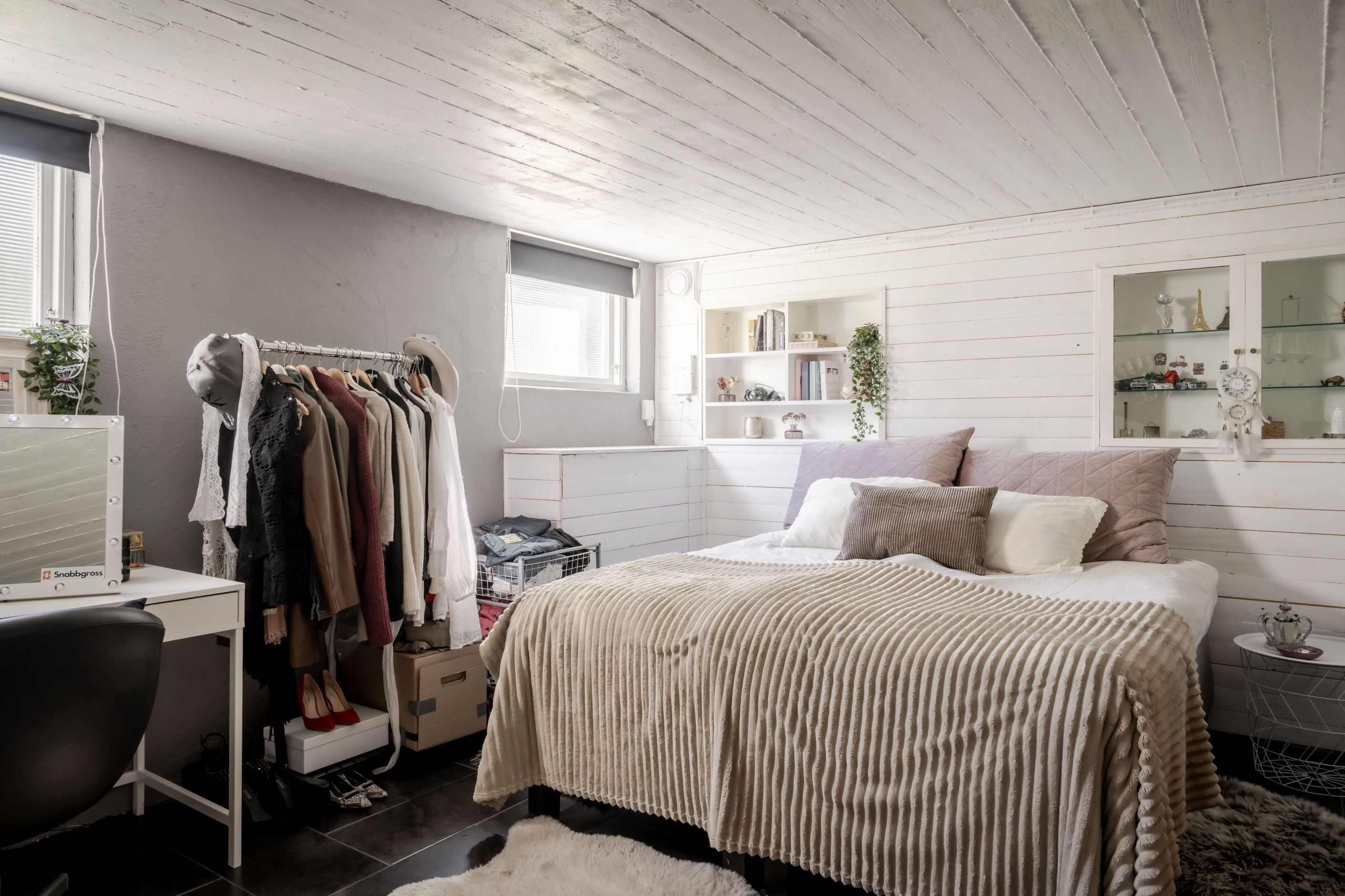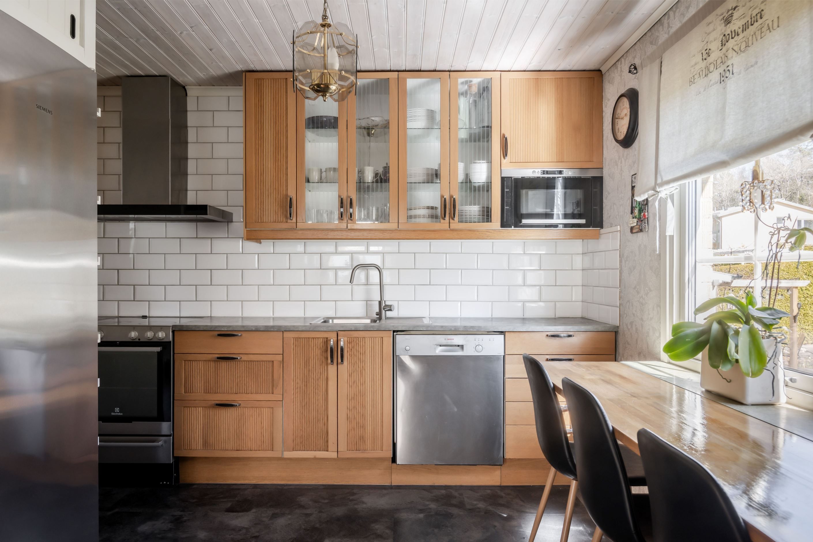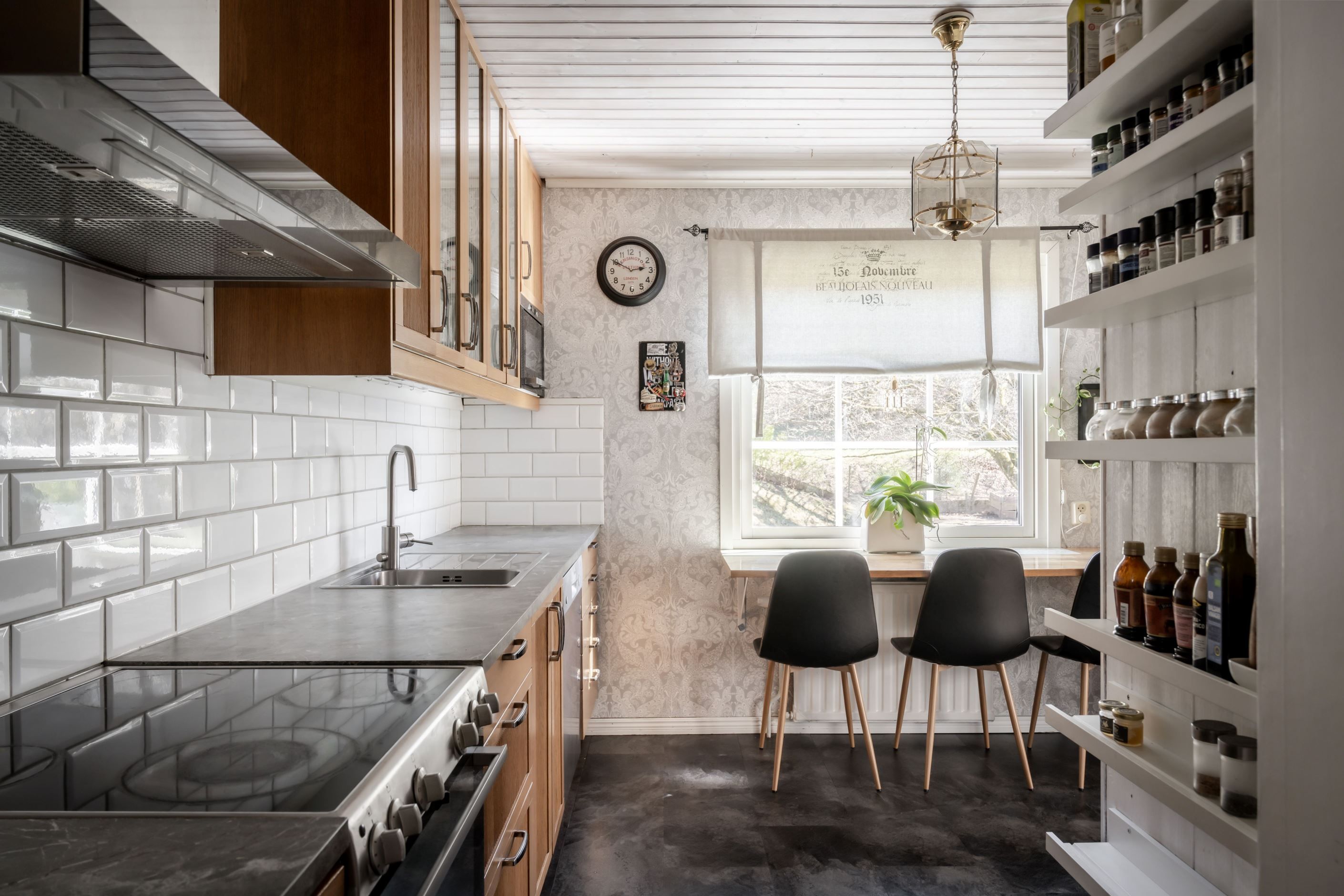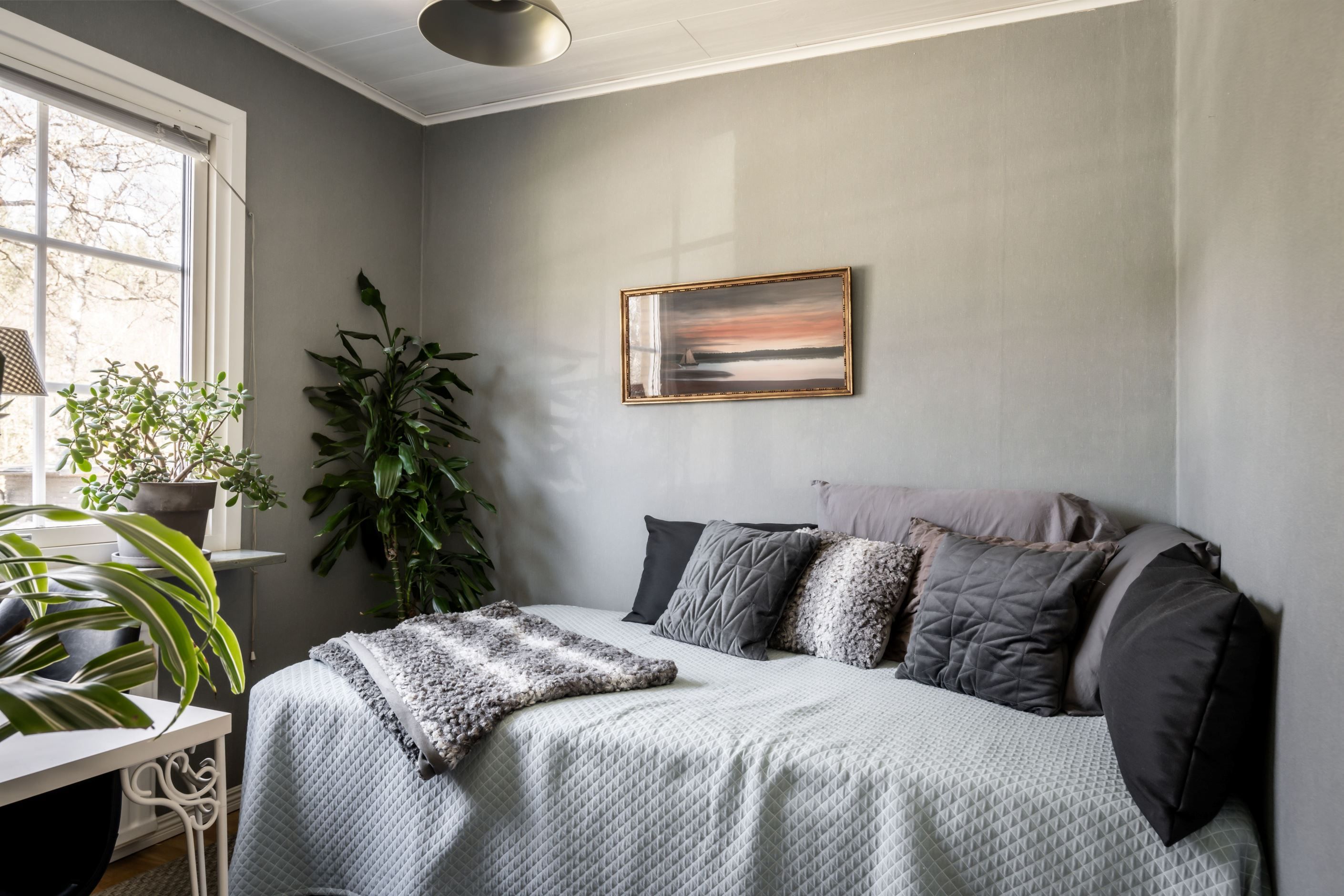 Välkomna till Egnahemsgatan 5 och detta välskötta och påkostade 1-planshus med källare. Här väntar 87 välplanerade kvadratmeter med en lika stor källare. Entréplan bjuder på rymlig hall, tre sovrum, badrum (idag endast gäst-WC men går att återställa ett badkar här), kök, matplats och vardagsrum i halvöppen planlösning samt utgång till inglasat uterum och husets baksida med uteplats och välskött trädgård. En trappa ner väntar ett stort allrum, idag inrett som tonårsrum, gäst-WC, tvättstuga och bastu/relax. Utöver detta finns pannrum, matkällare och förråd. På baksidan erbjuds man flera uteplatser, egen damm, växthus och köksträdgård. Hela baksidan är fint inramad av välklippt häck.