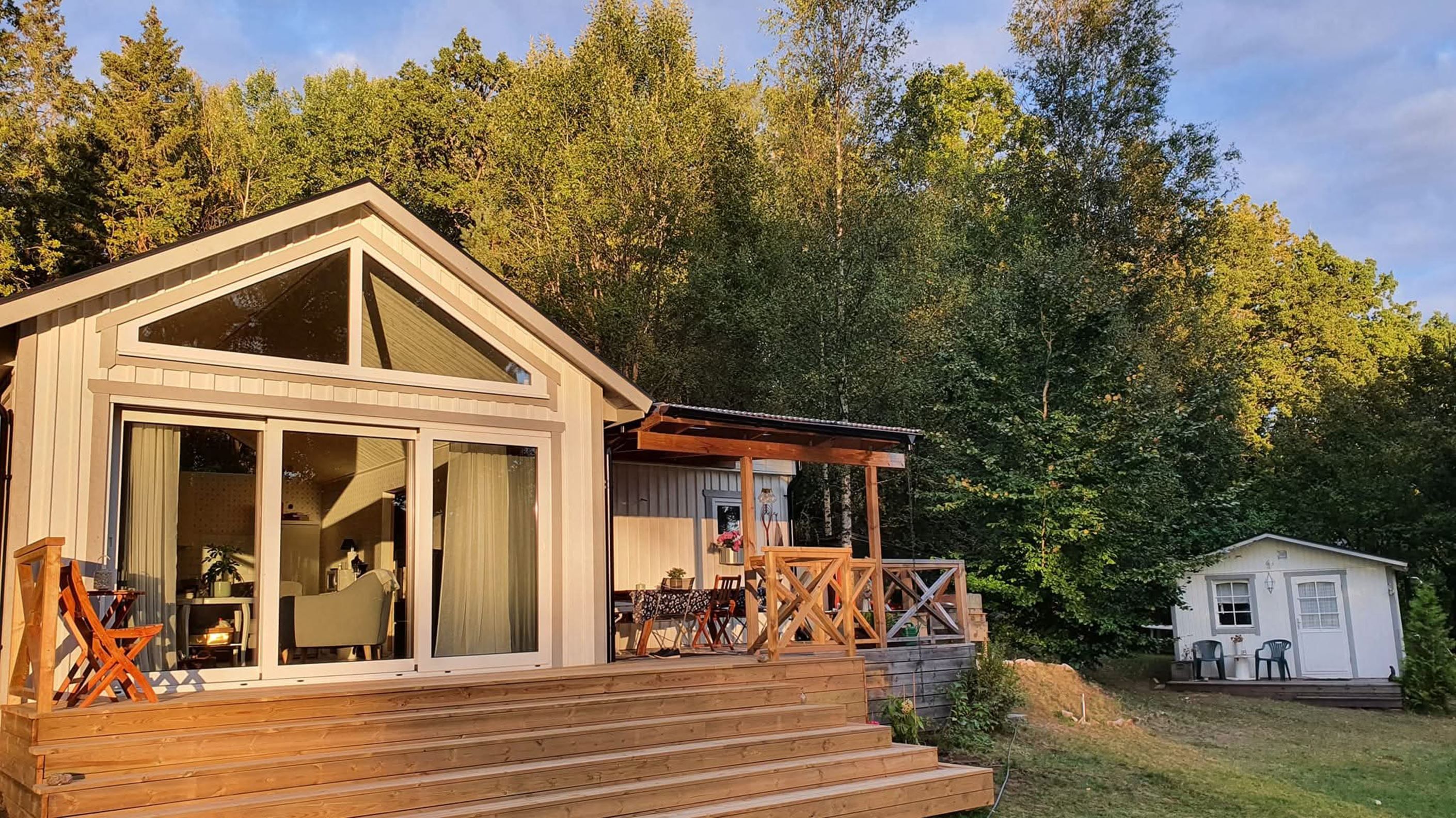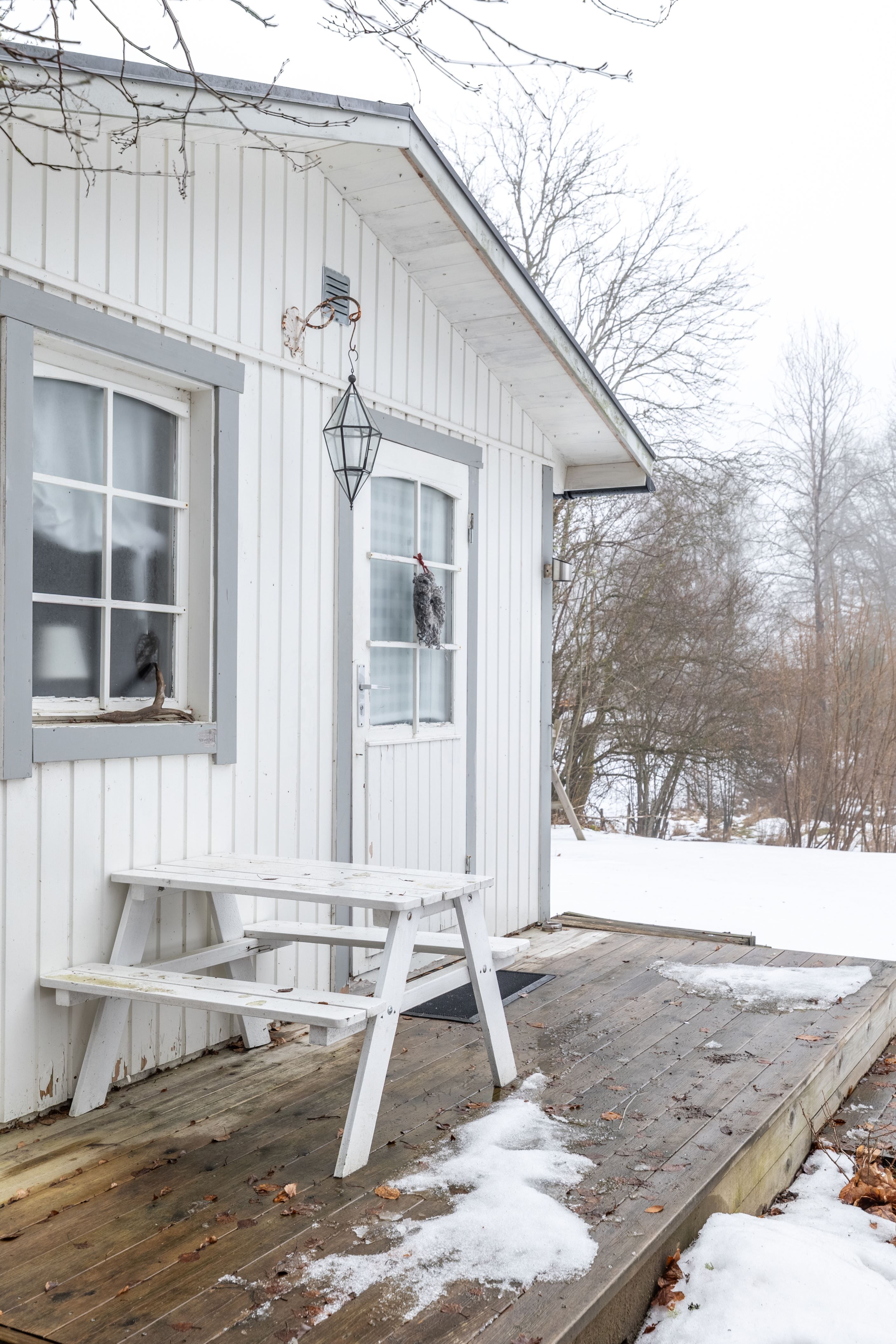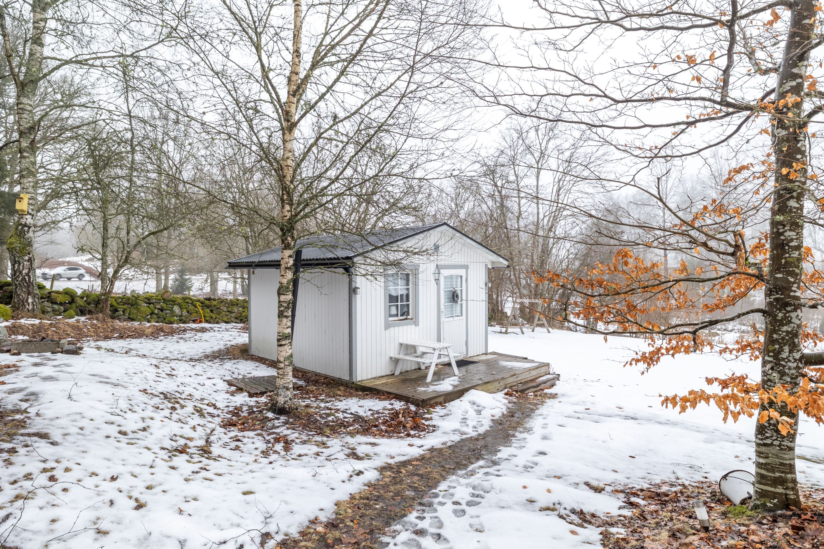 På tomten finns även en mysig gäststuga med plats för dubbelsäng och soffgrupp – perfekt för övernattande gäster eller som en avskild plats för lugn och ro.