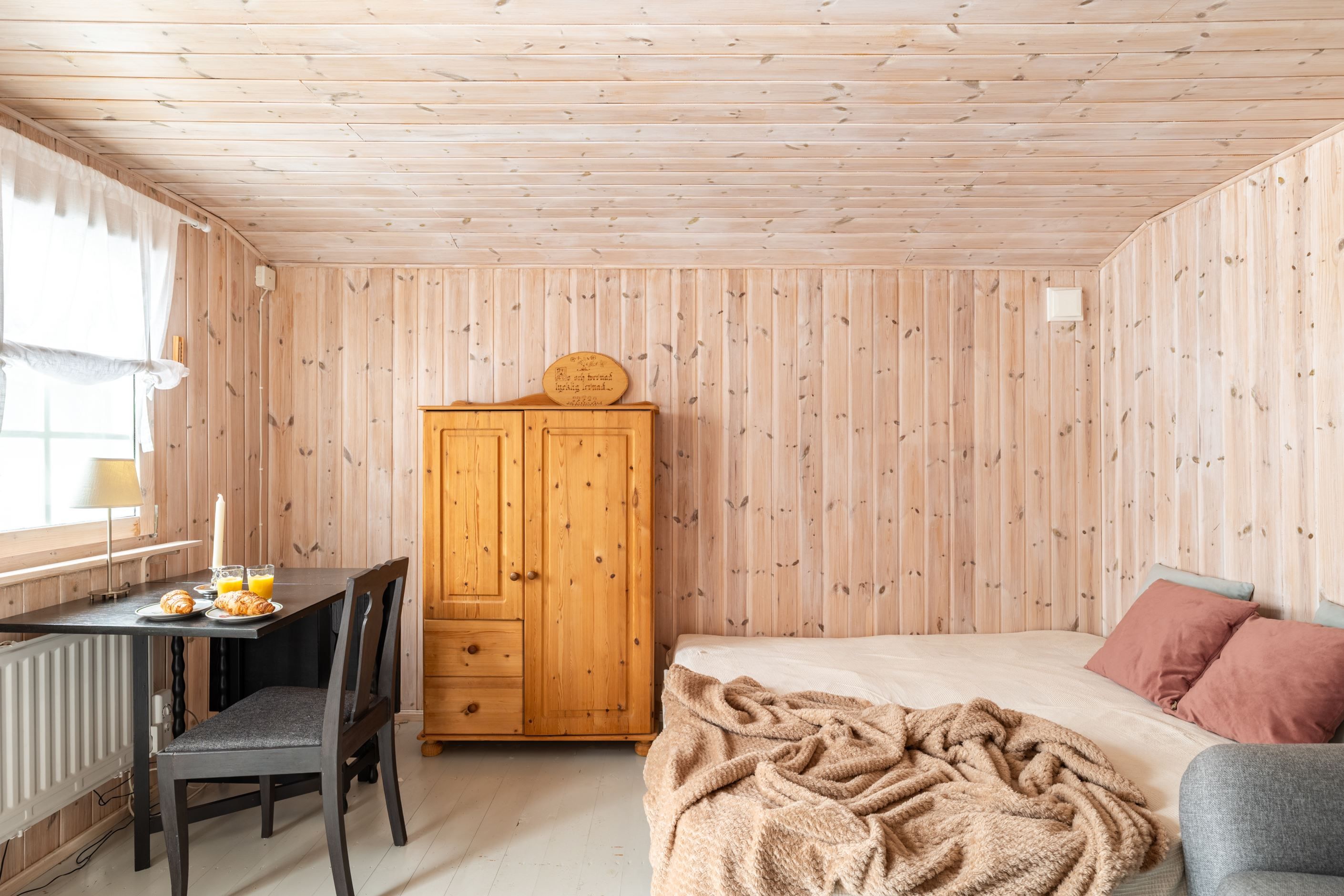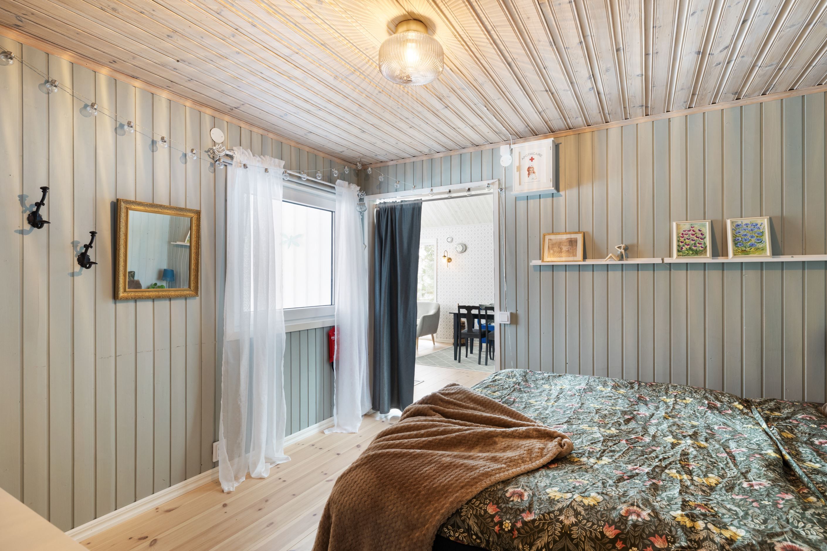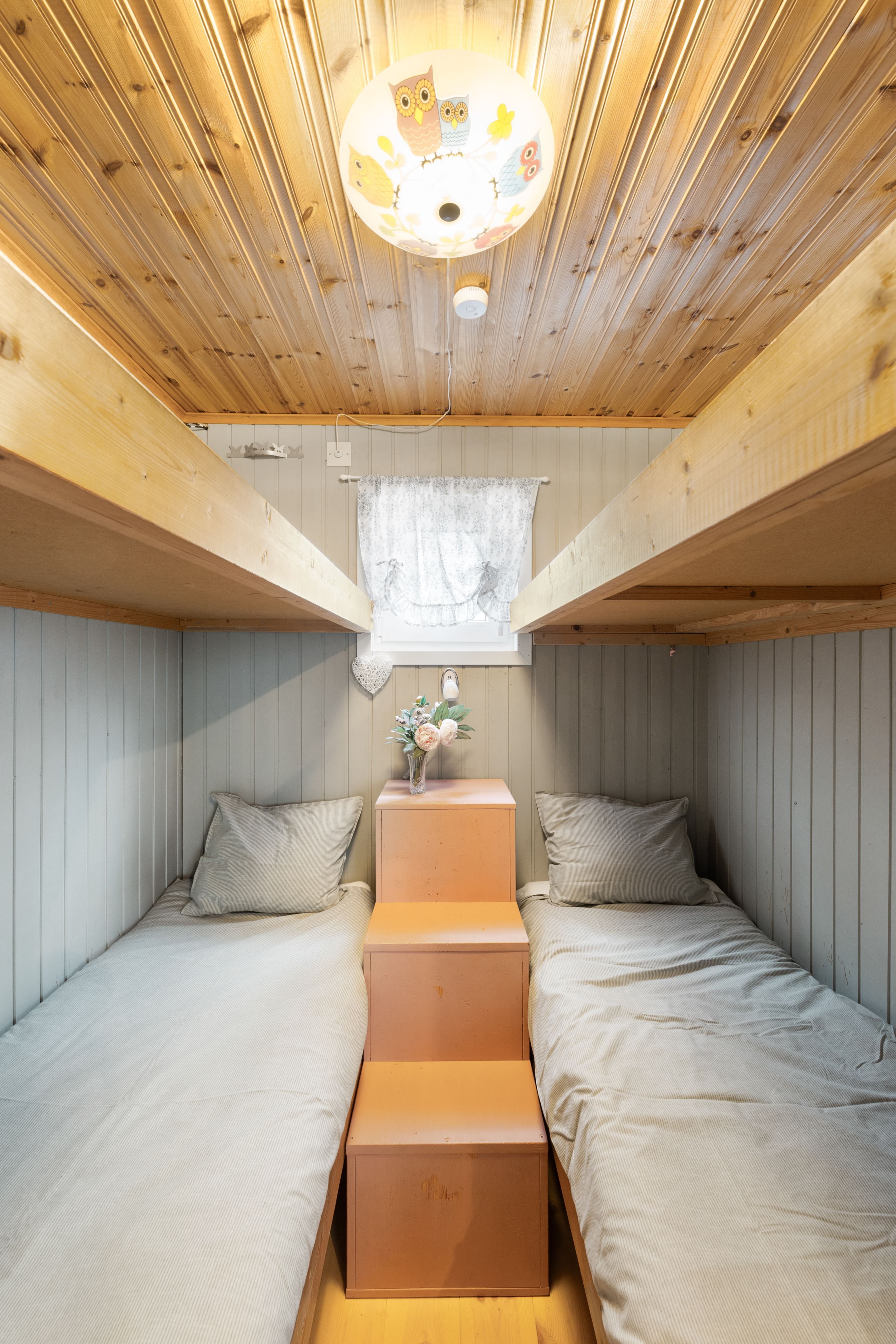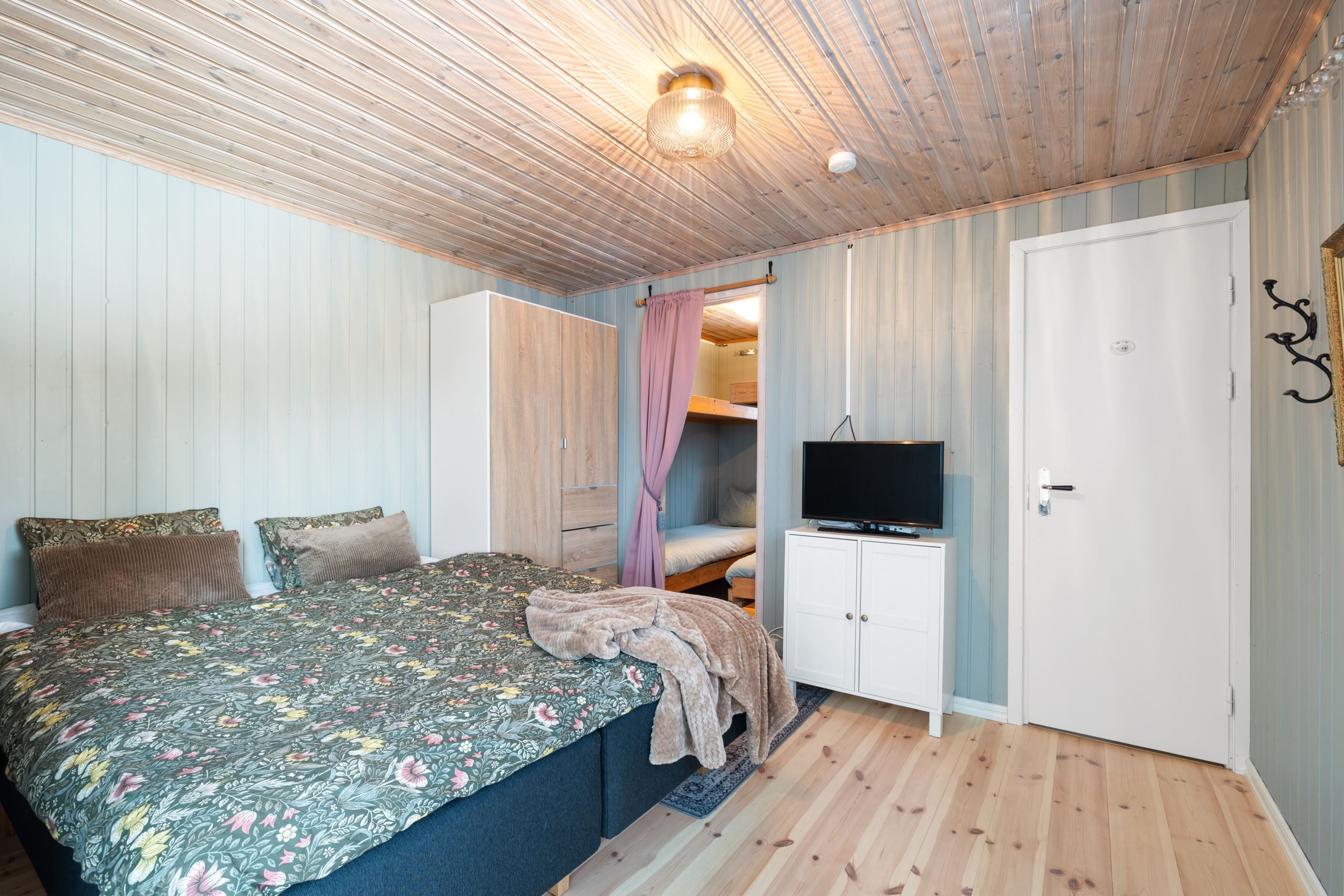 Bostaden rymmer ett rymligt sovrum med plats för dubbelsäng samt ett mindre rum som idag är inrett med två våningssängar (fyra bäddar). Rummet är mindre till storleken och kan därför inte formellt klassificeras som sovrum, men fungerar utmärkt som barnrum eller extra sovutrymme. Tillsammans med övriga sovplatser finns möjlighet till upp till cirka 10 sängplatser, vilket gör fastigheten perfekt för den större familjen eller för dig som gärna samlar släkt och vänner.
