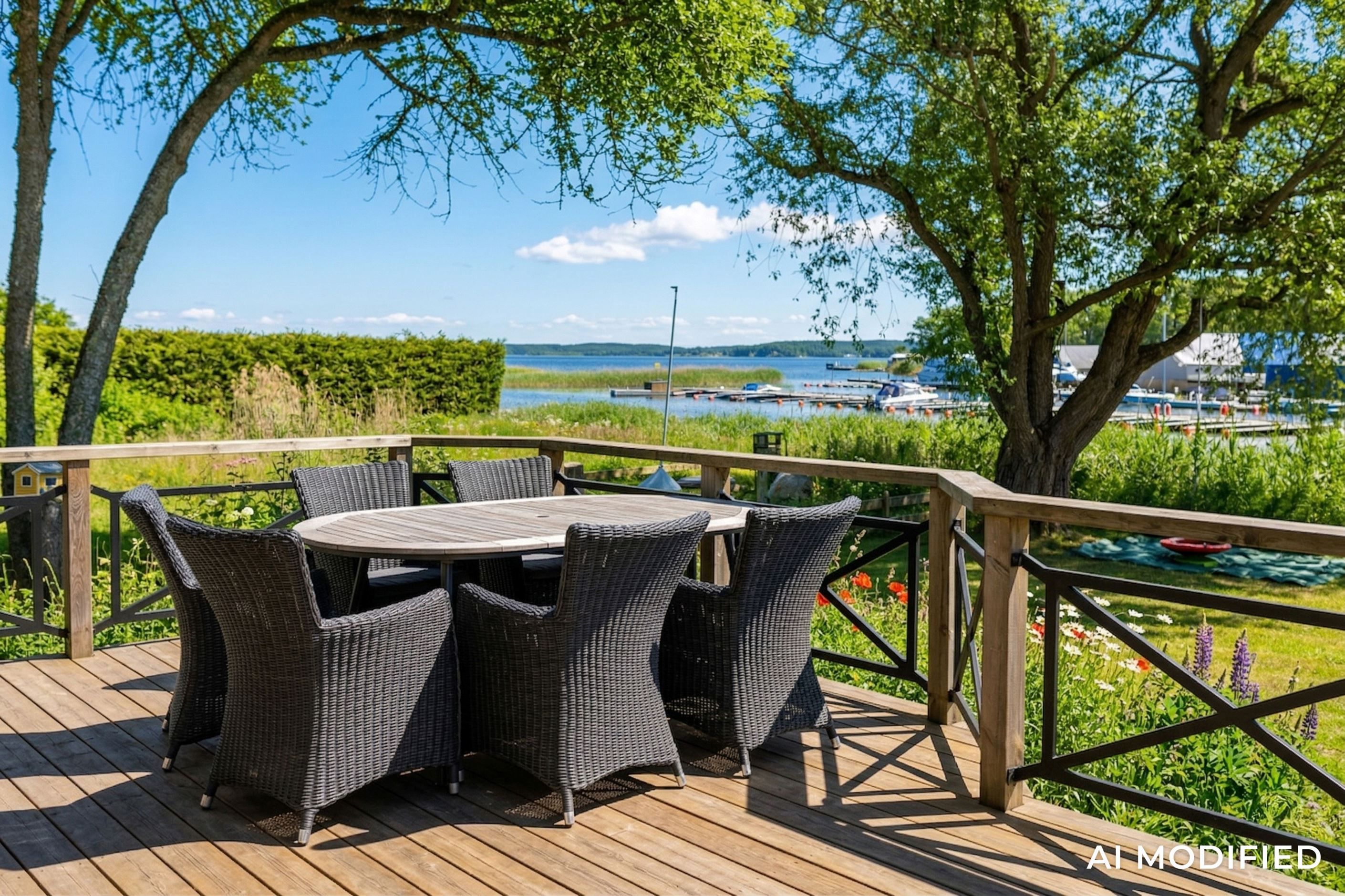 Tänk dig att vakna till ljuset som långsamt sprider sig över Mälarens spegelblanka yta. Från köksfönstret ser du båtarna vid bryggan och trädgårdens små oaser som bjuder in till både lugn och upptäckarlust. Öppnar du altandörren möts du av frisk sjöluft och ljudet av vattnet som kluckar mot bryggorna runt hörnet – en mjuk start på dagen i ett hem där naturen alltid känns nära.