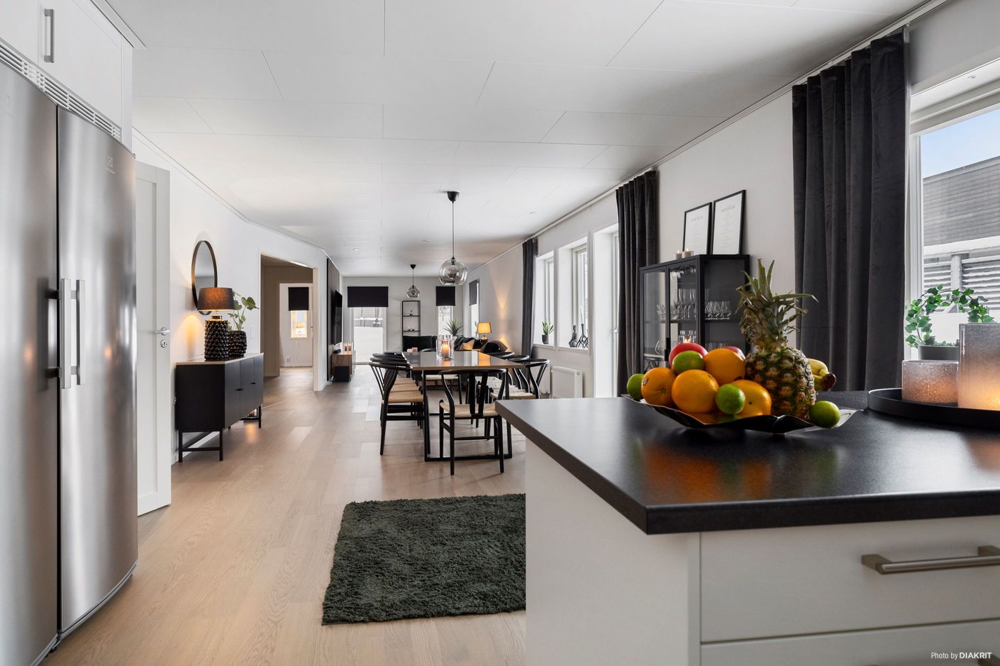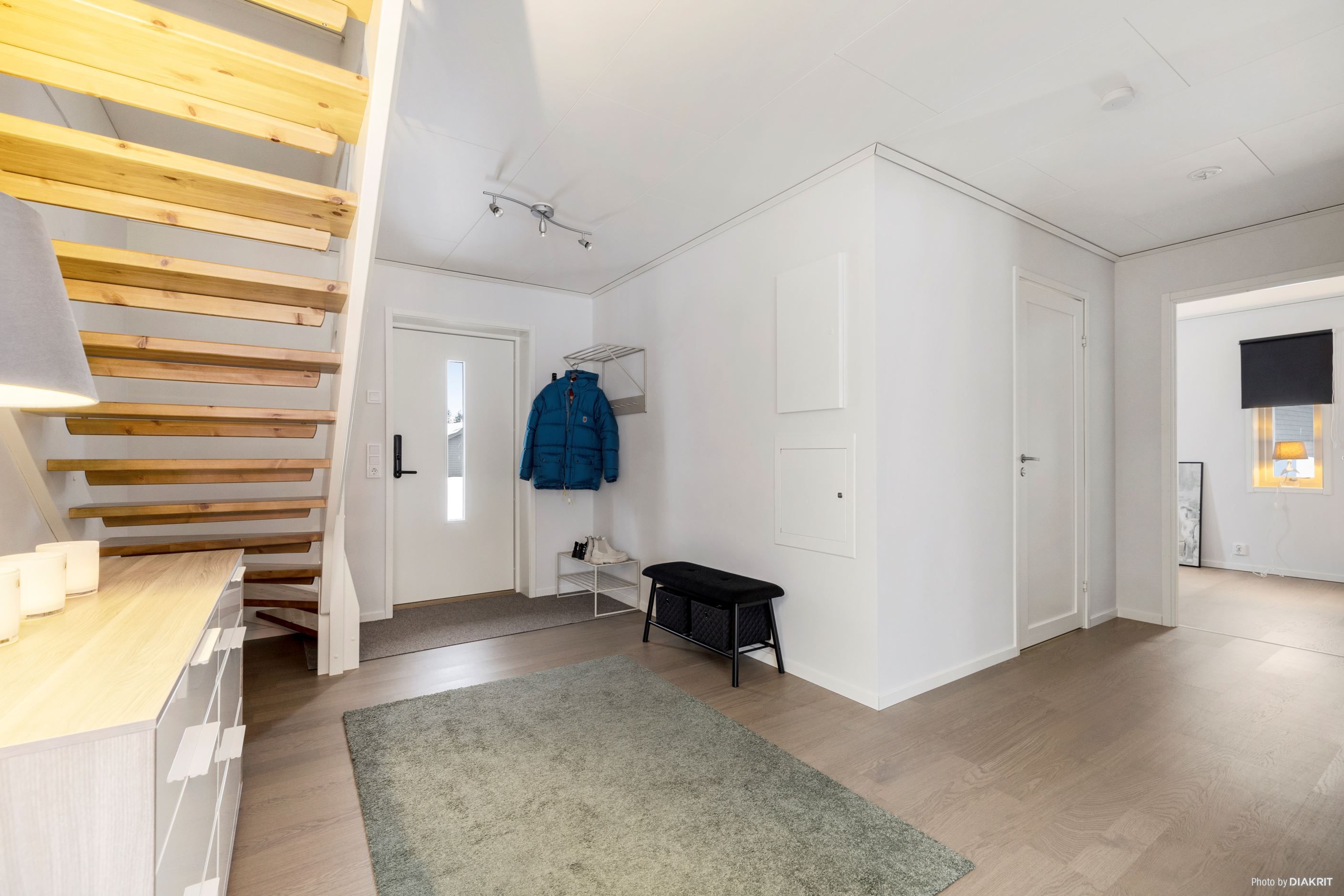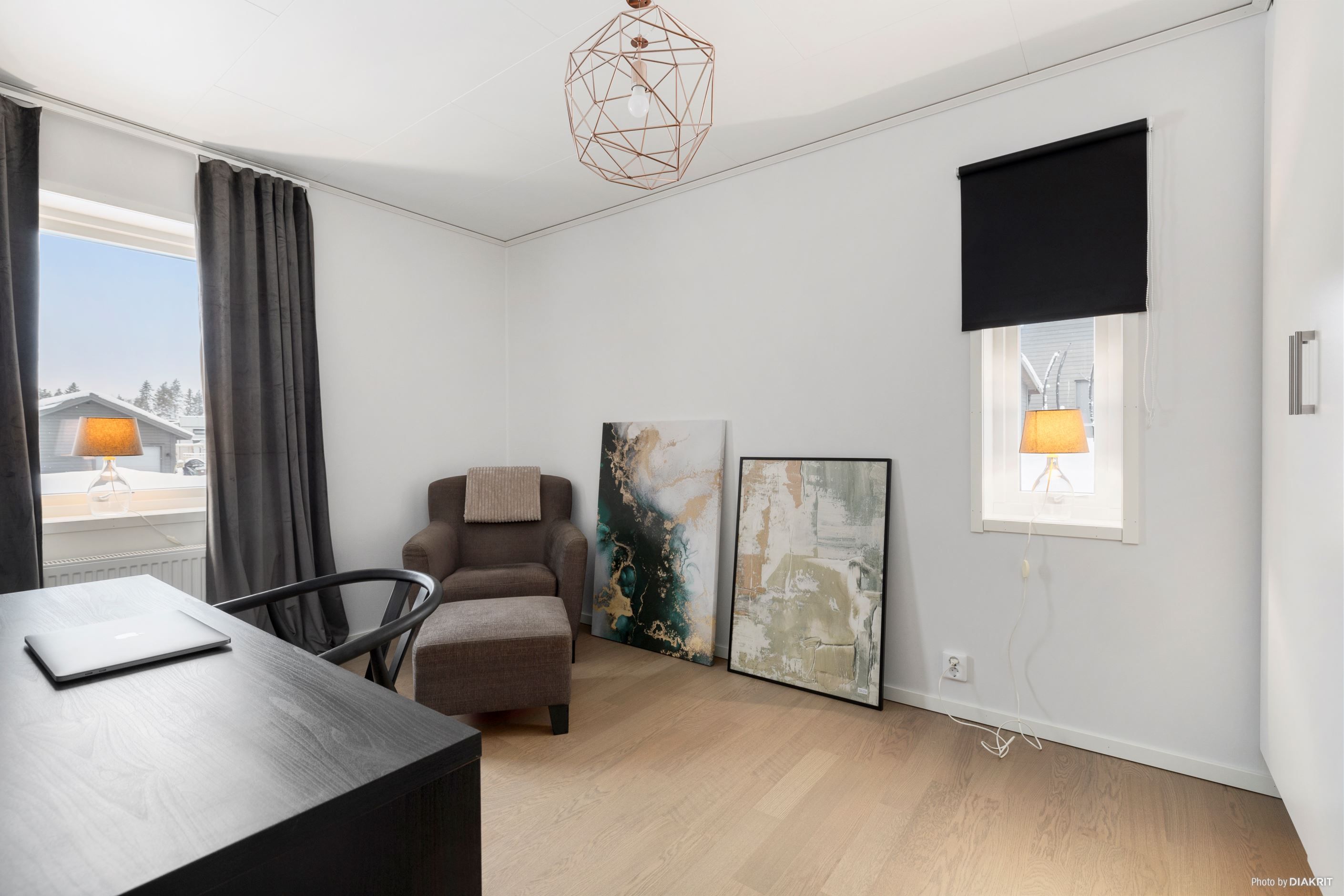 Huset, byggt 2023, är i toppskick och har enhetliga parkettgolv som löper genom alla rum, vilket ger ett elegant och sammanhängande intryck. Här finns två sovrum av god storlek, vilket ger gott om utrymme för både familj och gäster.