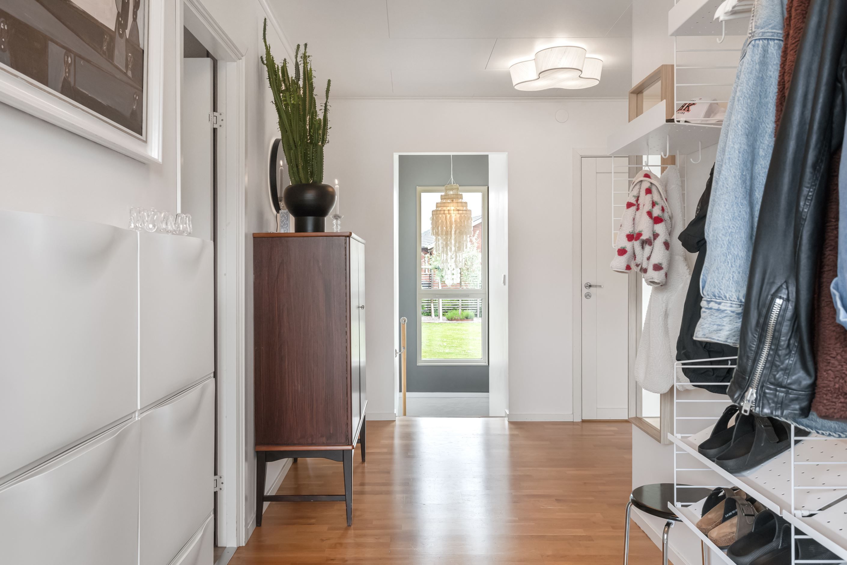 Entréplanet bjuder på en smart och social planlösning med stort vardagsrum, tre sovrum, helkaklat WC, samt ett fantastiskt kök med kvalitetsvitvaror och en 90 cm bred induktionshäll. Det öppna sambandet mot vardagsrummet skapar rymd och ljus – här finns också en braskamin som ger skön värme under årets kallare månader. Källarplanet erbjuder ett stort och ljust allrum, ett svalt och trivsamt rum som använts som sovrum, en modern tvättstuga samt ett påkostat badrum med spakänsla. Här finns även gott om förvaring och en egen ingång – perfekt för tonåringar. En komplett familjevilla med hög standard, låg energiförbrukning och en flexibel planlösning som fungerar lika bra till vardags som till fest. Dessutom är det kort väg till Thunells förskola – ett stort plus för barnfamiljen!
