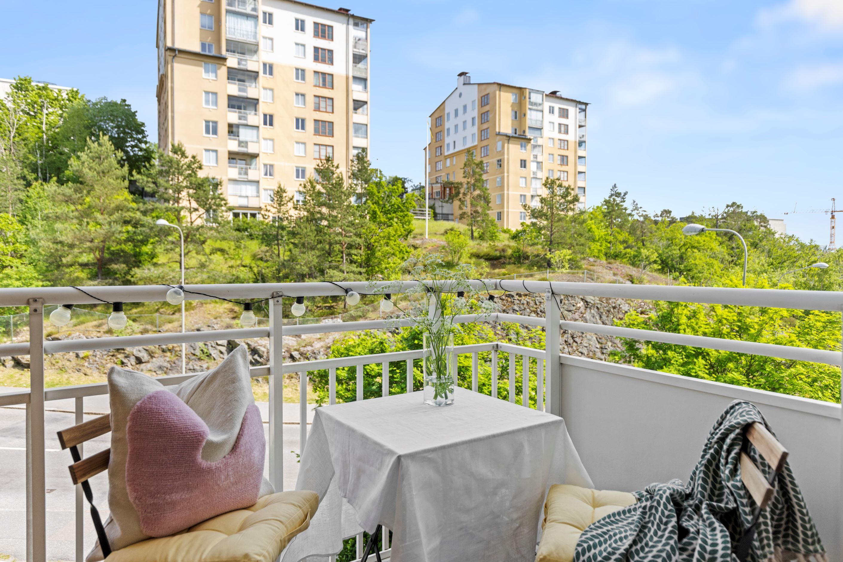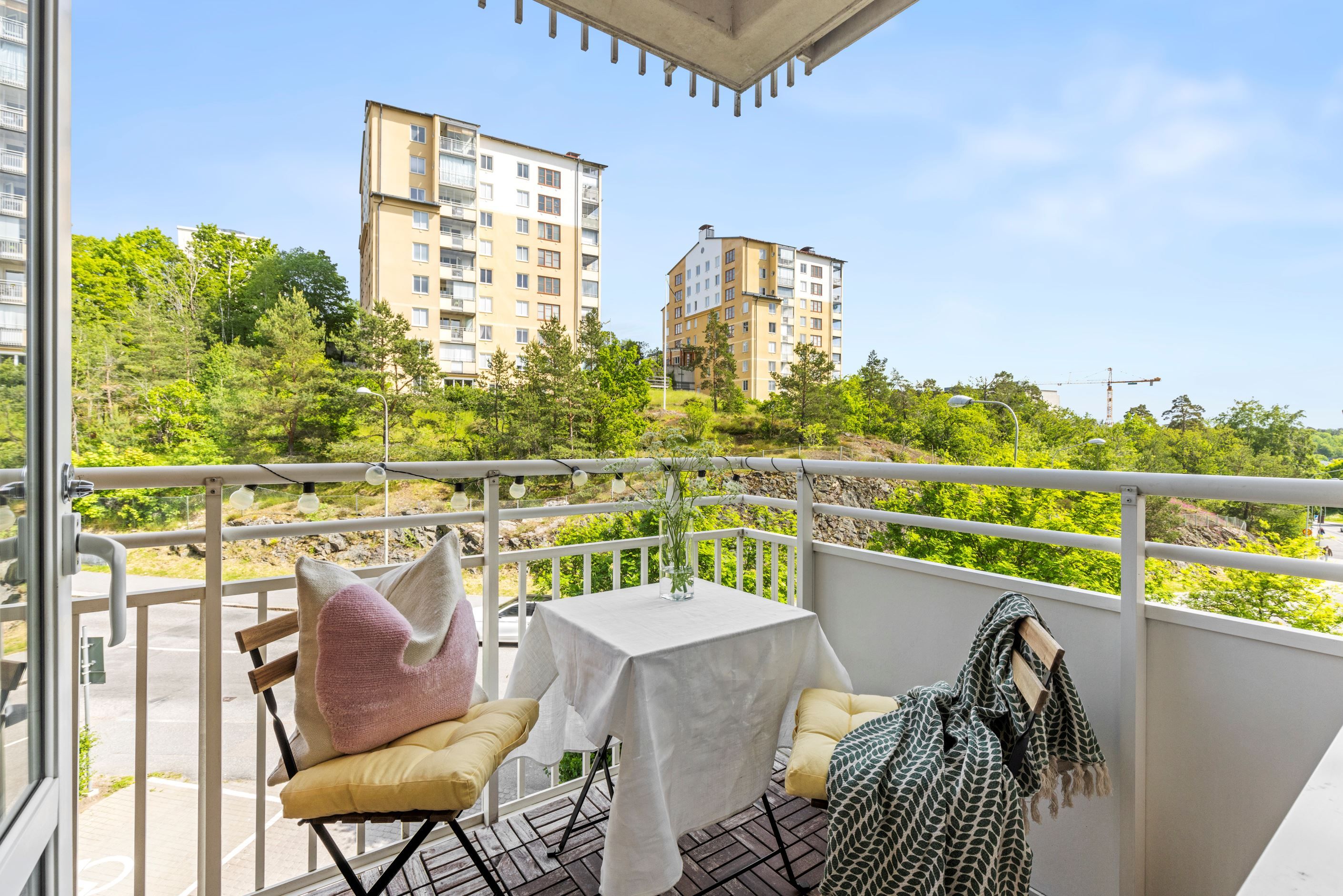 Attraktiv adress med promenadavstånd till grönområden, naturreservat, Mälaren (Sätra badet), skolor och förskolor. Från bostaden är det en kort promenad (ca 2-3 minuter) ner till Skärholmen centrum där det förutom tunnelbana och bussar som tar dig in till city på drygt 20 minuter, även finns ca 200 butiker i form av shopping, livsmedelbutiker, restauranger och caféer. Andra sidan motorvägen finner du det stora nöjescentret Heron City med biograf, caféer, bowling mm och även den välkända handelsplatsen vid kungens kurva där du finner exempelvis IKEA, City Gross, Jysk, m.m.