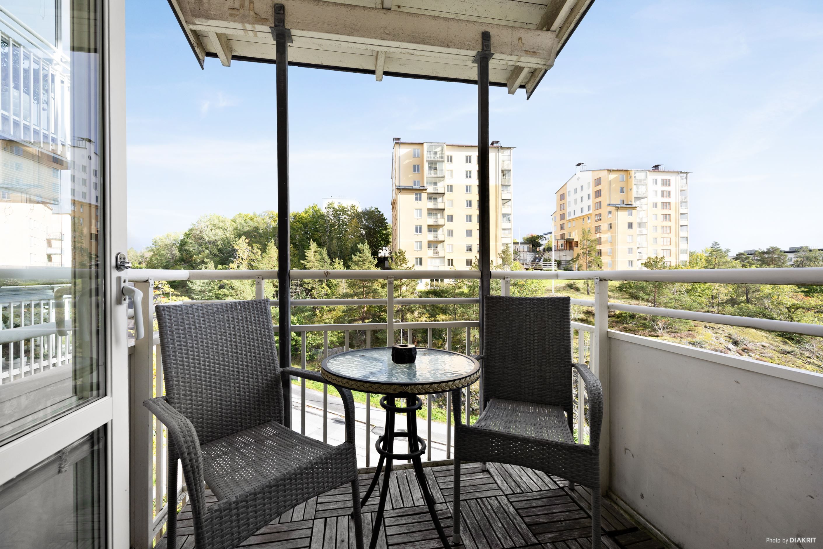 Attraktiv adress med promenadavstånd till grönområden, naturreservat, Mälaren (Sätrabadet), skolor och förskolor. Från bostaden är det en kort promenad (ca 2-3 minuter) ner till Skärholmen centrum där det förutom tunnelbana och bussar som tar dig in till city på drygt 20 minuter, även finns ca 200 butiker för shopping, även livsmedelbutiker, restauranger och caféer. På andra sidan motorvägen finner du det stora nöjescentret Heron City med biograf, caféer, bowling mm och även den välkända handelsplatsen vid kungens kurva där du finner exempelvis IKEA, City Gross, Jysk, m.m.
