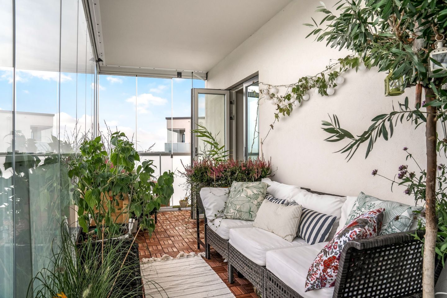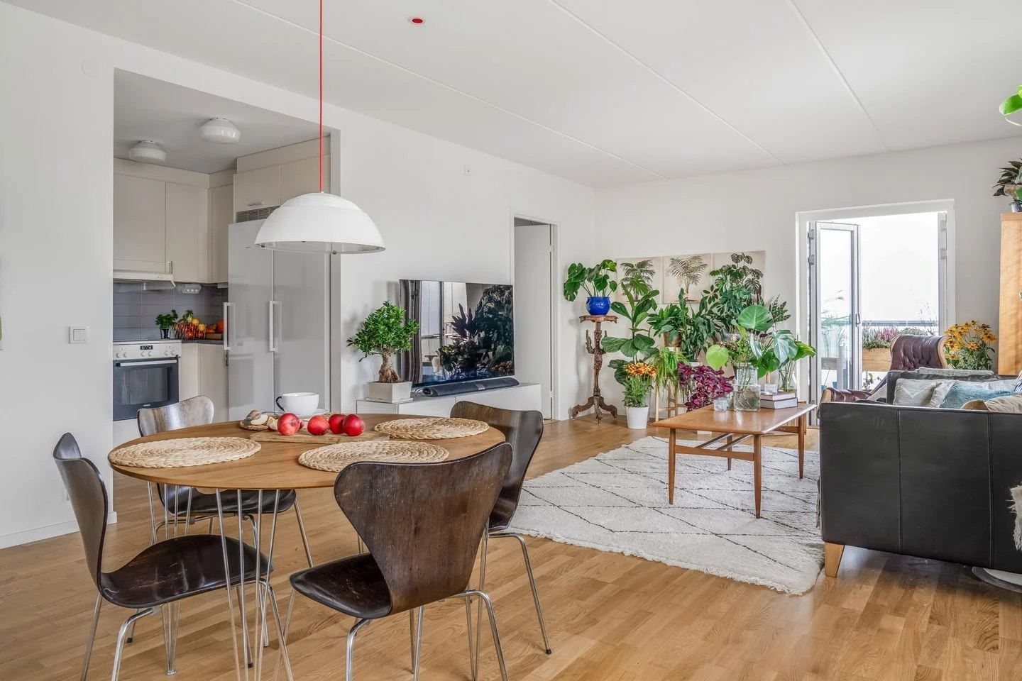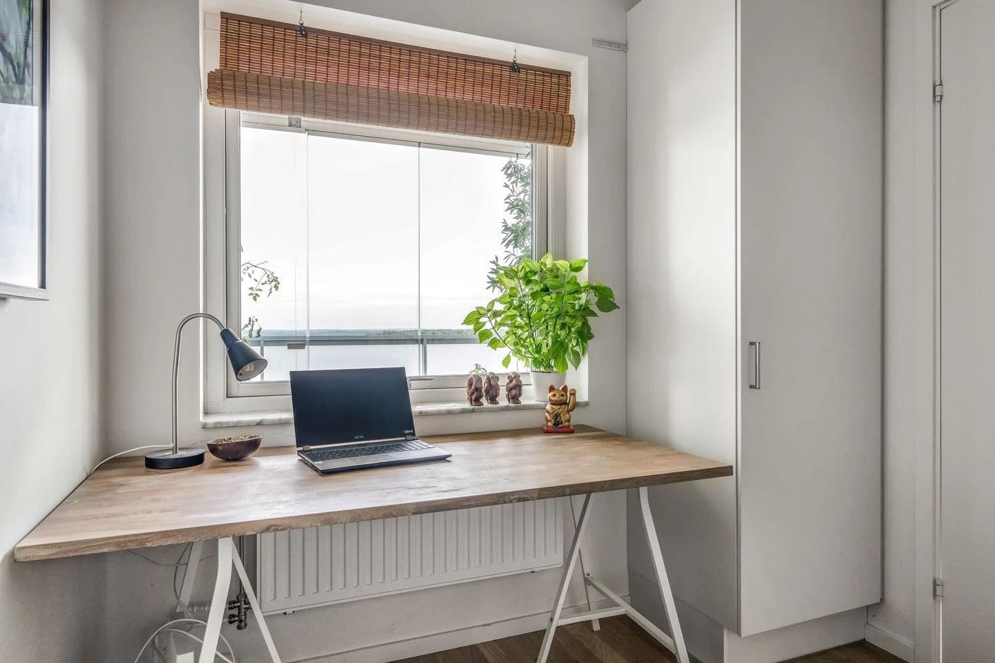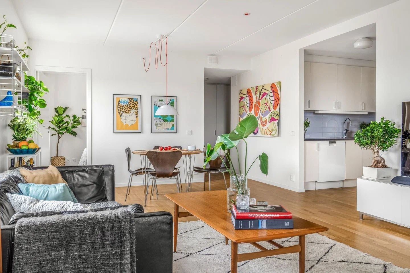 Lägenheten om 70 kvm bjuder på ett öppet och socialt planerat vardagsrum och kök, med generösa ytor för både soffgrupp och matplats. Härifrån nås den stora, inglasade balkongen om hela 15 kvm – en förlängning av vardagsrummet med vidsträckt vy över naturreservat med färgsprakande solnedgångar över Mälaren. En vy som måste upplevas på plats!