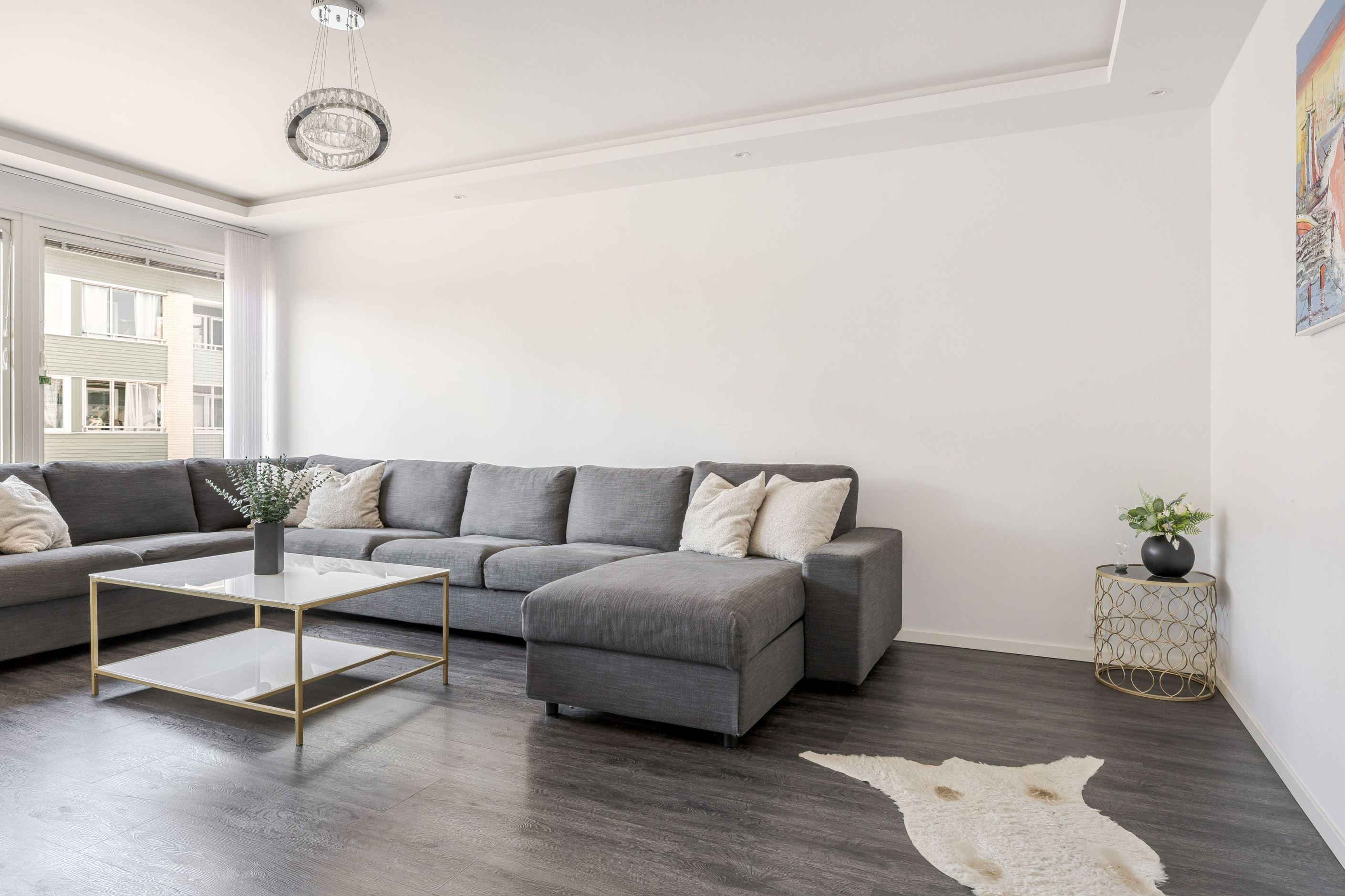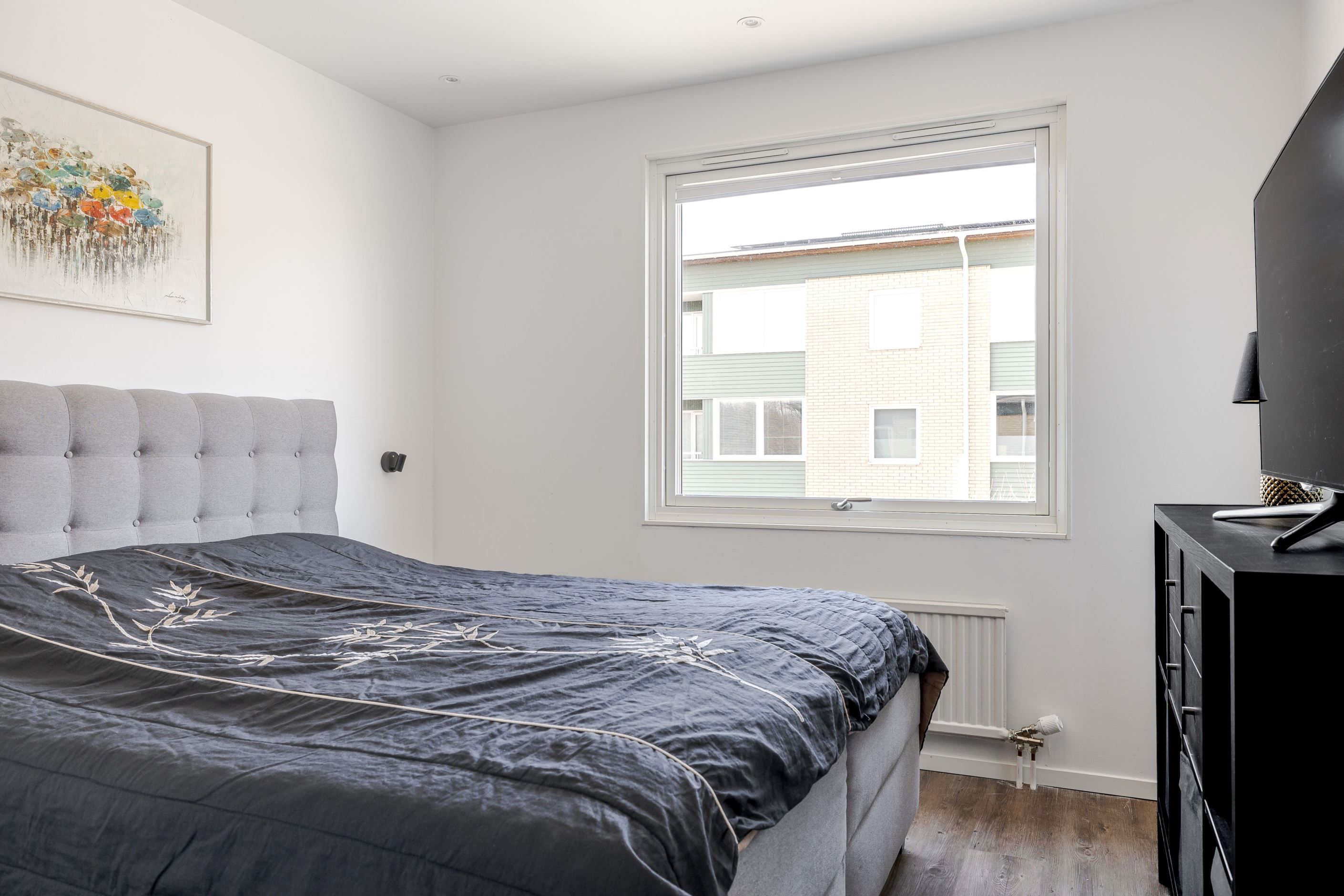 Vardagsrummet är luftigt och lättmöblerat med plats för både soffgrupp, tv-möbel och ett större matbord om så önskas. Lägenheten rymmer tre bra sovrum, varav ett har direkt utgång till balkongen. Till bostaden hör dessutom två förråd som ger extra förvaringsmöjligheter.