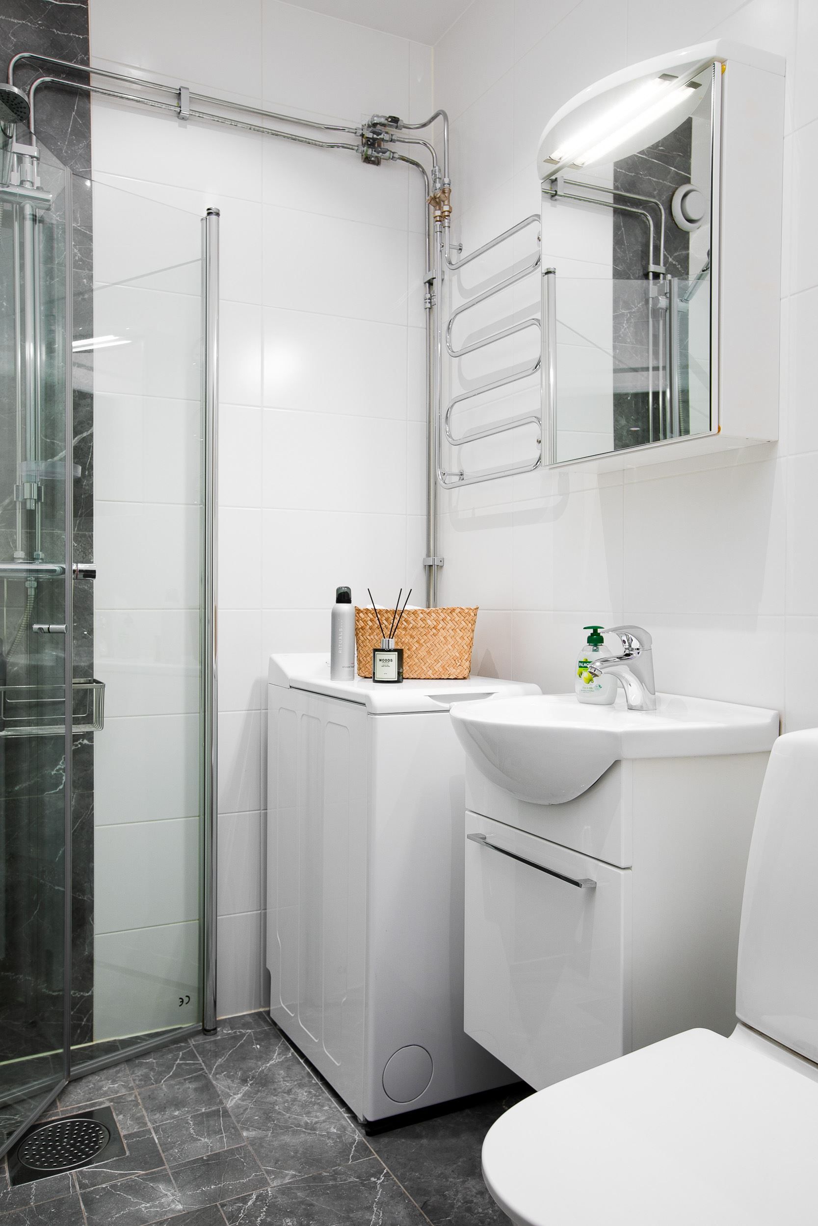 Självklart är det ett stort plus för totalekonomin att värme, vatten, Kabel-tv, bredband, bostadsrättstillägg och grundavgiften för el ingår i den låga månadsavgiften om 3595 kronor. Praktiskt att även ha sin egen tvättmaskin i lägenheten.