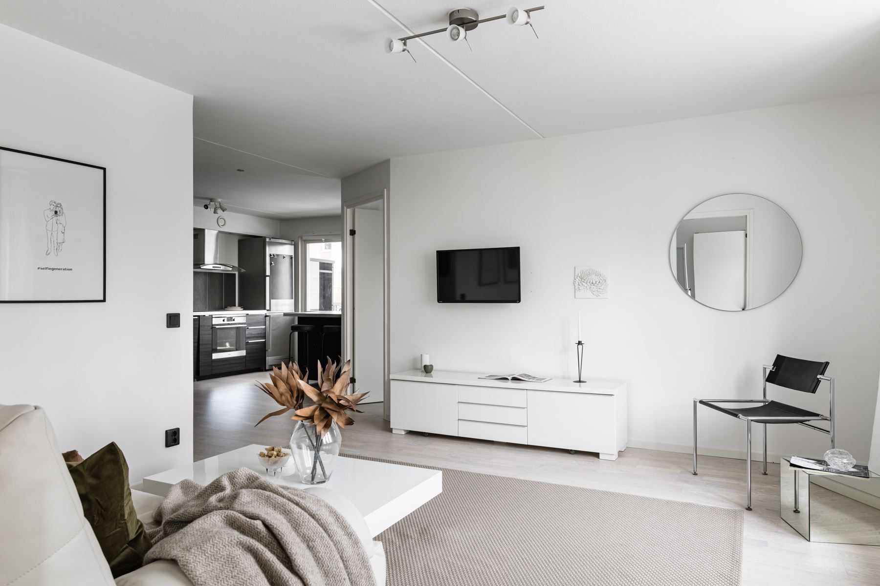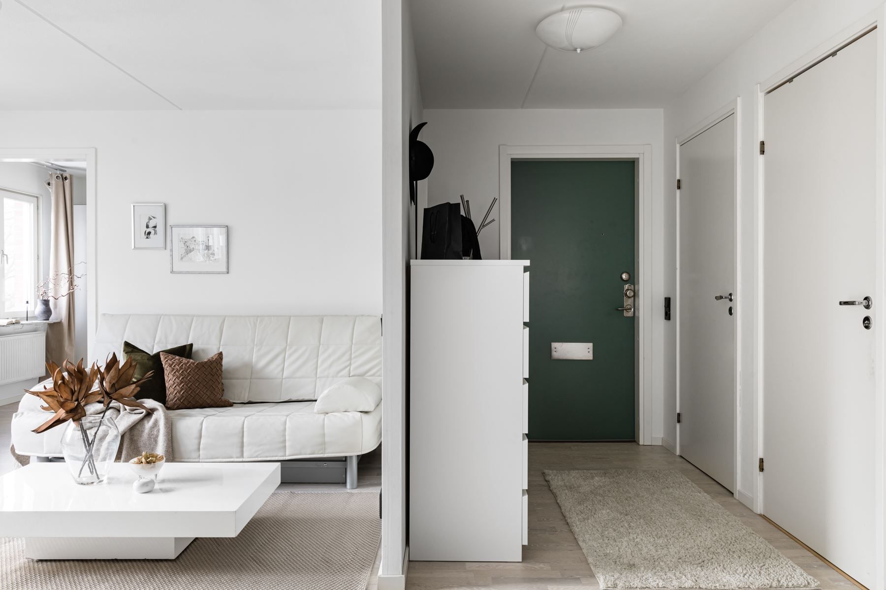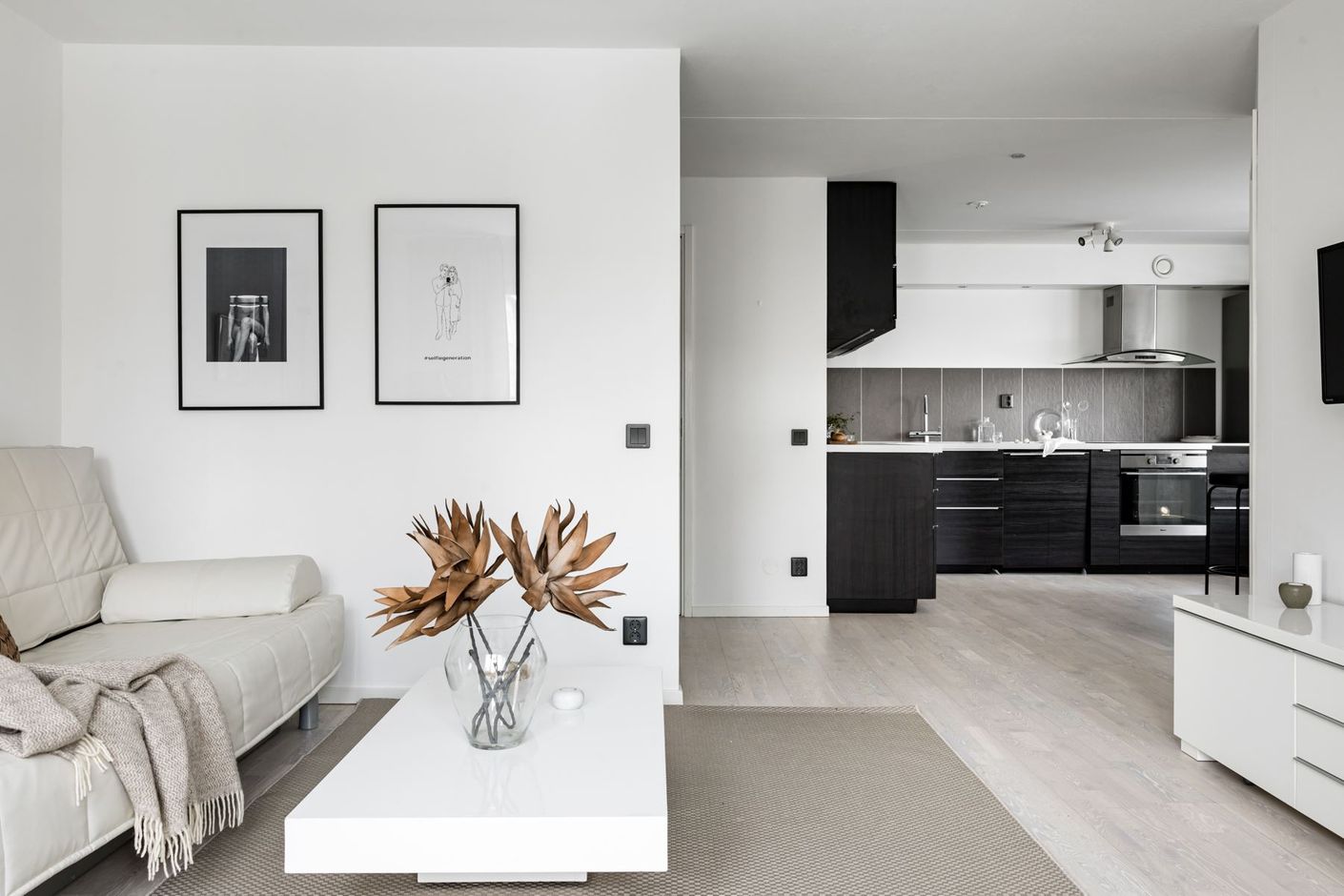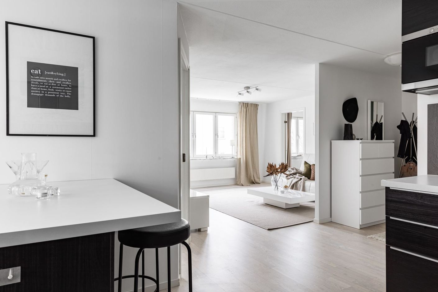 Planlösningen är genomtänkt och social, med en öppen och naturlig övergång mellan kök och vardagsrum – perfekt för såväl vardagsliv som umgänge.