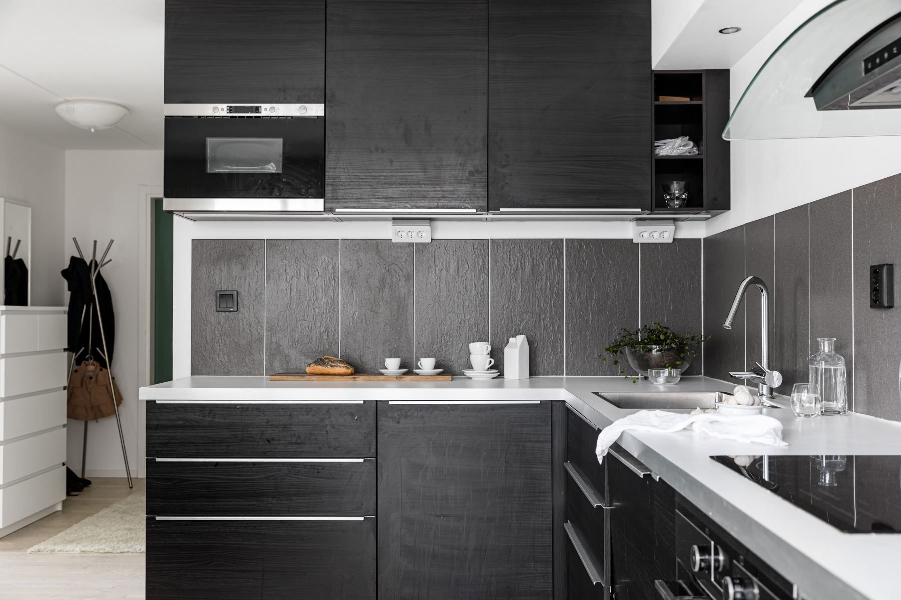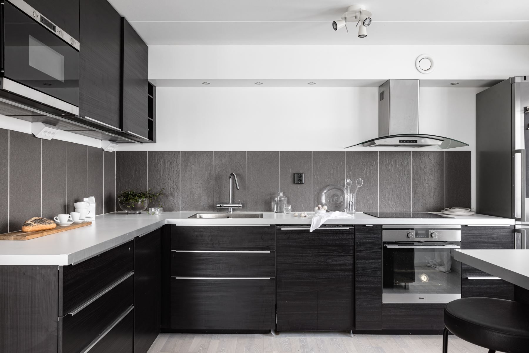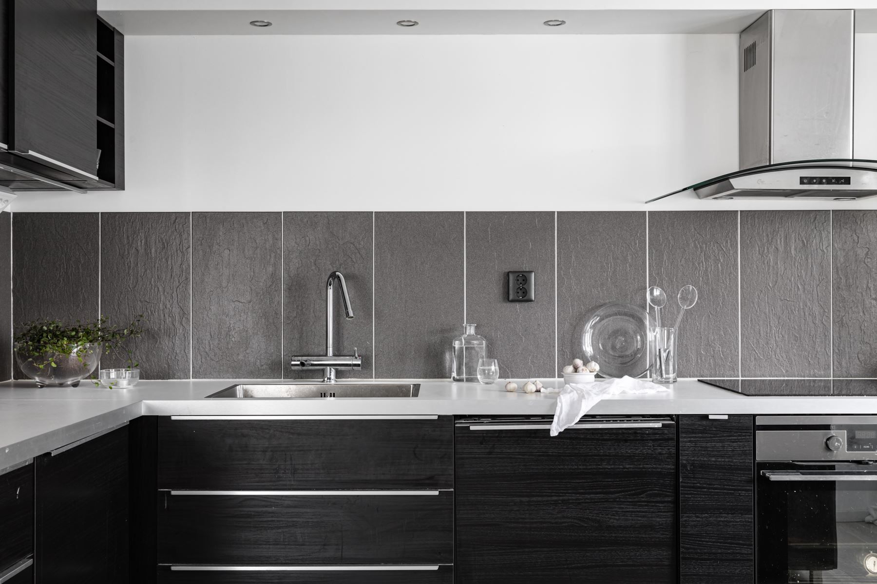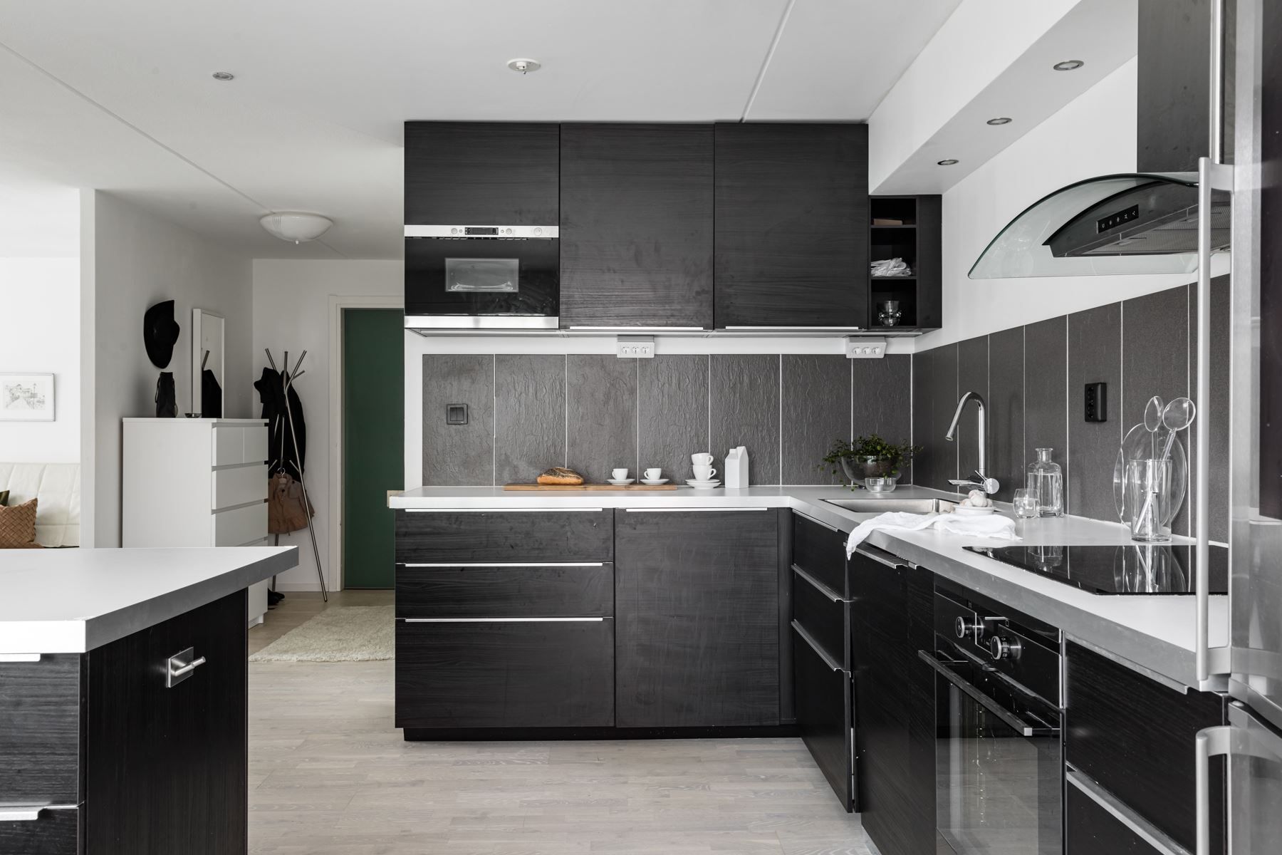 Köket renoverades för några år sedan och håller fortsatt en modern och stilren standard. Här finns gott om förvaring och bra arbetsytor samt full maskinell utrustning i form av kyl, frys, ugn, induktionshäll och diskmaskin.