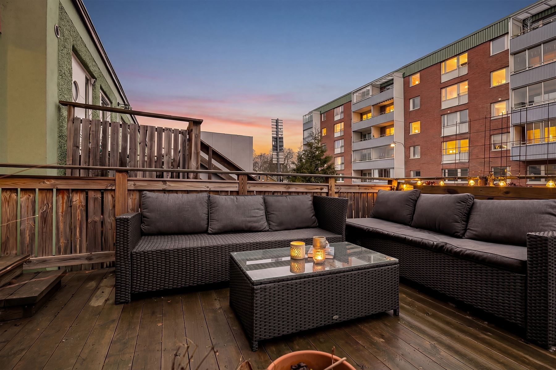 Här får du en bostad med stor uteplats som bjuder in till sena sommarkvällar med grillen igång, ett glas vin och i goda vänners lag.. Den naturliga övergången mellan inne och ute skapar en härlig rymd och gör att bostaden upplevs större.