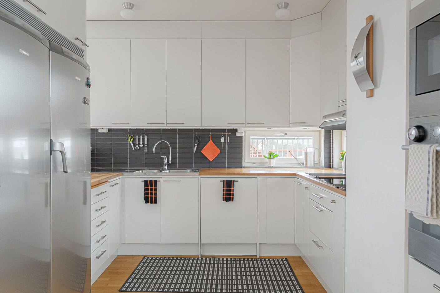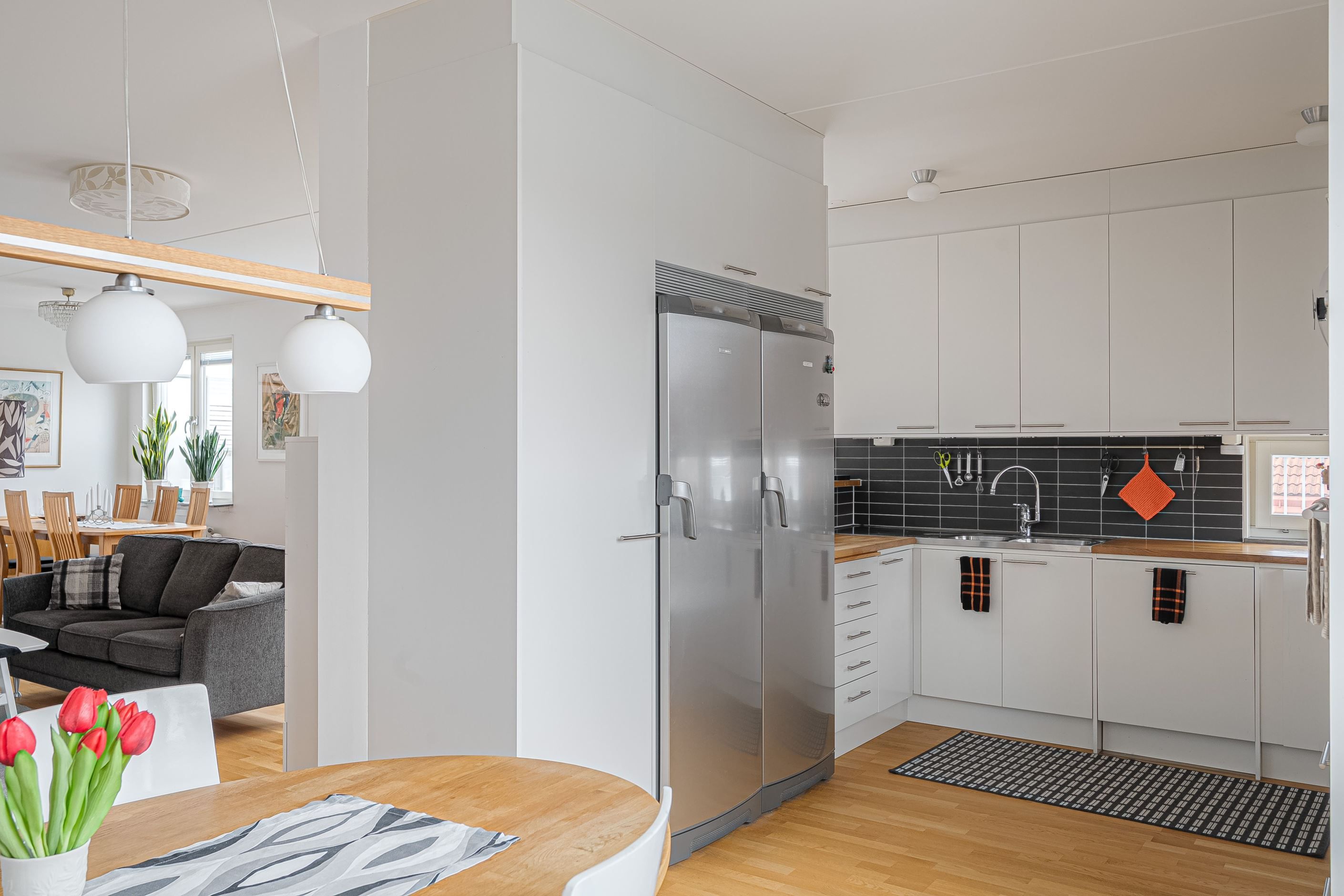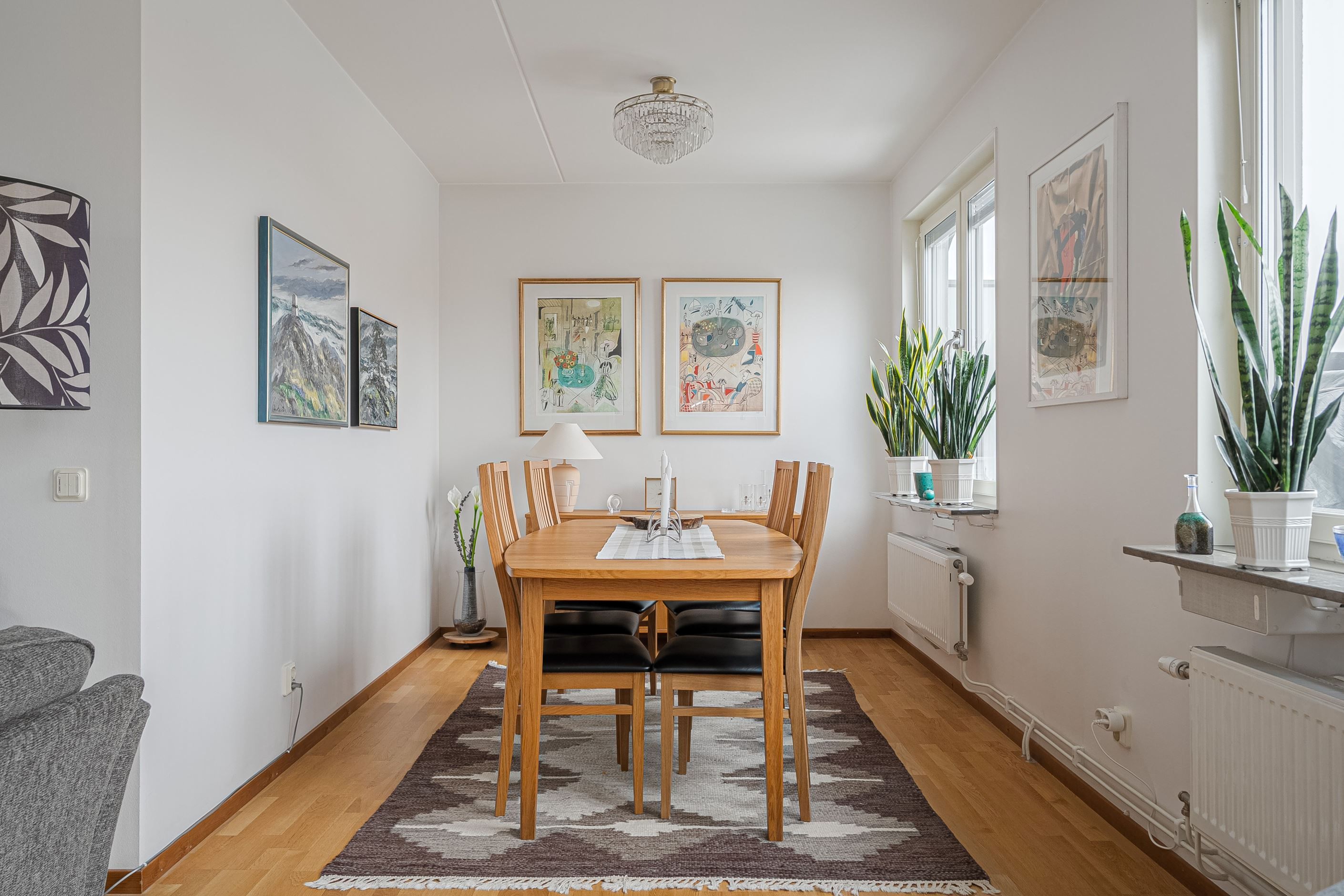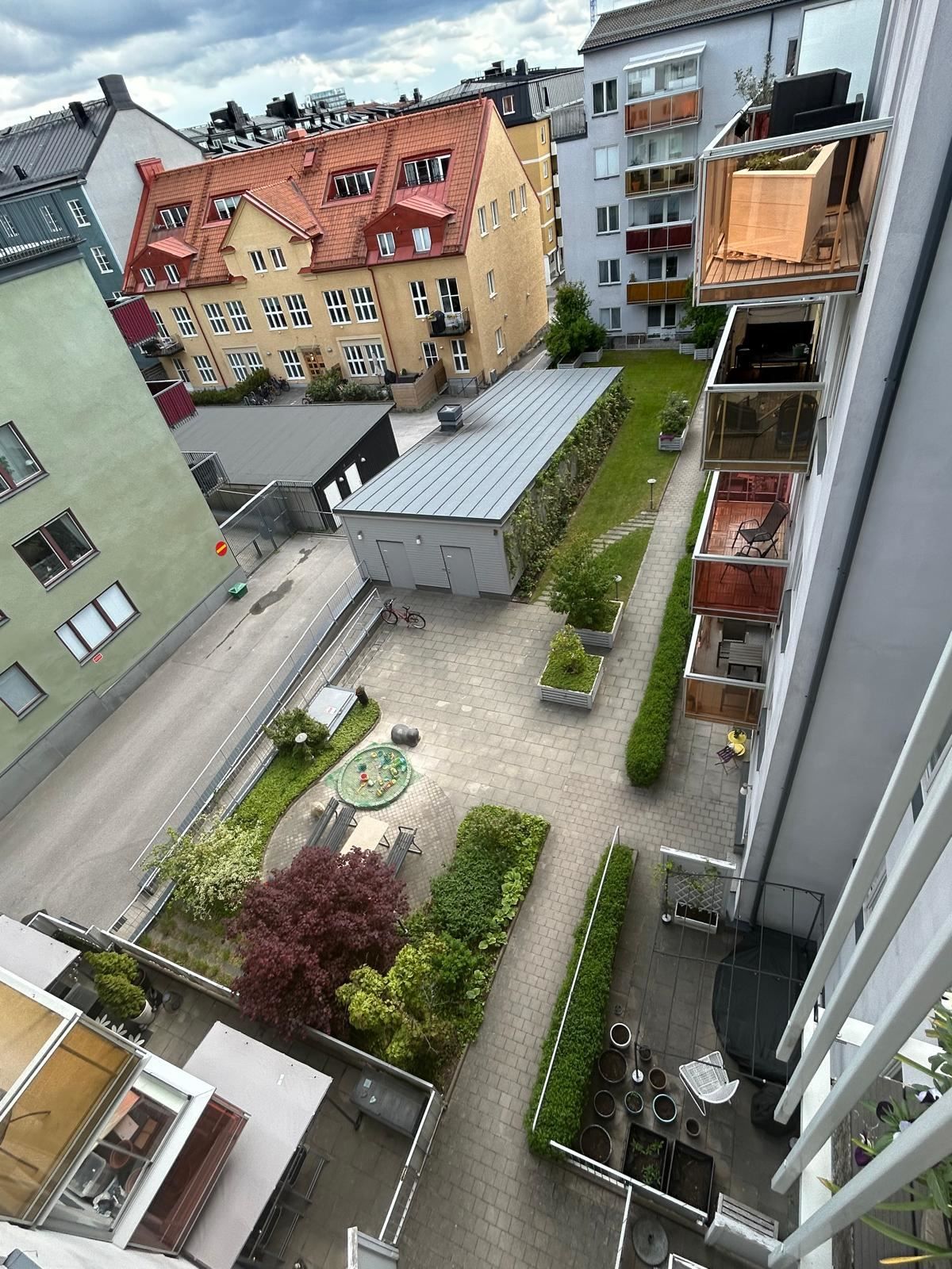 98 kvm boarea där du möts av ett fantastiskt ljusflöde genom hela bostaden som kan stoltsera med hela fyra väderstreck. För dig som är en soldyrkare eller älskar att grilla eller odla, så har du en fantastisk takterrass om 46 kvm. Som om det är inte är nog finns även en balkong om 3 kvm mot rogivande innergård och gör att du kan följa solen från upp- till nedgång. Social och öppen planlösning samt tre sovrum som kan bli fyra vid behov. Här kan du njuta av sociala tillställningar i glada vänners lag i en exklusiv och privat känsla högst upp i huset. Badrummet är fräscht och väldigt stort, utrustat med dusch, wc, tvättmaskin samt torktumlare. Dessutom finns en extra gäst-wc. Tre sovrum i olika storlekar, där ena är rejält om ca 11 kvm med både en klädkammare och balkong i anslutning. Du kan vid behov göra ett fjärde sovrum. Genomgående fina ytskikt och väl bevarad.