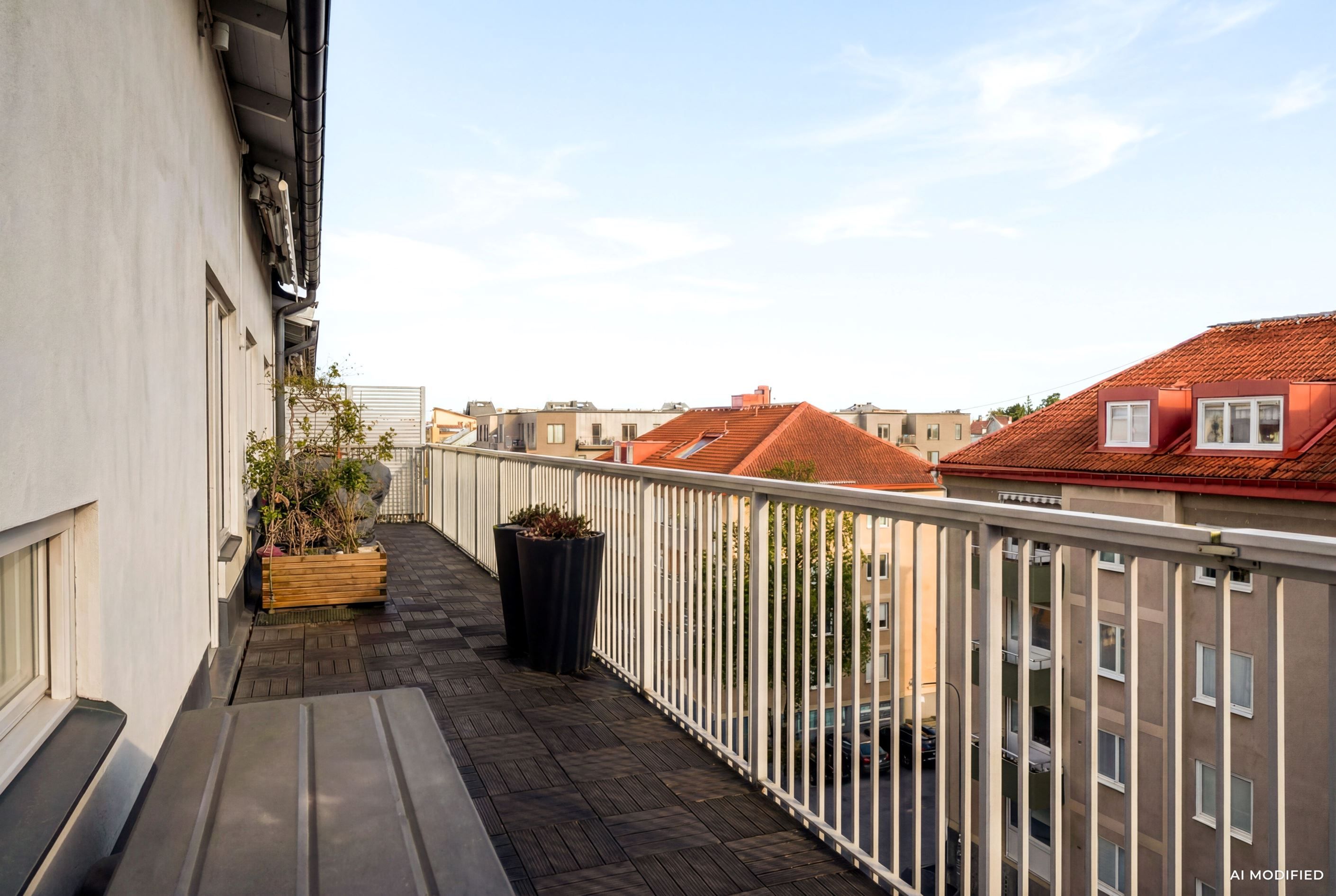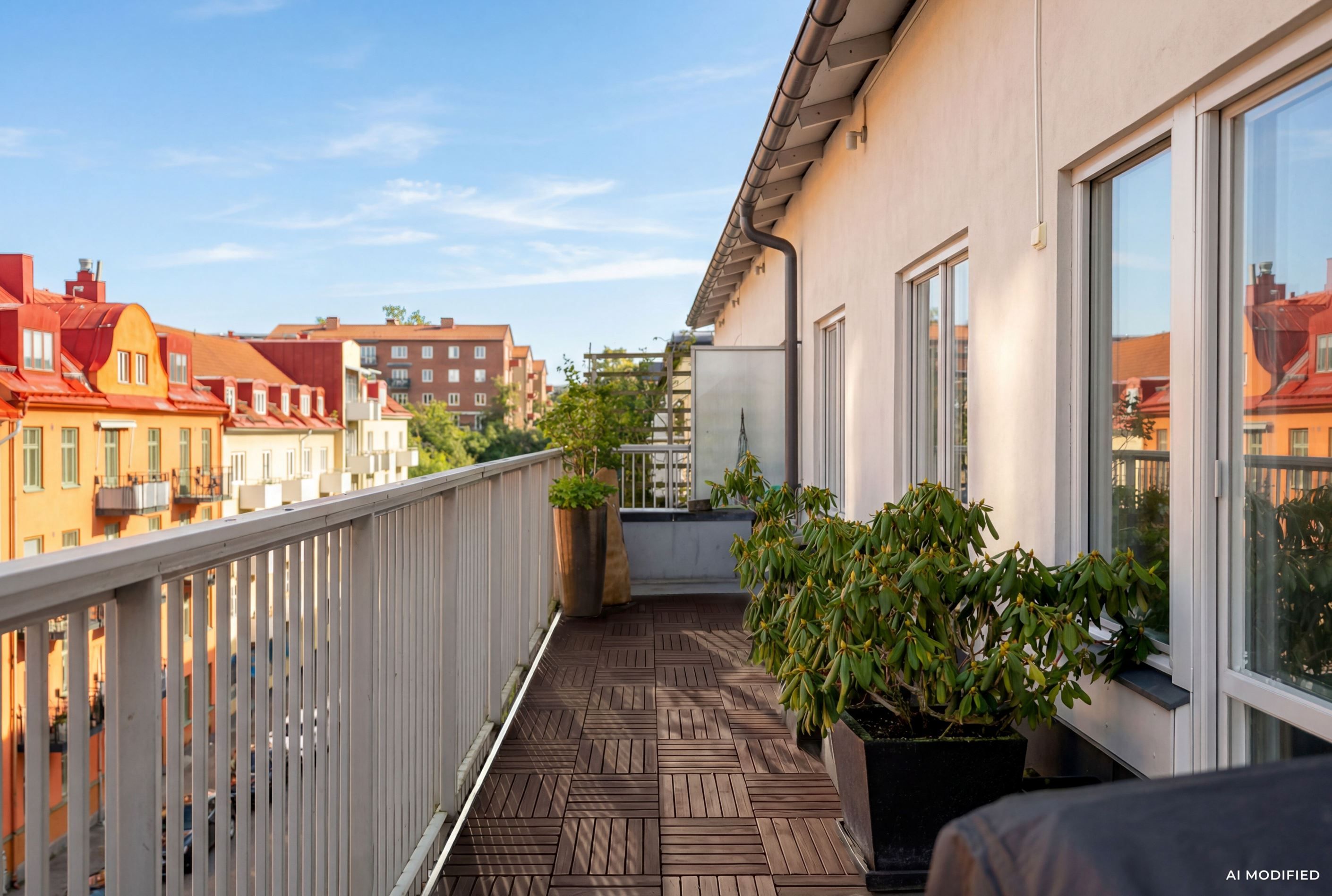 - Takterrass om 46 kvm! Kompositplattor på terrassgolvet och motordriven markis.