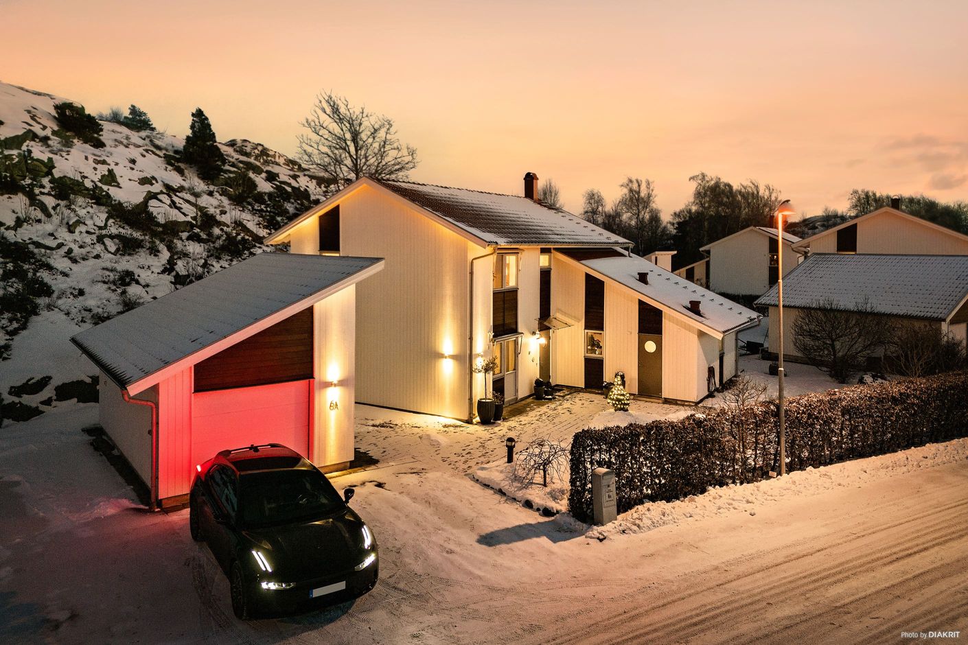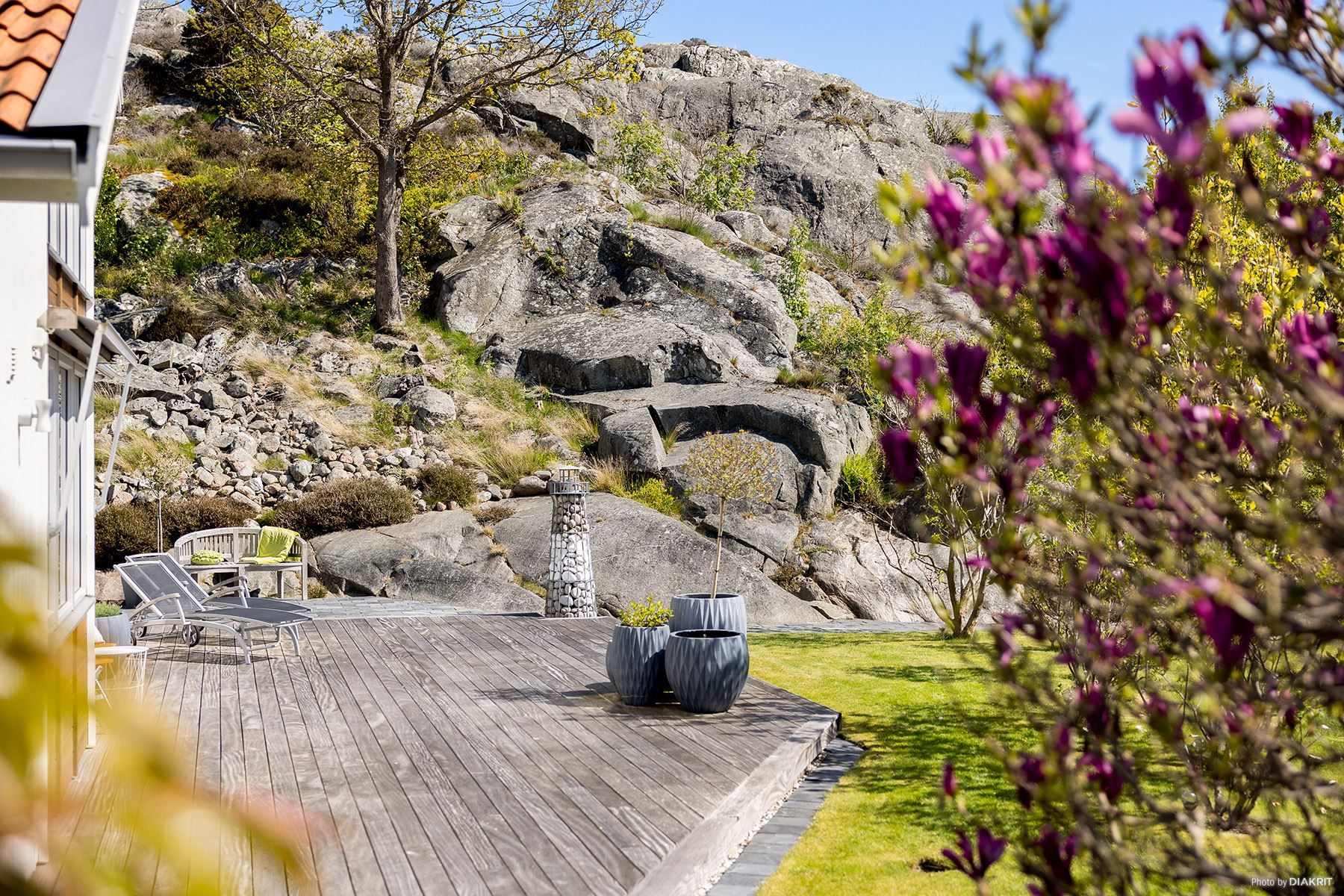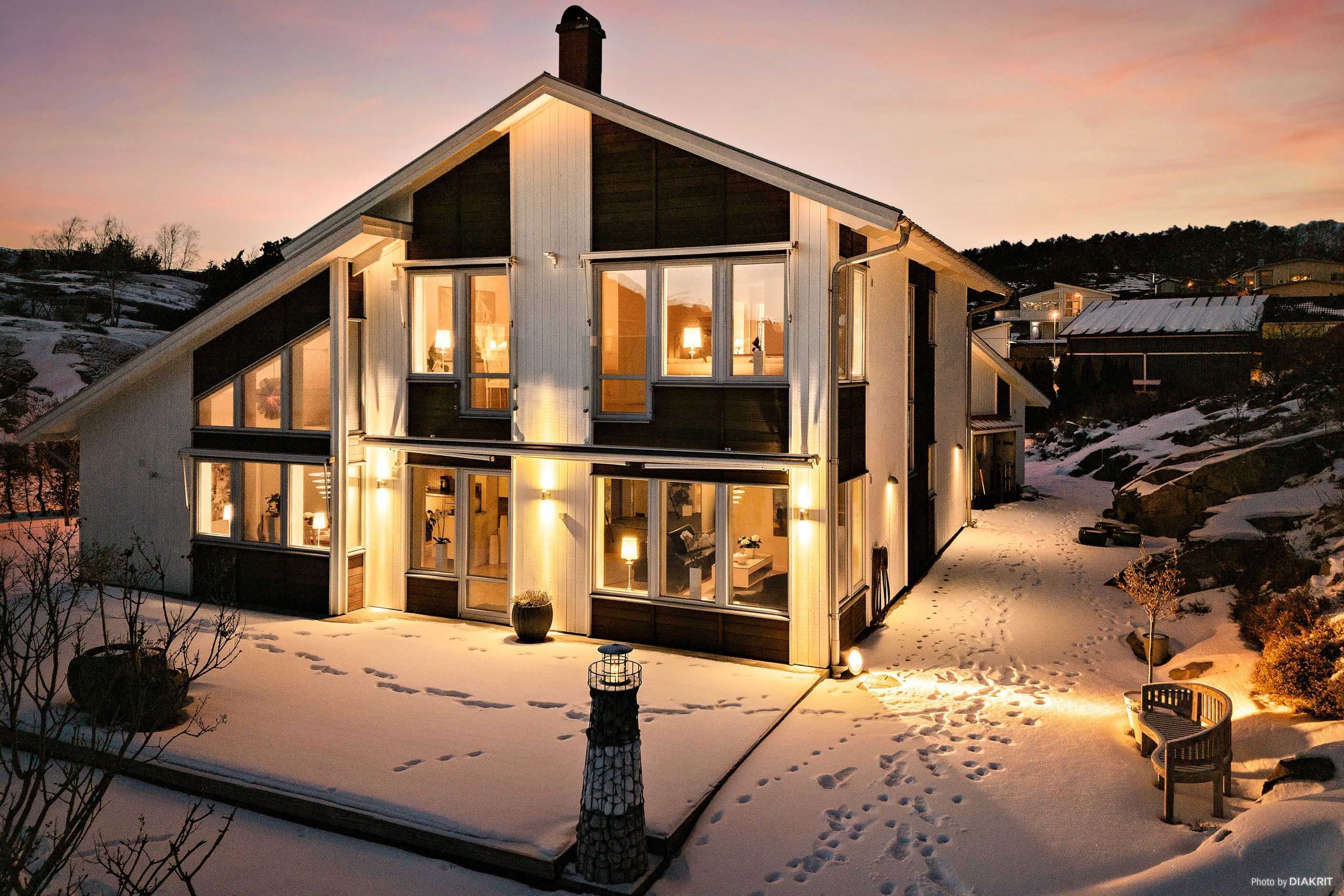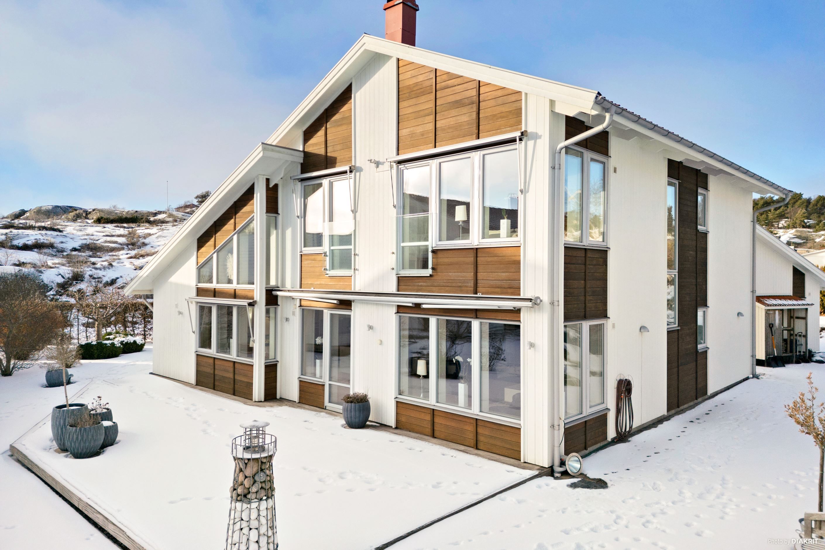 I havsnära Andalen, endast ca 200 meter från salta bad och klippor, ligger detta trivsamma och välplanerade hus från 2011 – ett modernt familjeboende där ljus, rymd och avskildhet möts i fin harmoni.