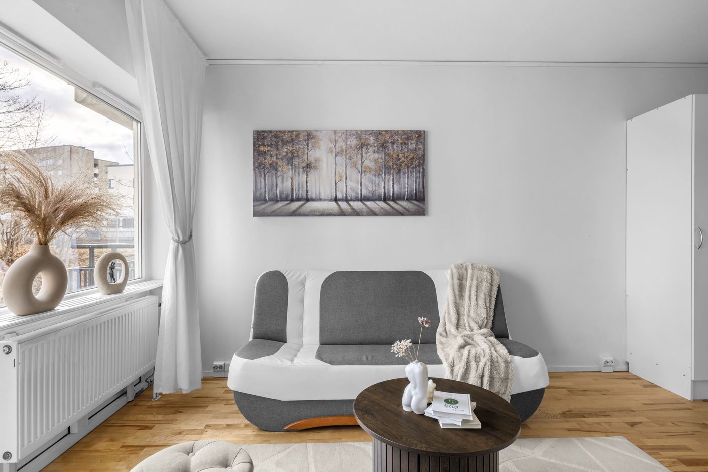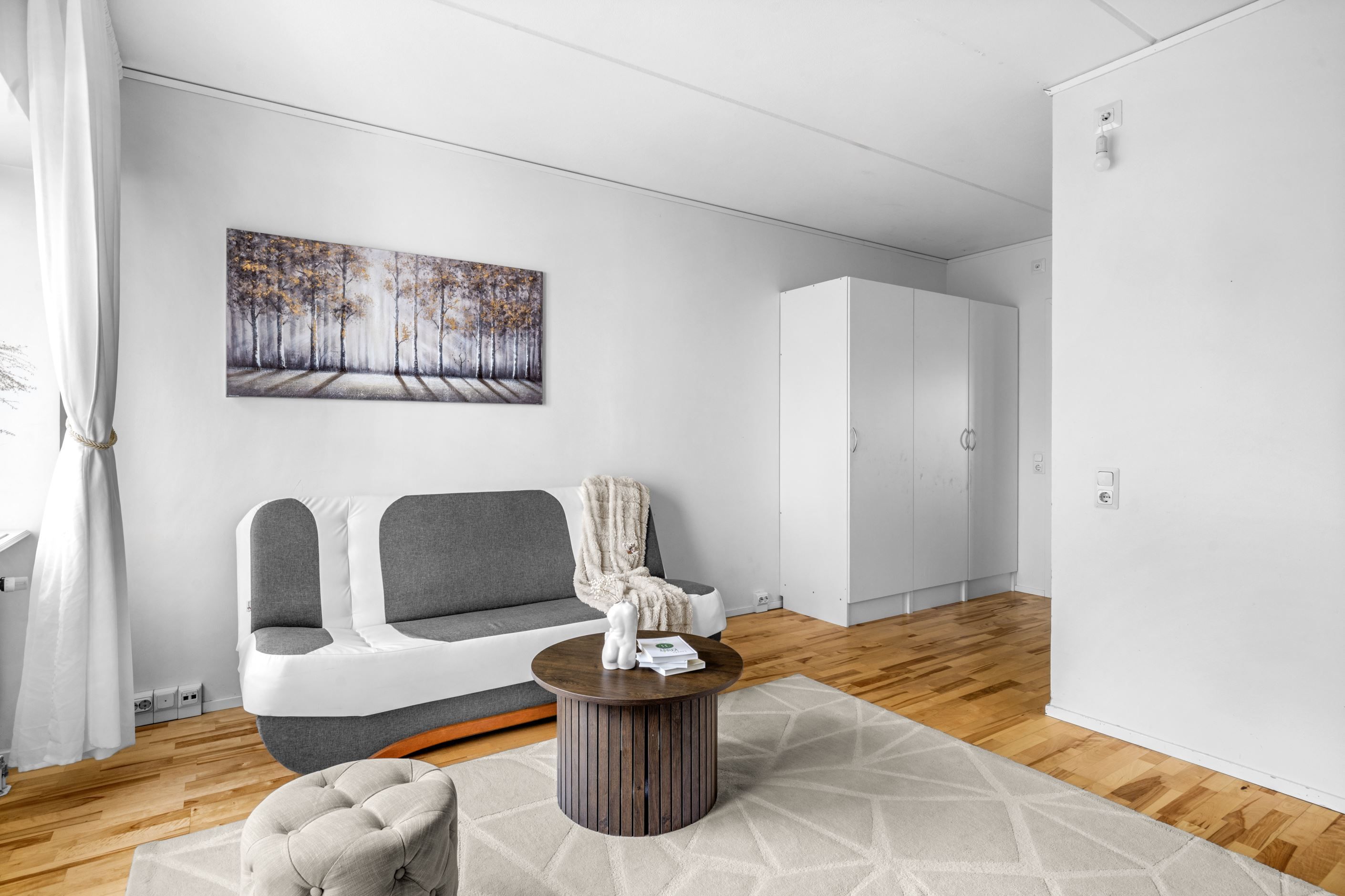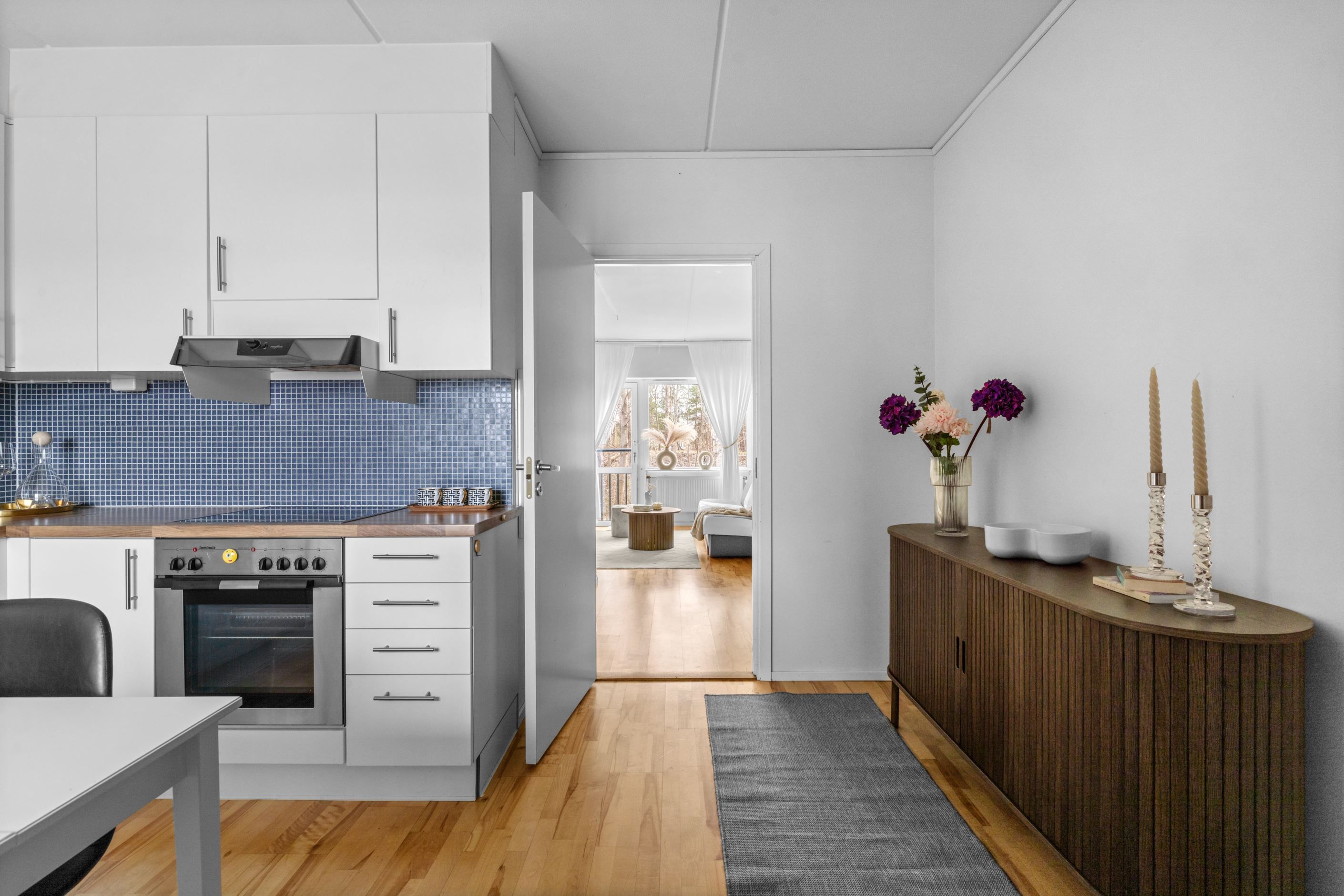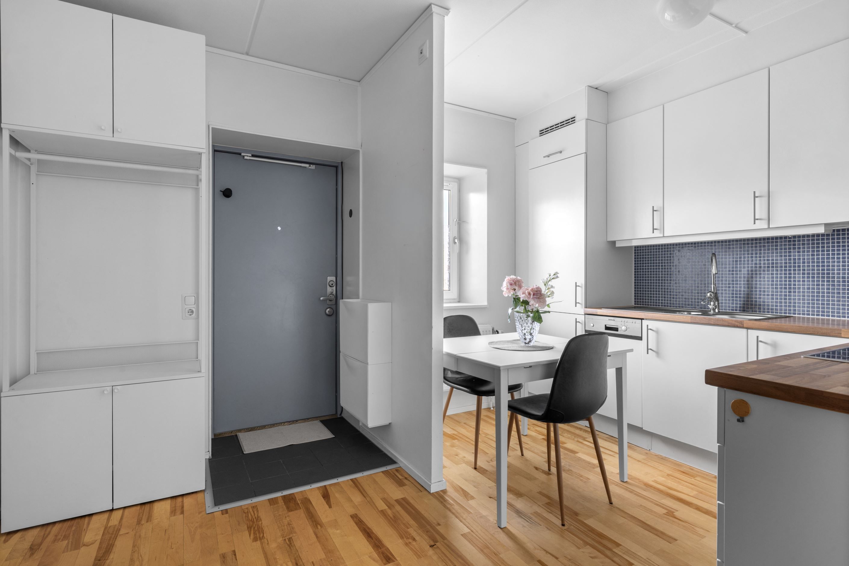 Bostaden erbjuder 36 väl genomtänkta kvm fördelade på en välkomnande hall med goda avhängningsmöjligheter och anslutning till köket och det helkaklade badrummet. Vidare in i bostaden möts ni av de sociala ytorna i form av ett rymligt och lättmöblerat vardagsrum. Tack vare den genomgående planlösningen har ni ett rikligt ljusinsläpp från de väl tilltagna fönstren i två väderstreck. Perfekta första bostad eller övernattningslägenhet!