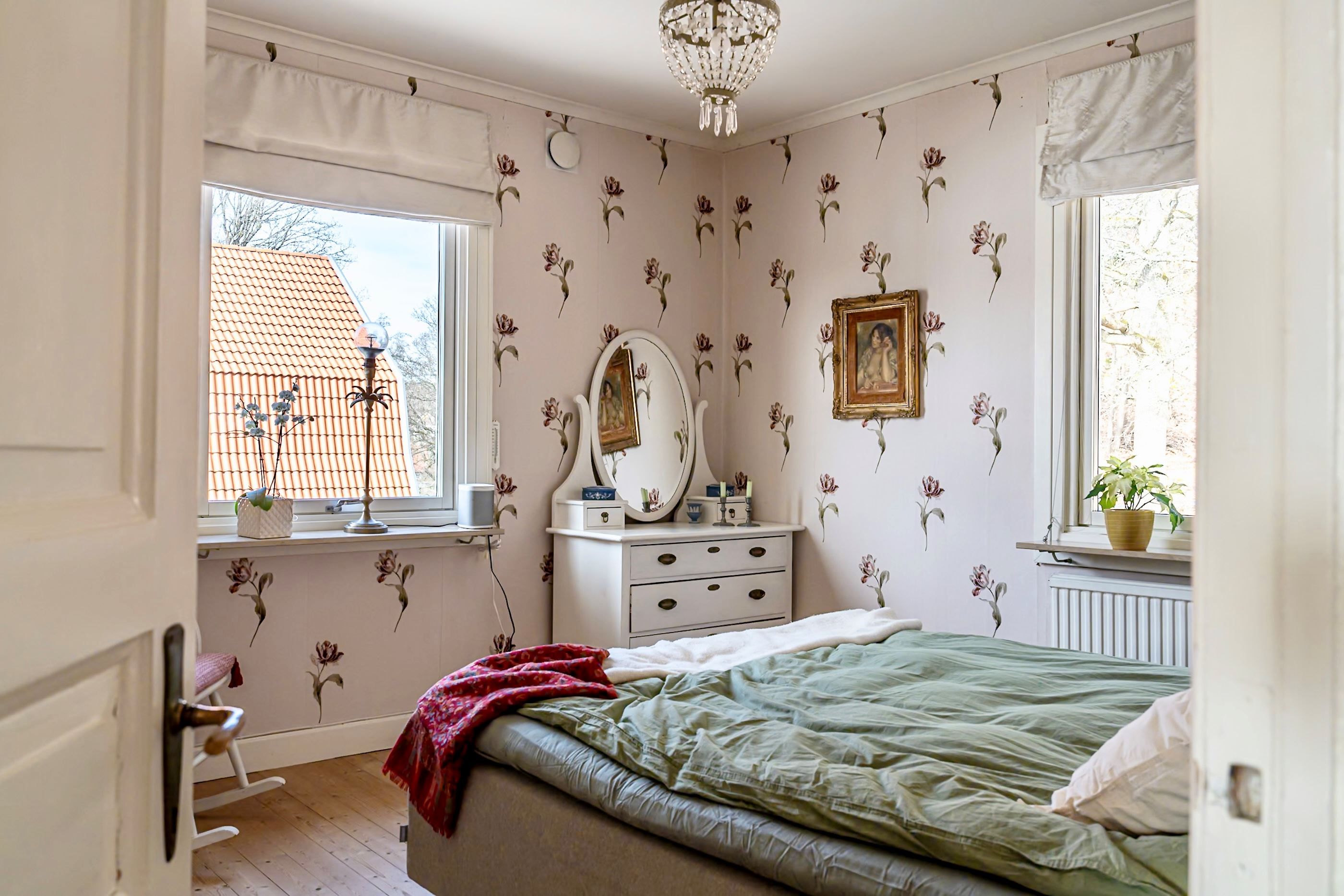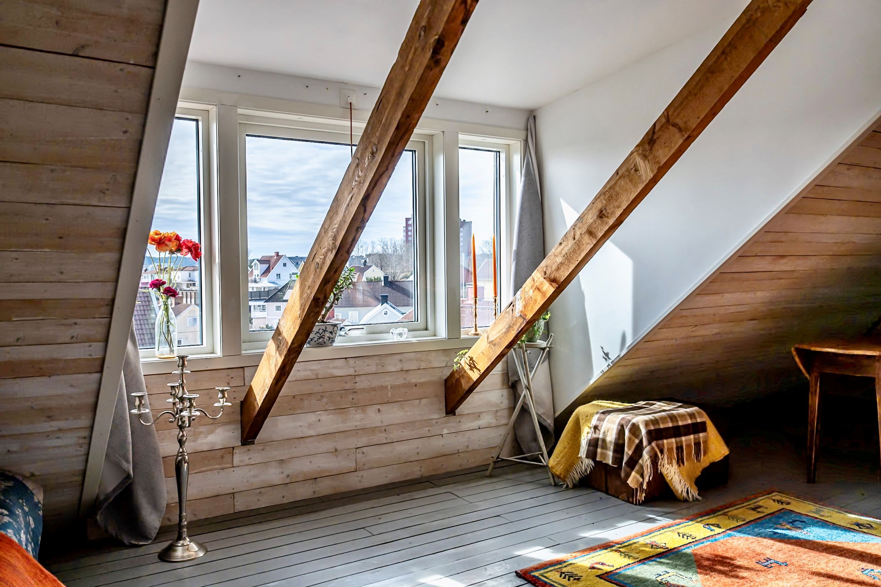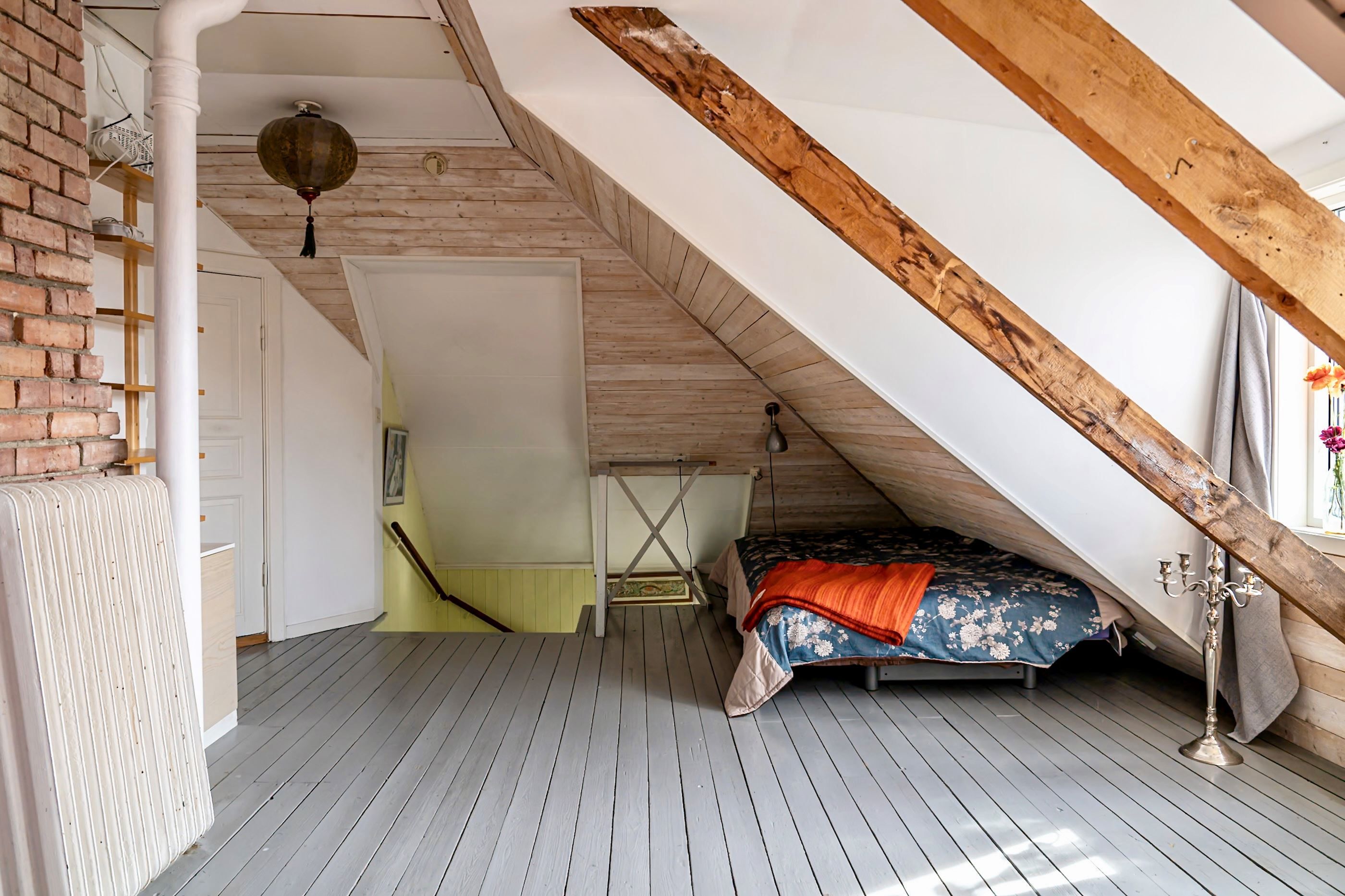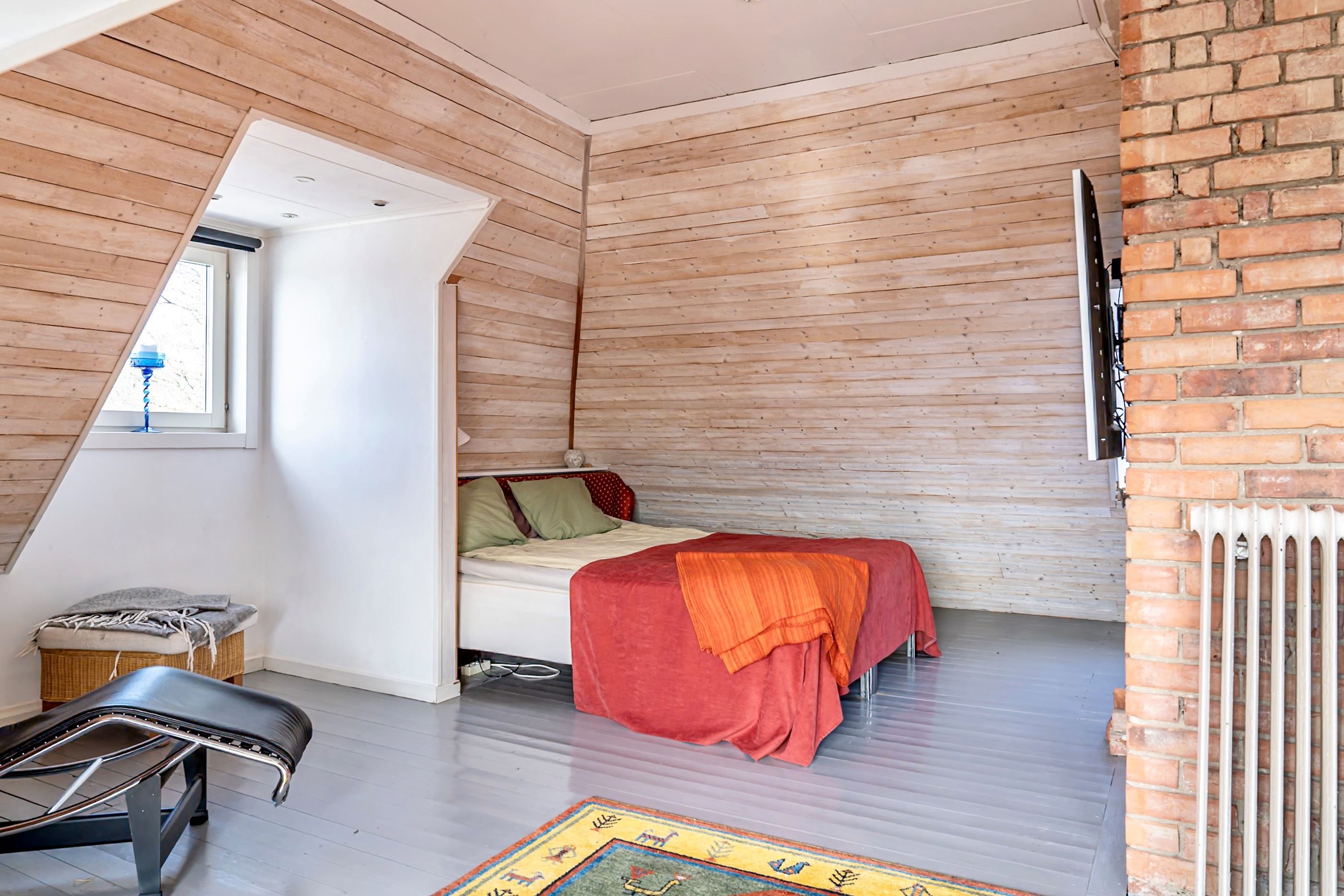 En trappa upp möts du av ytterligare en bostadsdel med tillhörande vindsplan som bidrar med extra rymd och charm. Här finns gott om utrymme för familjeliv, hemmakontor eller ytterligare uthyrningsmöjligheter.