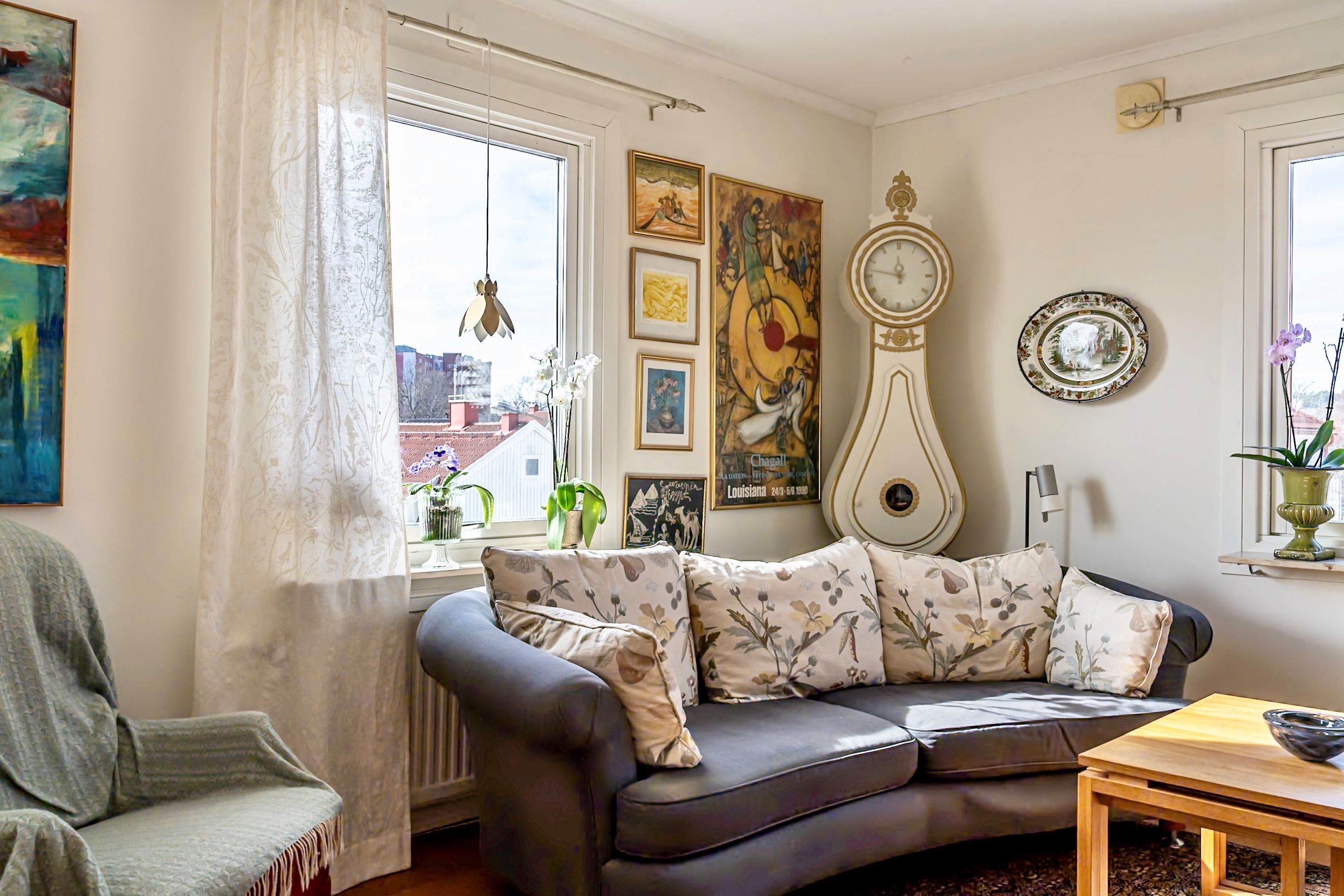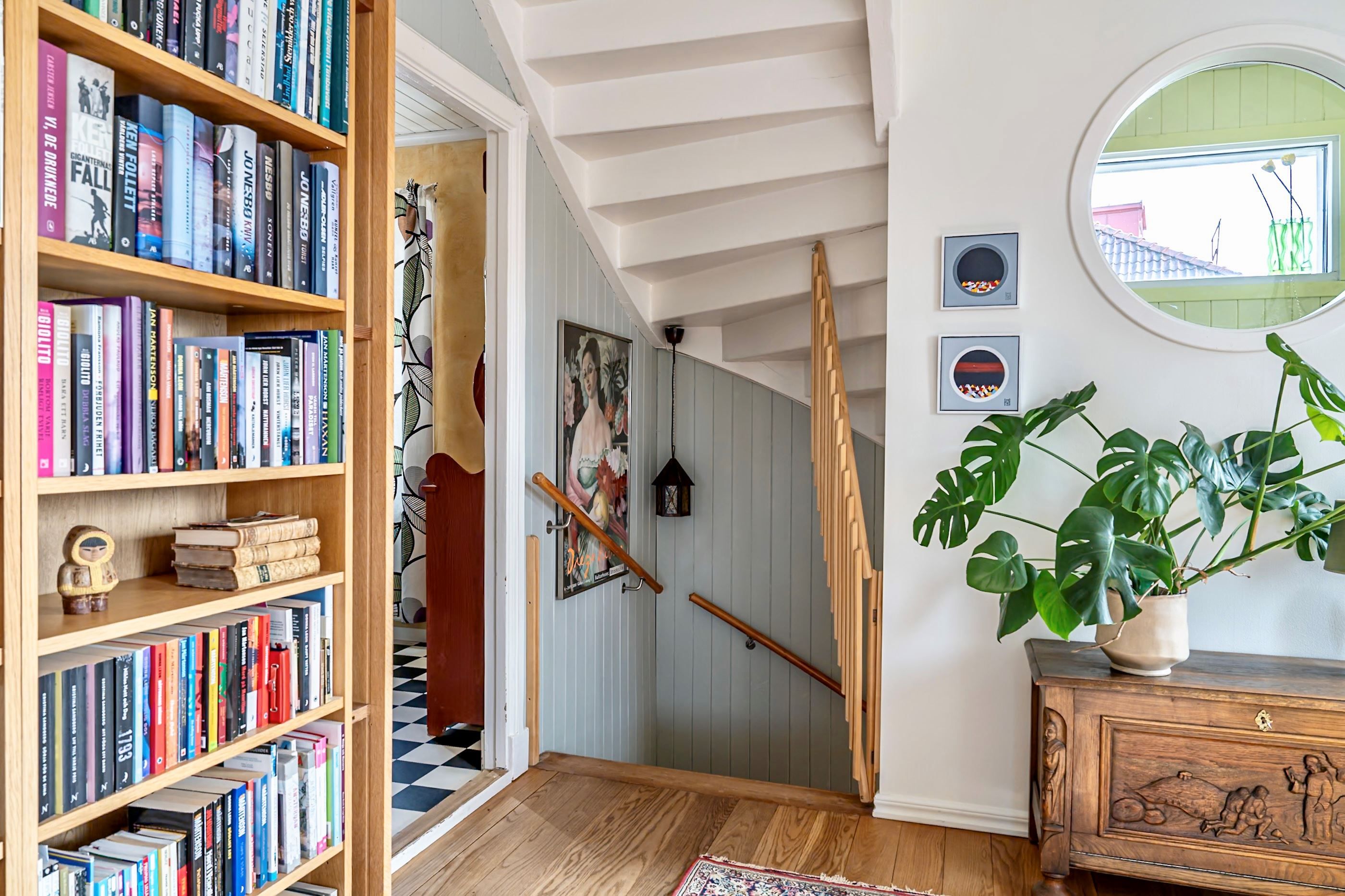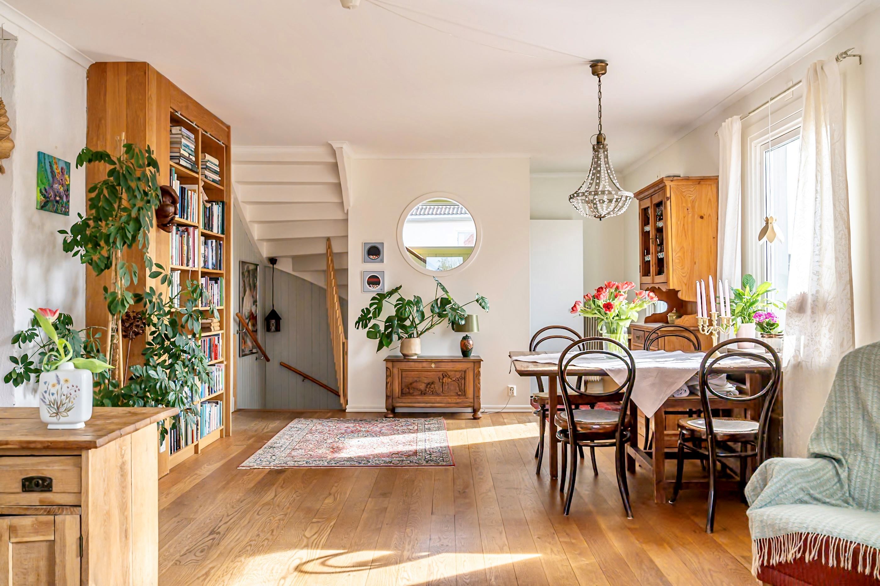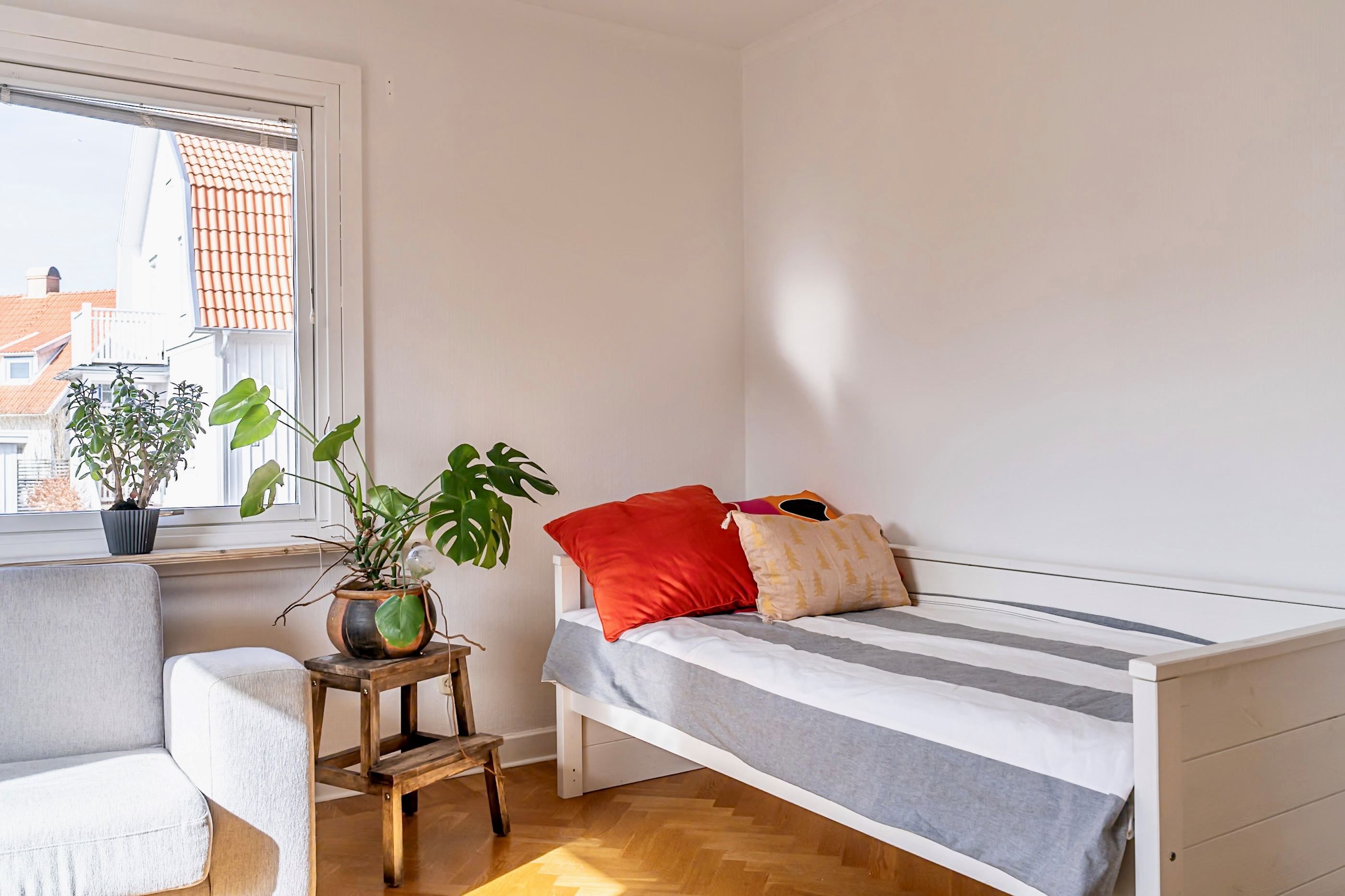 En trappa upp möts du av ytterligare en bostadsdel med tillhörande vindsplan som bidrar med extra rymd och charm. Här finns gott om utrymme för familjeliv, hemmakontor eller ytterligare uthyrningsmöjligheter.