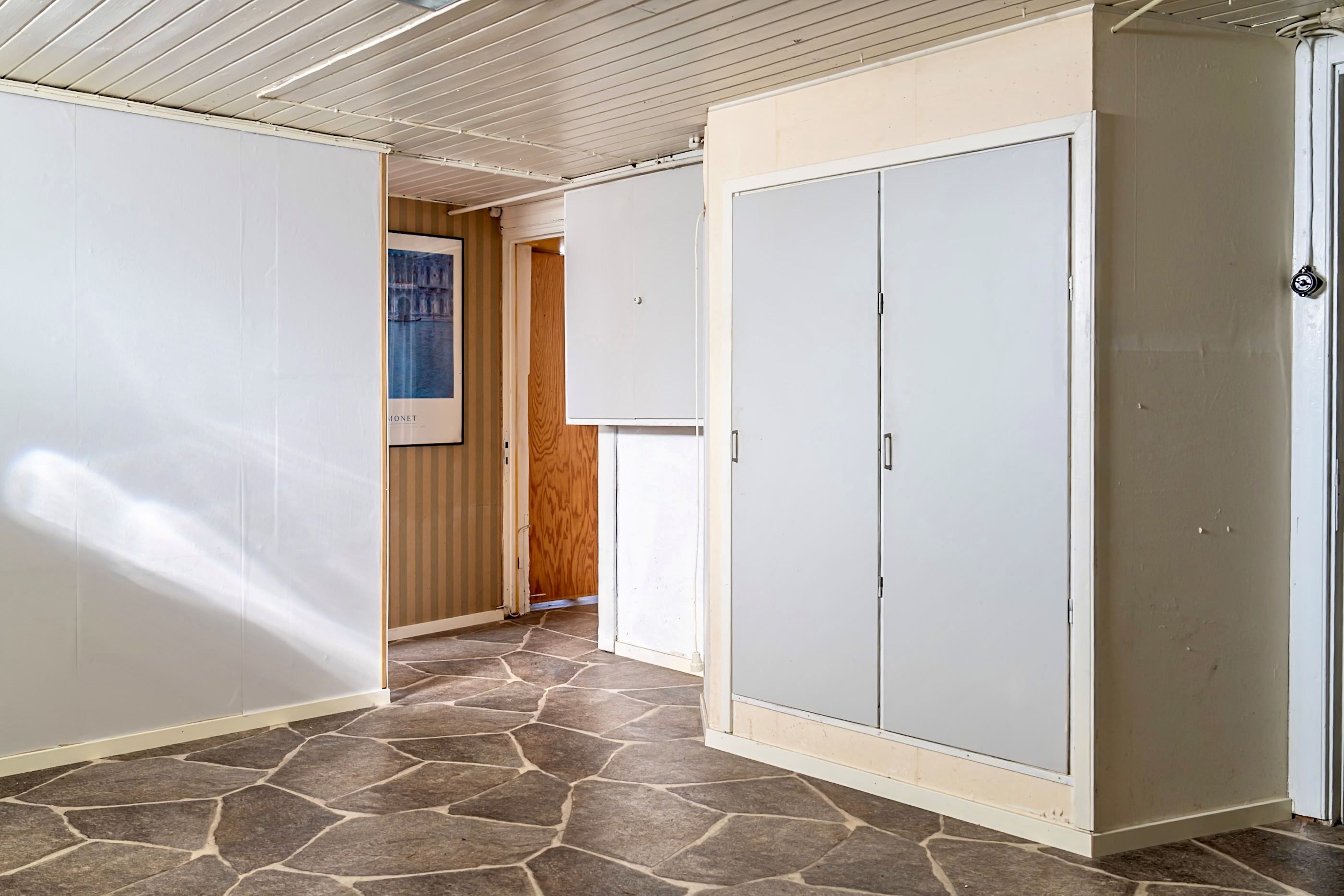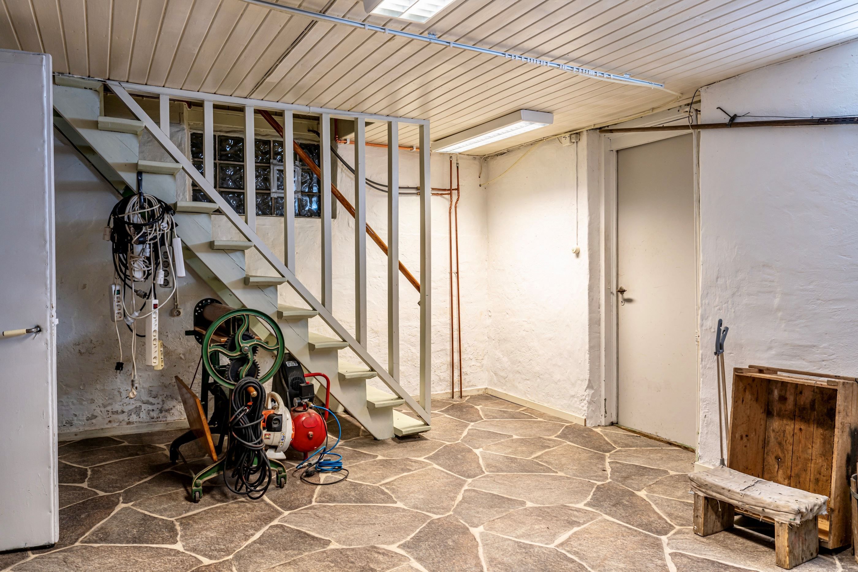 Källarplanet erbjuder generösa ytor med stor utvecklingspotential. Här finns möjligheter att skapa fler bostadsutrymmen, hobbyrum eller kanske ett generationsboende – här sätter endast fantasin gränser.