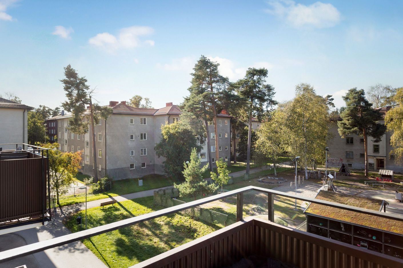 Nackareservatet nås ett par hundra meter bort med flera badsjöar, utegym och trevliga promenadstråk.