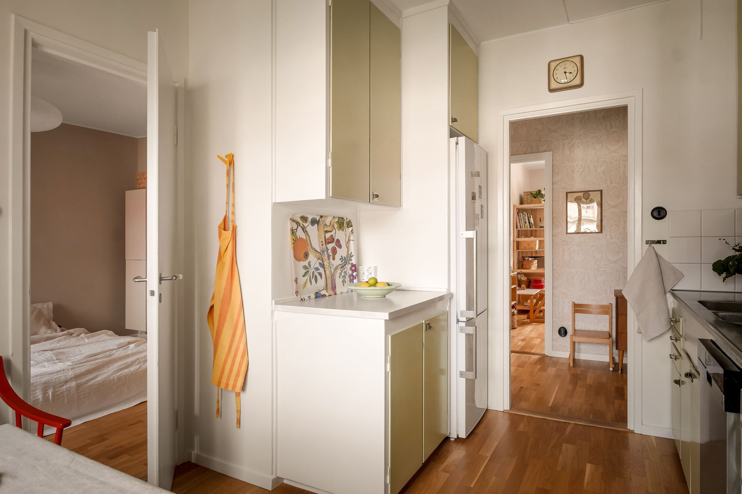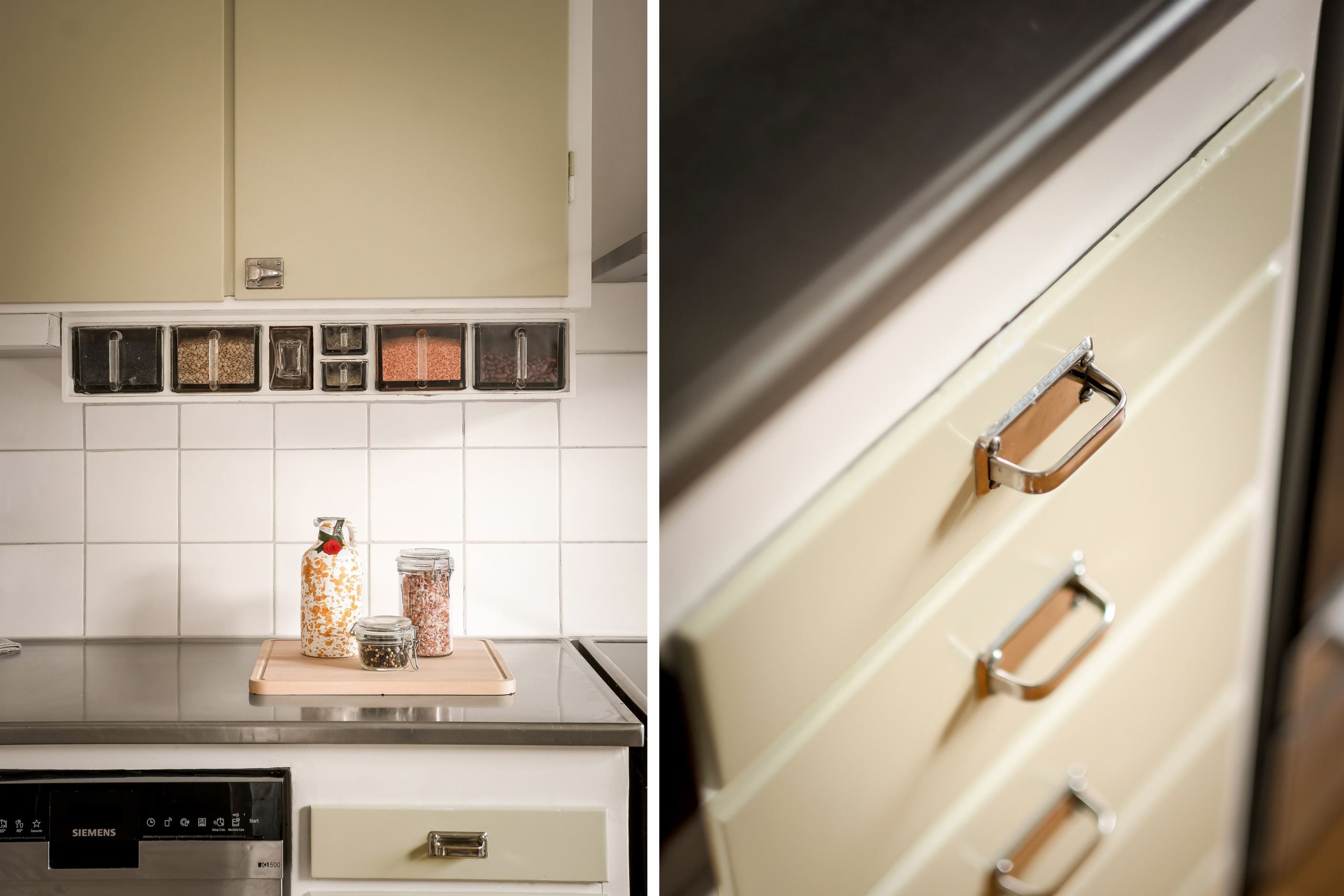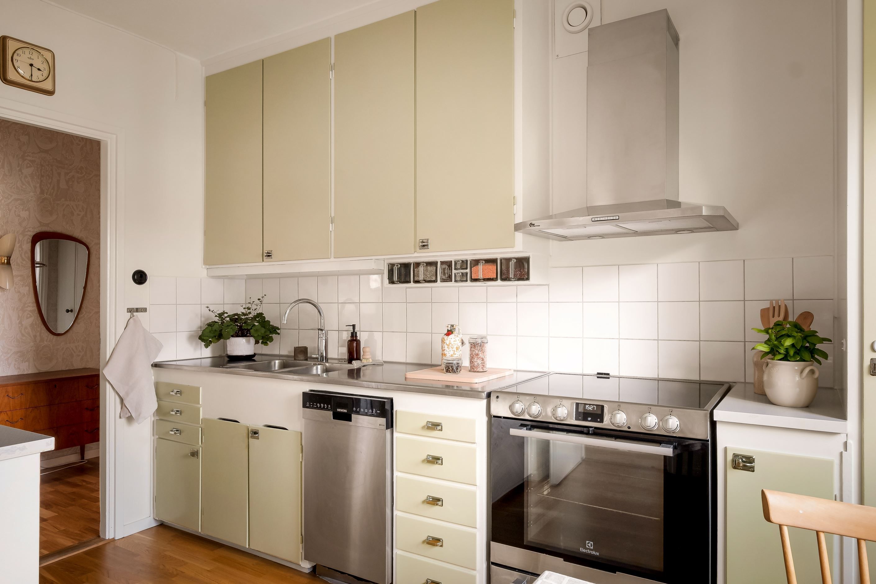 Hela hemmet har genomgått en omfattande standardhöjning med noggrant utvalda material, en harmonisk färgsättning och bevarade funkisdetaljer. Varje del är utförd av välrenommerade hantverkare. Här möts dagens höga krav på komfort och 50-talets tidlösa estetik. Det vackra originalköket har restaurerats för att bevara sin själ samtidigt som samtliga vitvaror är utbytta och inkluderar en extra bred induktionsspis i rostfritt.