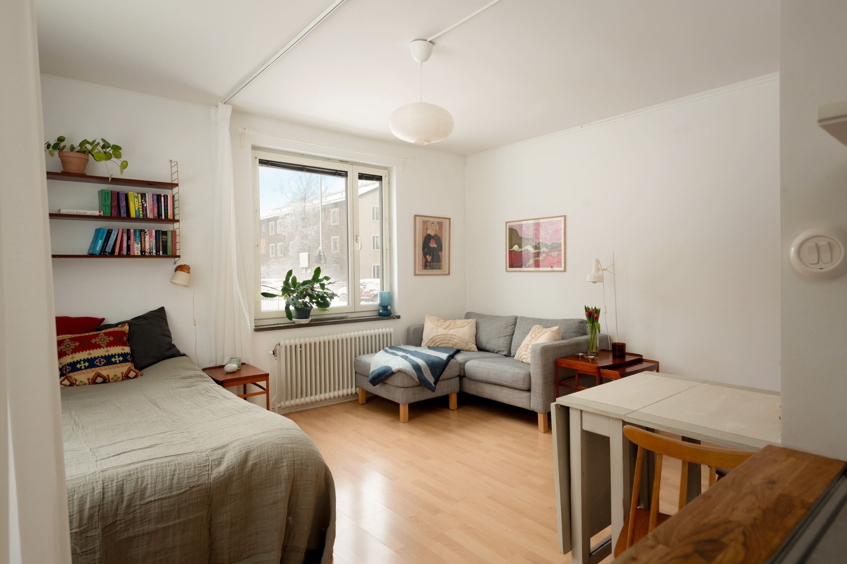 Välkommen till Emågatan 39 och till denna lättmöblerade och charmiga hörnetta med ett unikt ljusinsläpp tack vare fönster i två väderstreck!