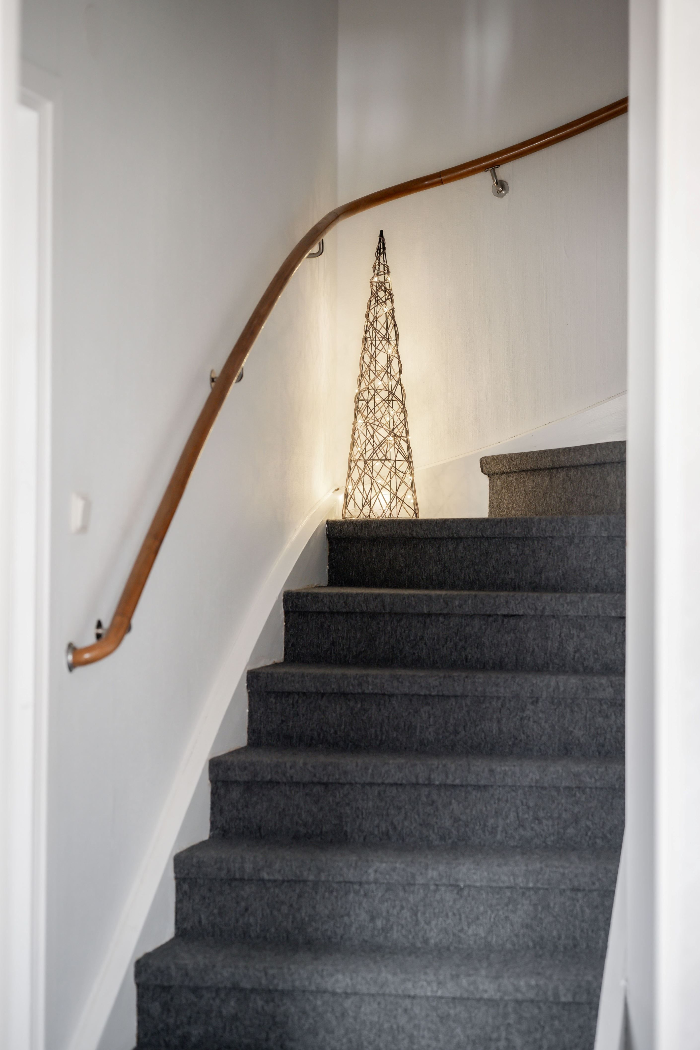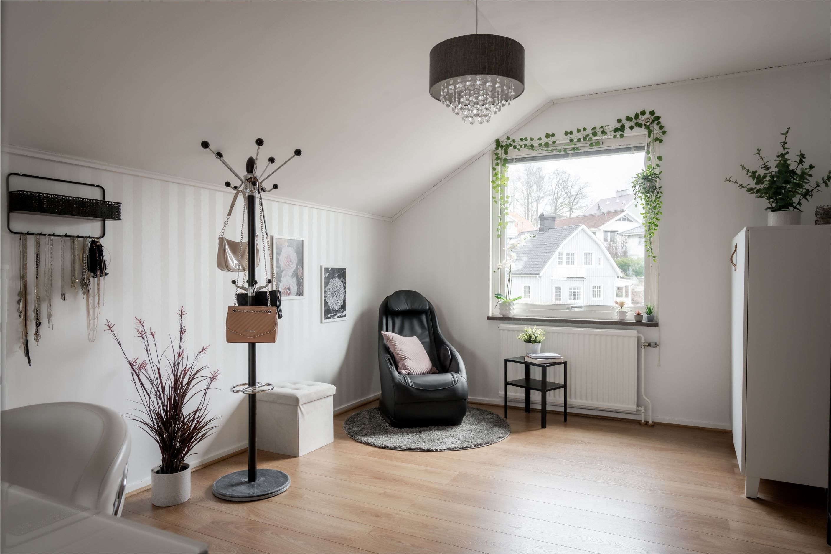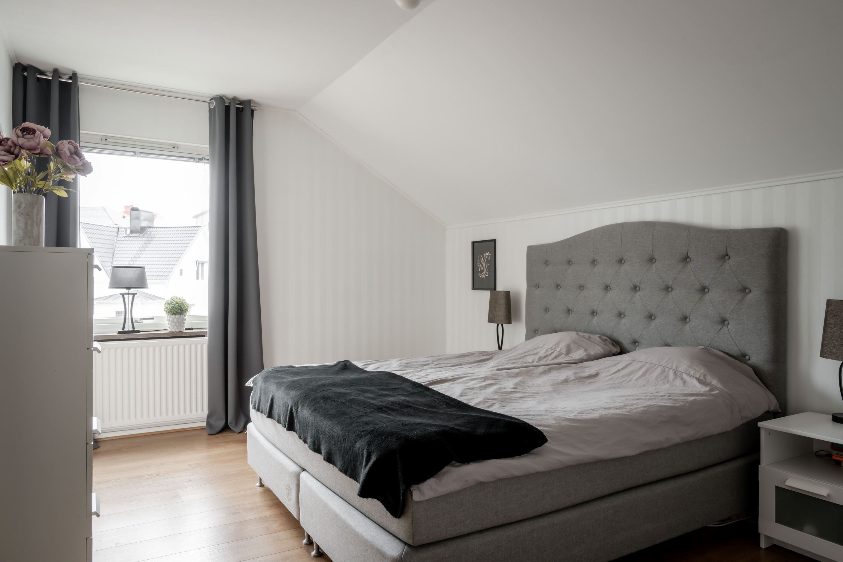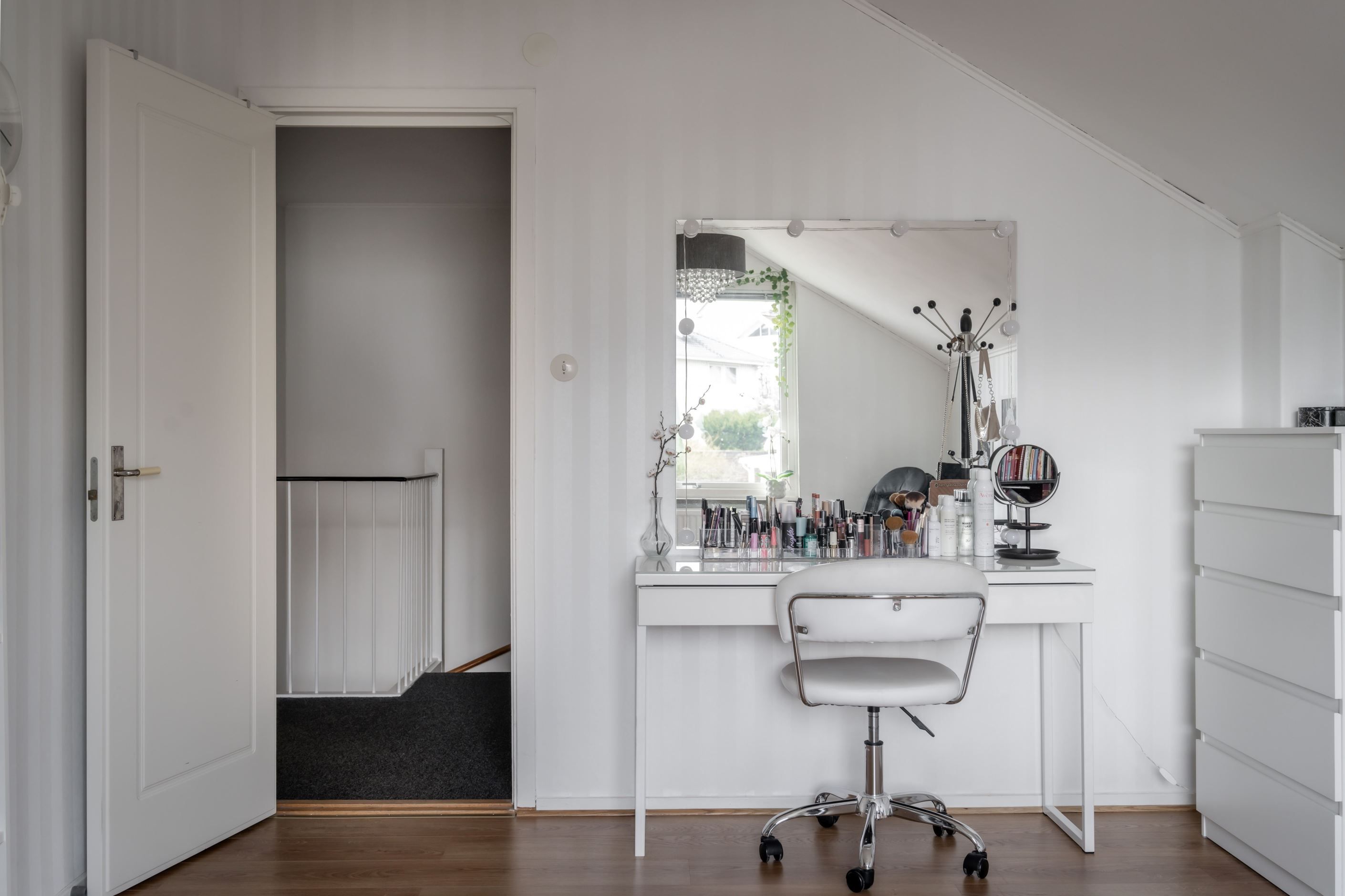 Ovanvåningen rymmer ytterligare två sovrum tillsammans med gott om förvaring i form av klädkammare samt ett badrum med tvättmöjligheter. Helheten präglas av en välhållen standard, genomtänkta materialval och en tydlig uppdelning mellan sociala och privata ytor.