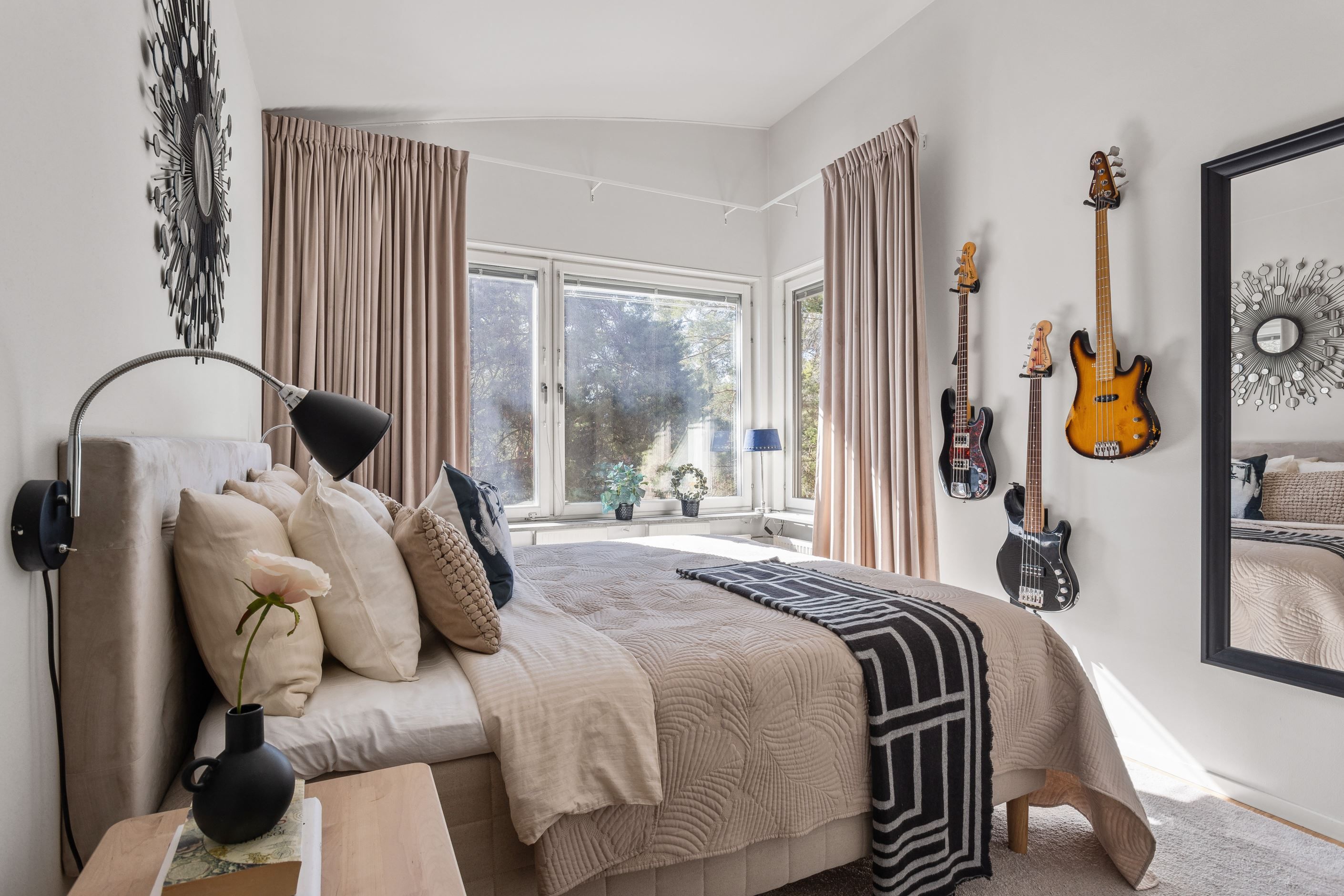 Sovrum 1 har snedtak, runt fönster och ljusa väggar vilket ger rummet en behaglig sovmiljö. I anslutning finns en egen klädkammare. Sovrum 2 har precis som sovrum 3 ett hörnfönster som släpper in ljus från flera håll. Alla tre sovrummen ger plats för dubbelsäng. Sovrum 3 är kan användas utifrån behov – som matrum, gästrum eller ytterligare sovrum.