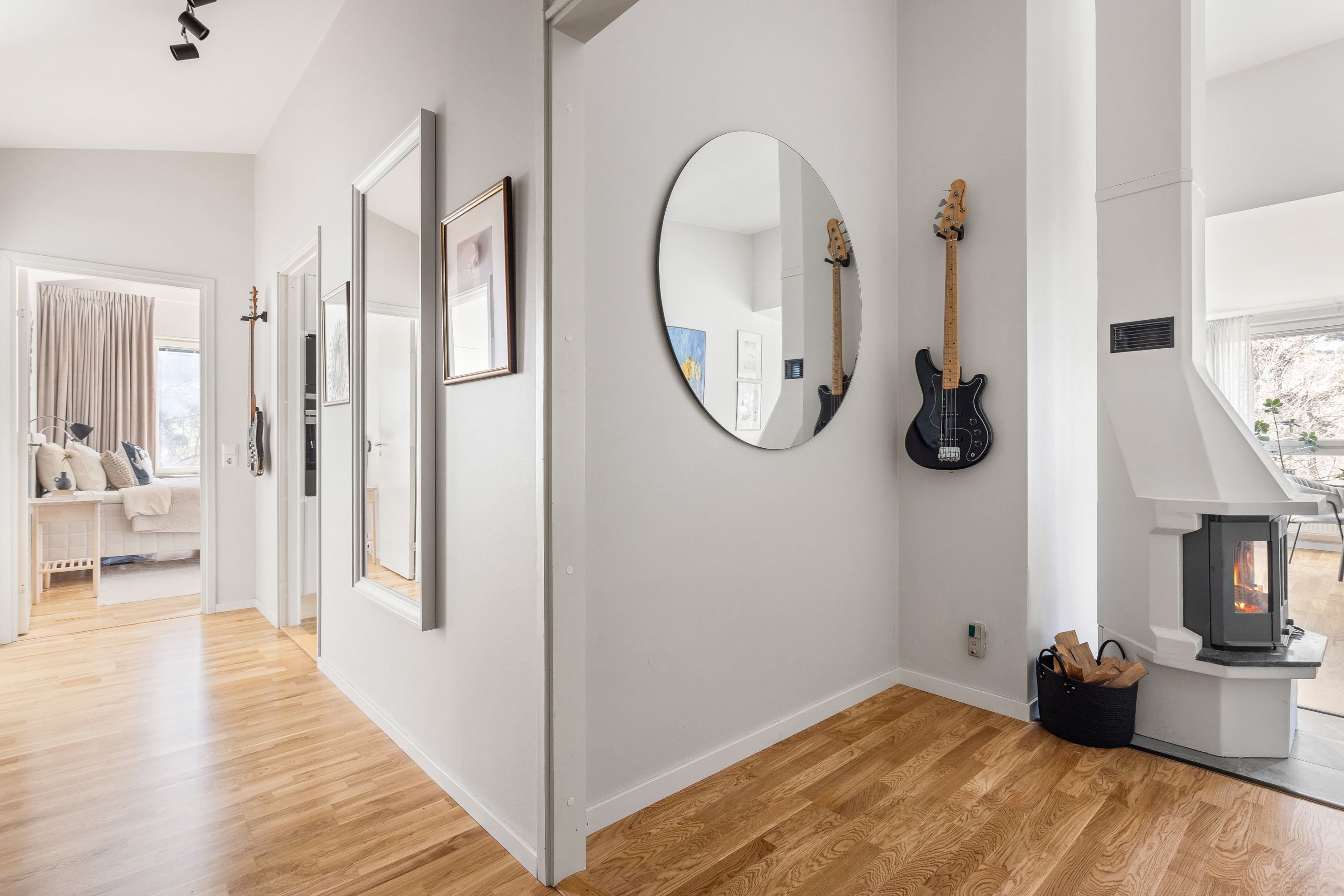 Bostaden erbjuder 113 kvm med en väl avvägd planlösning där de sociala ytorna och de mer privata rummen håller sig avskilda från varandra i bostaden. Hörnläget ger ordentligt med ljus i alla rum och redan i hallen möts du av en varm och välkomnande känsla med en entré som ramas in av den mörkröda ytterdörren och ett praktiskt ljust klinkergolv. Här finns förråd i direkt anslutning, vilket gör det enkelt att hålla ordning i vardagen. Från hallen leds du vidare in i bostadens centrala delar där ljuset och rymden snabbt gör sig påminda.