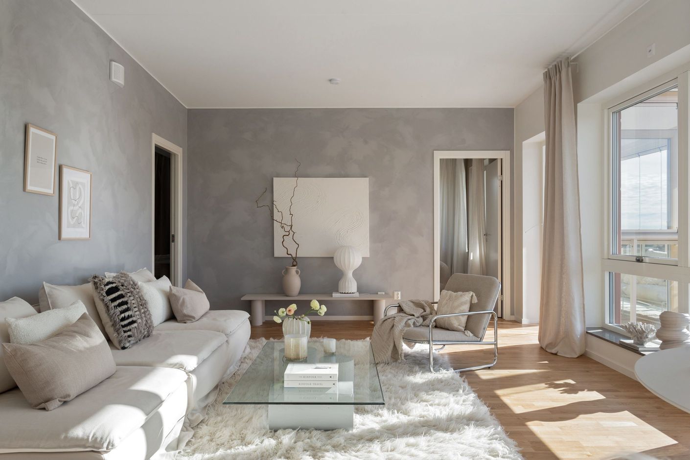 Bostaden är en visningslägenhet och har inte varit bebodd alls sedan huset byggdes så bostaden har verkligen massor av nyskickskänsla.