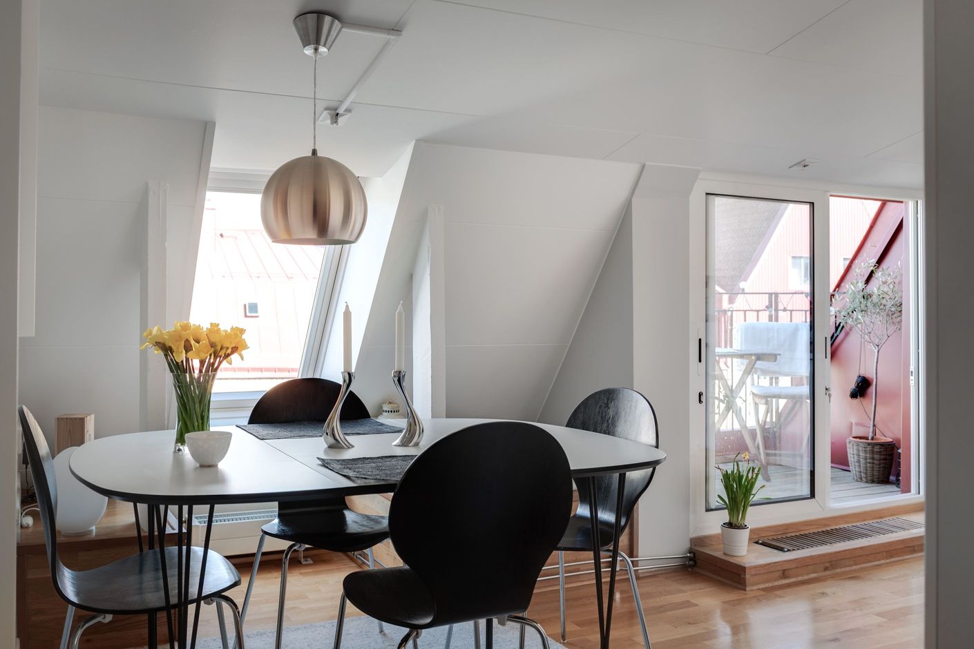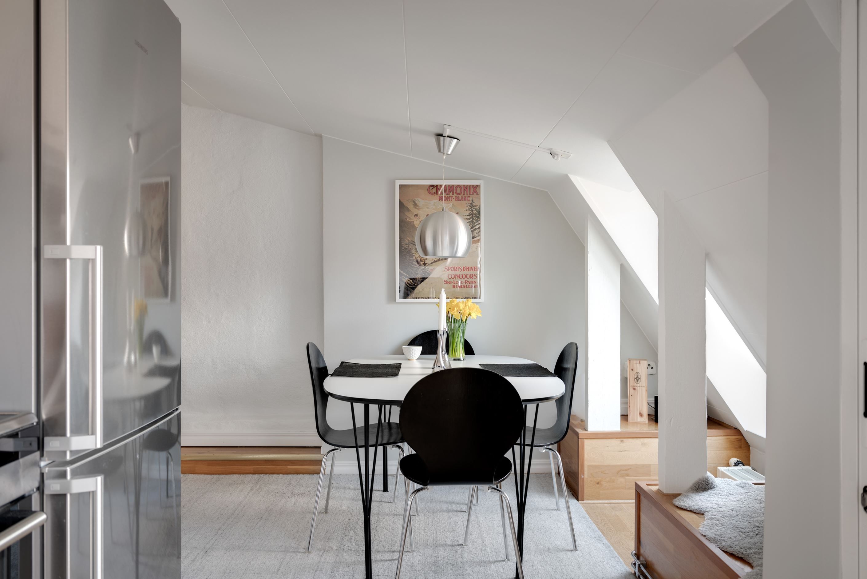 Ett extremt charmigt hem med framtagna takbjälkar, murstockar, bra ljusinsläpp från flertal takfönster och spännande vinklar vrår. Det är svårt att inte bli förälskad!