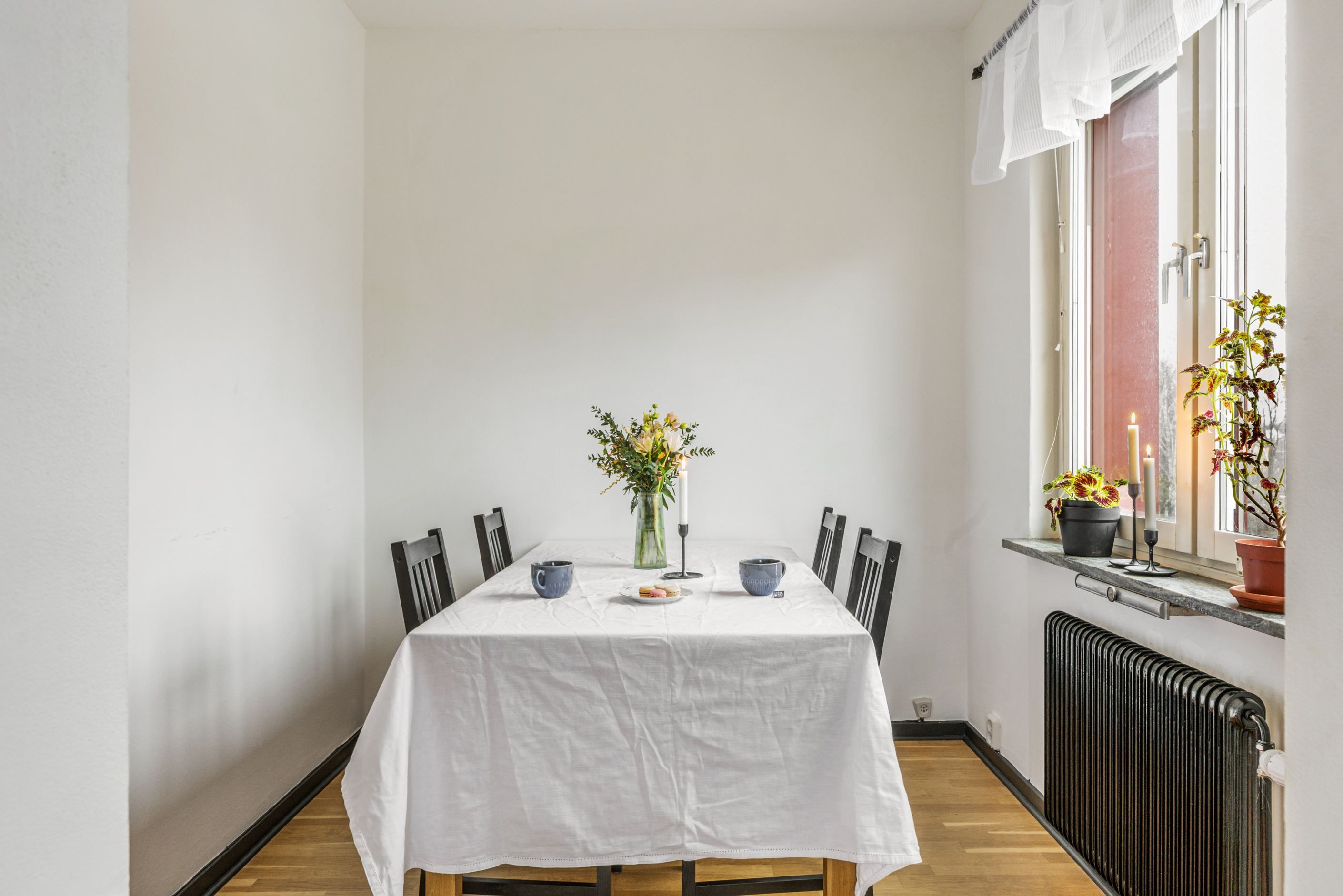Bostaden har ett mindre separat kök med ett litet skafferi, i anslutning till matrummet. Det rymliga vardagsrummet har fint ljusinsläpp och utgång till balkong mot bakgården med kvällssol. Sovrummet har plats för både dubbelsäng och förvaring. Här bor du i ett lugnt område med trevliga grannar och god gemenskap, samt gångavstånd till centrum, service och kommunikationer.