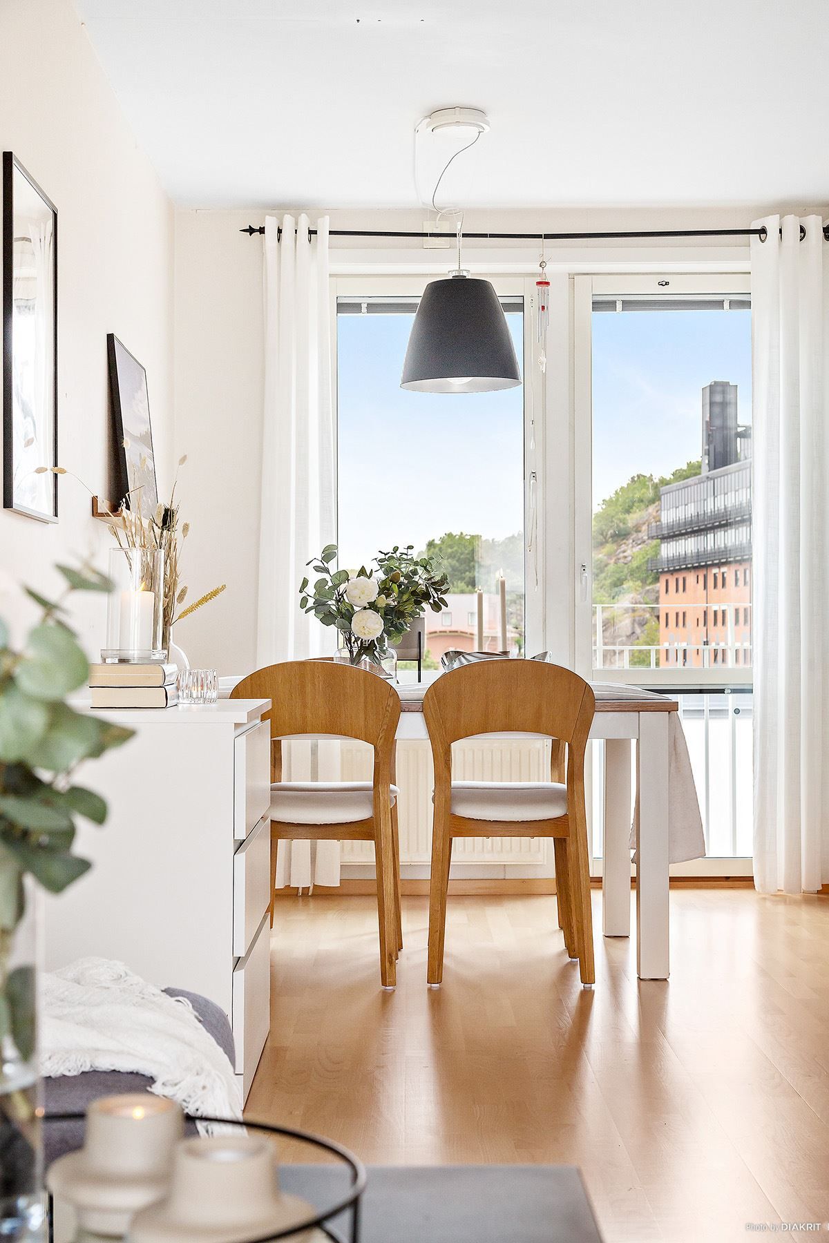 Fin tvåa med härligt ljusinsläpp högt upp i huset i hjärtat av Eriksberg. Visst låter det lockande? Detta är en bostad för dig som vill bo med utsikt över älven och närhet till allt. Ta hissen upp till våning 4 och kliv in i denna ljusa och rymliga tvåa om hela 61,5kvm. Planlösningen är genomgående vilket ger ett härligt ljusflöde genom hela bostaden. Köket och vardagsrummet ligger i en halvöppen planlösning, för att enkelt kunna umgås med vänner och familj i sociala sammanhang. Vardagsrummet rymmer enkelt en stor soffa och tv möblemang, i köket finns plats för ett matbord intill fönstret. Från vardagsrummet kliver ni ut på bostadens härliga balkong i högt och fritt söderläge. Här är får ni en magiskt utsikt över älven och ner mot föreningens grönskande innergård. Tänk er att sitta här i goda vänners lag och avnjuta ett glas vin samtidigt som ni ser solen strålar speglas i vattnet, det är livskvalité. Badrummet är rymligt och erbjuder separat tvättavdelning med TM/TT. I anslutning till hallen finns även ett större förråd som kan nyttjas som klädkammare. Överlag en riktigt bra lägenhet, för den ensamma såväl som paret. Här bor ni i en stabil och välskött förening med fint läge på Eriksberg. Precis utanför entrén har ni en välsorterad Tempo, vilket är en otrolig vardagslyx.
