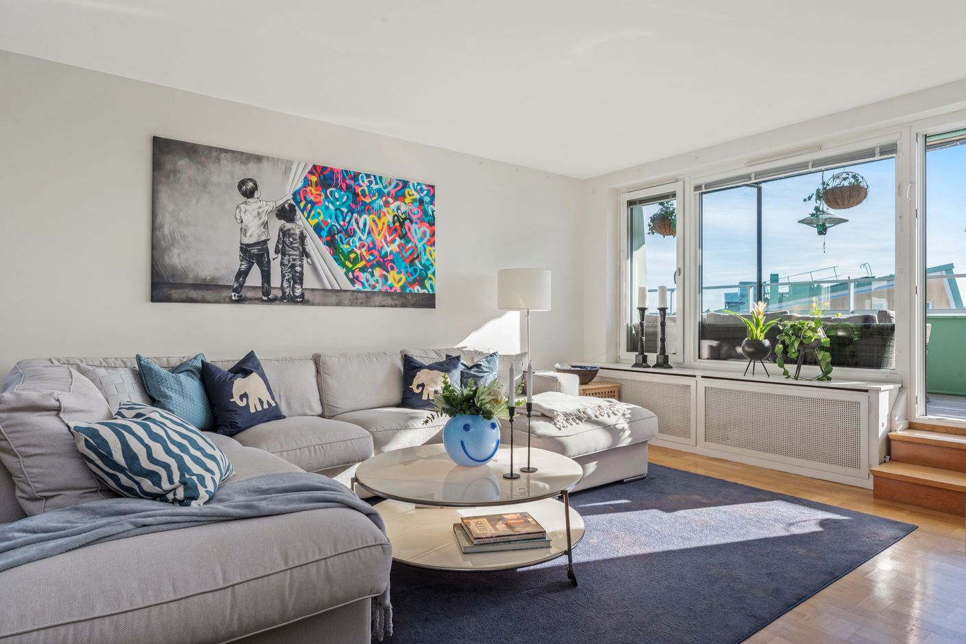 Här möts du av ett hem utöver det vanliga – en magnifik etagelägenhet på 6 rum och kök om 137,5 kvm med ett högt och fritt läge helt utan insyn och med en utsikt som tar andan ur dig.