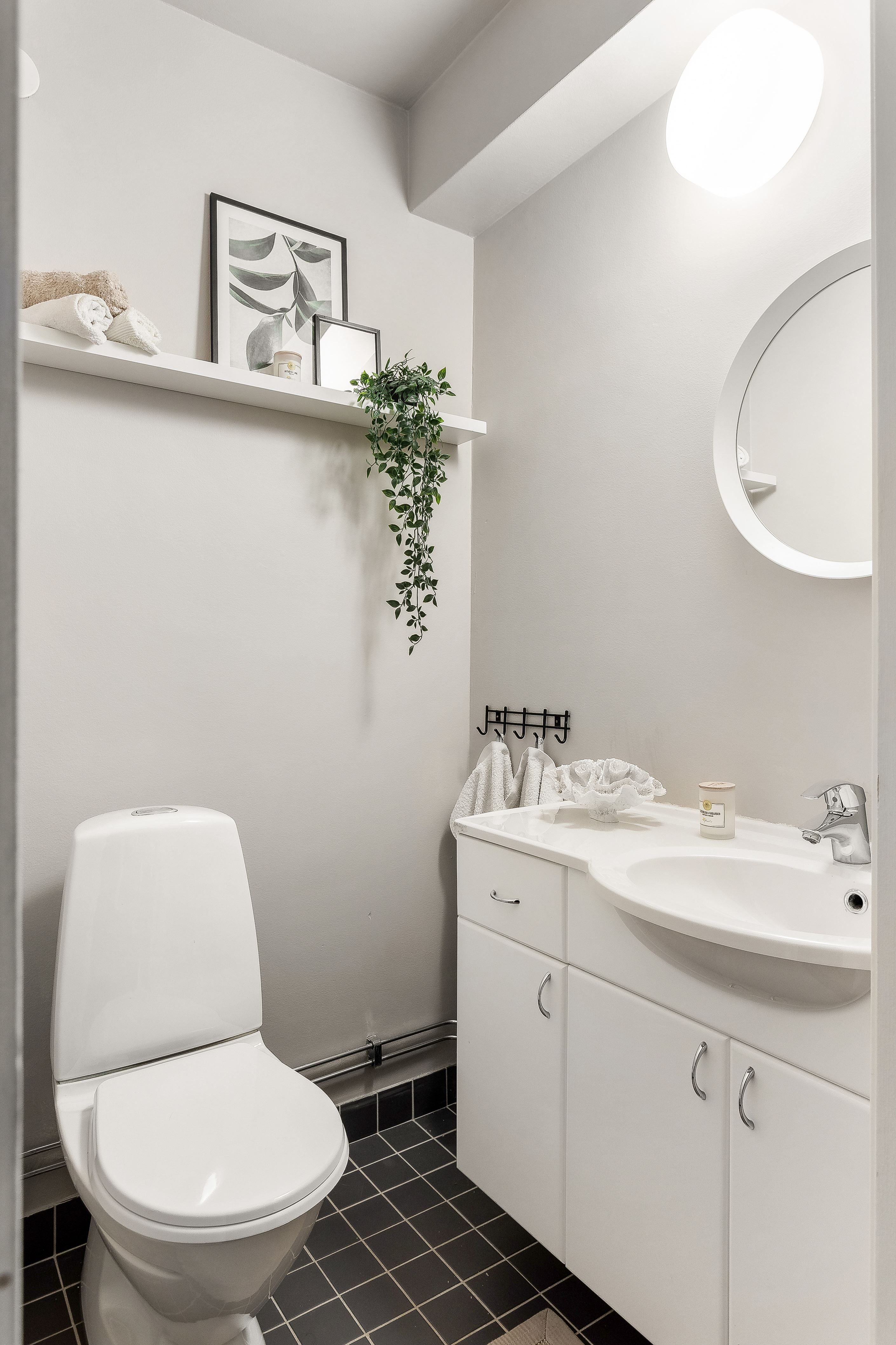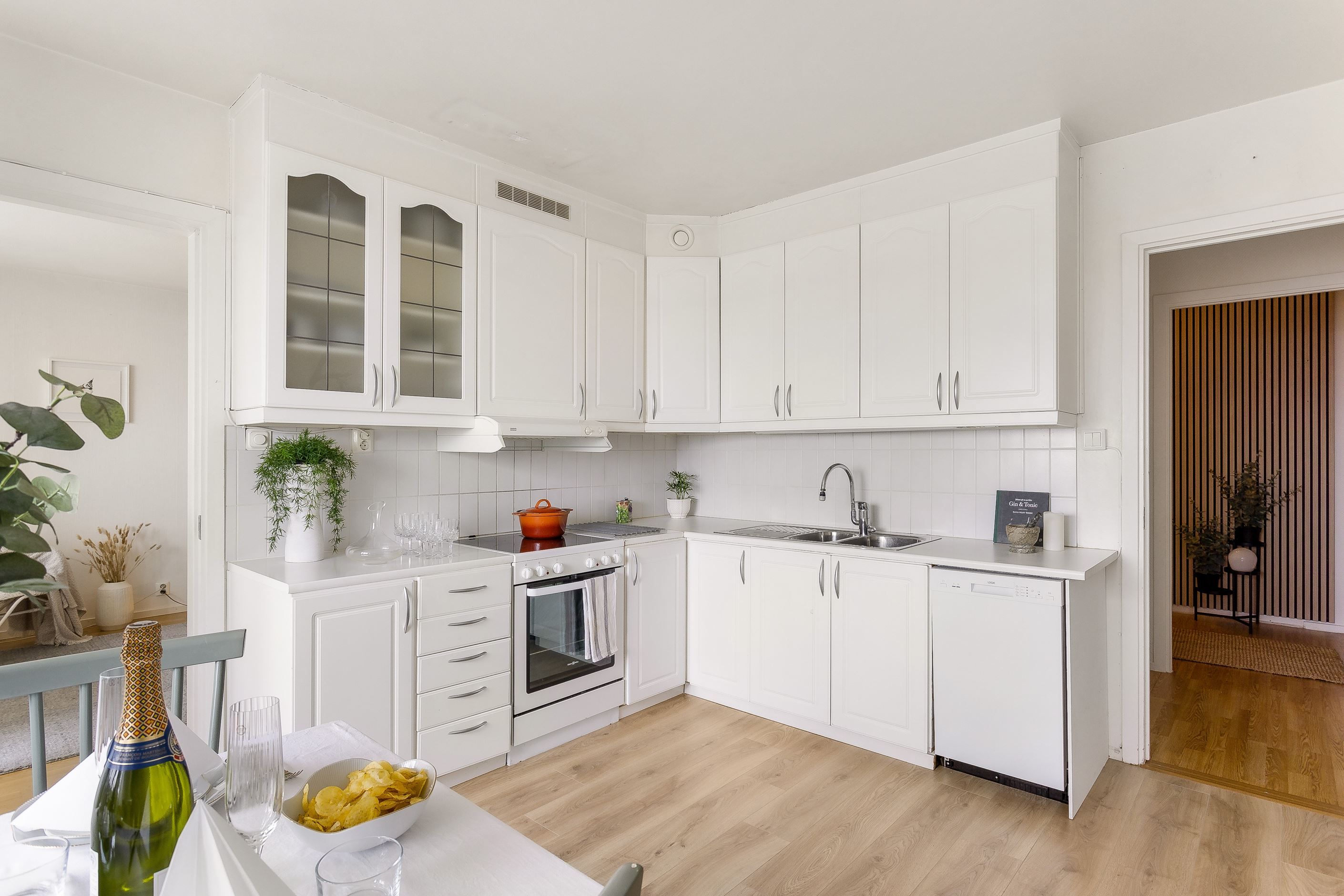 Bostaden erbjuder ett luftigt vardagsrum, två rymliga sovrum samt ett kök med gott om arbetsyta och förvaring. Dessutom finns både ett helrenoverat, stambytt badrum och en praktisk gäst-wc, en lyx som förenklar vardagen.