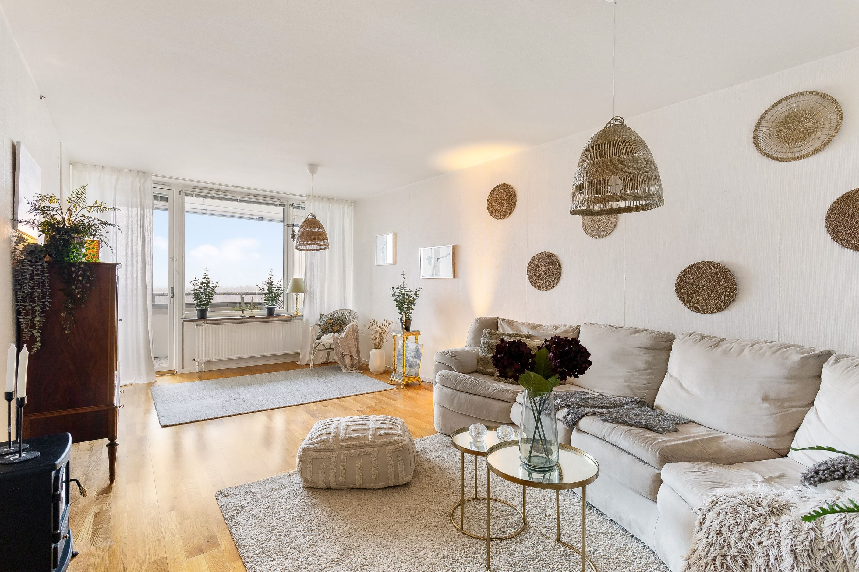 Högst upp i huset - välplanerad 3:a med inglasad balkong och Mälarutsikt