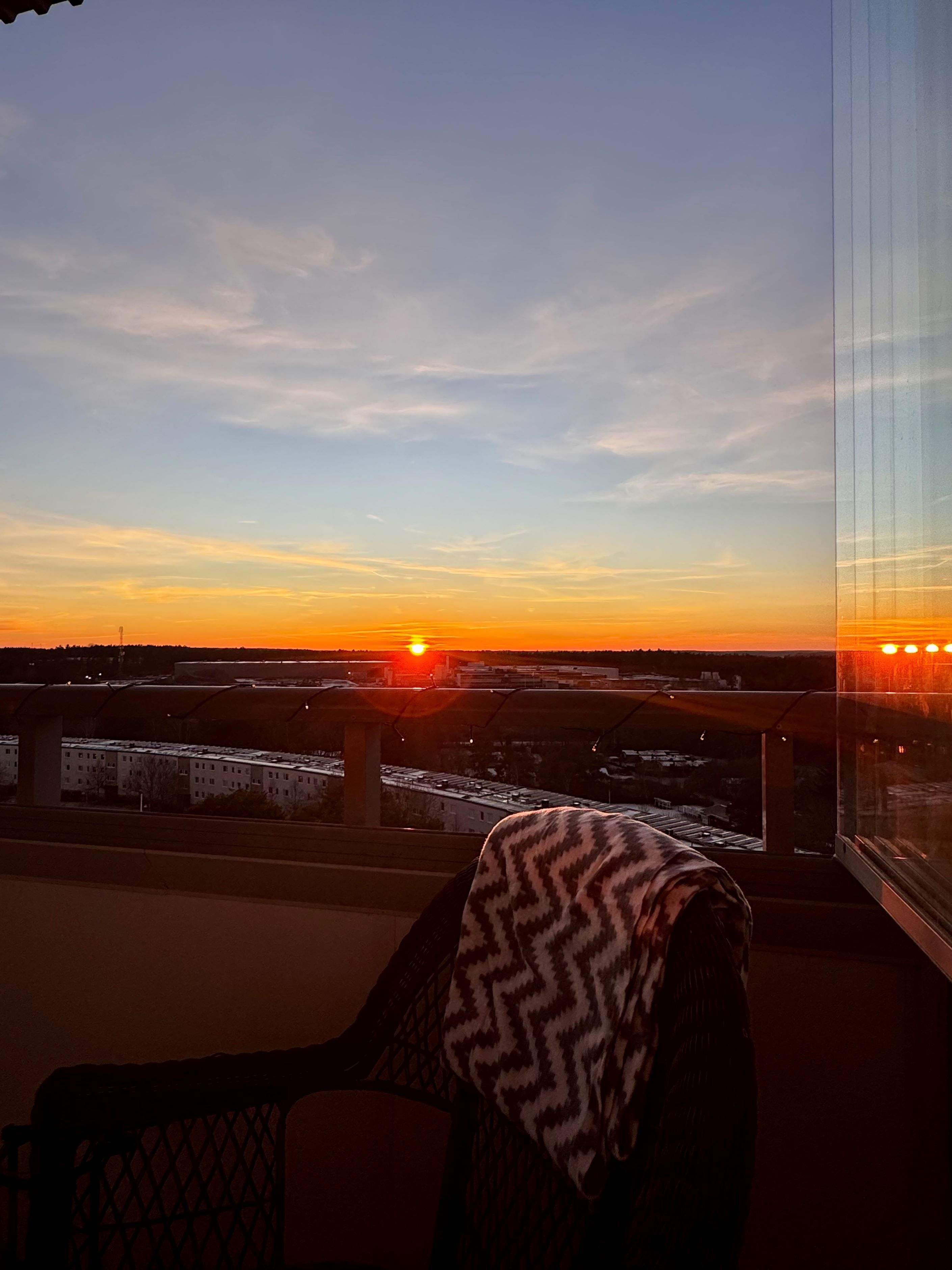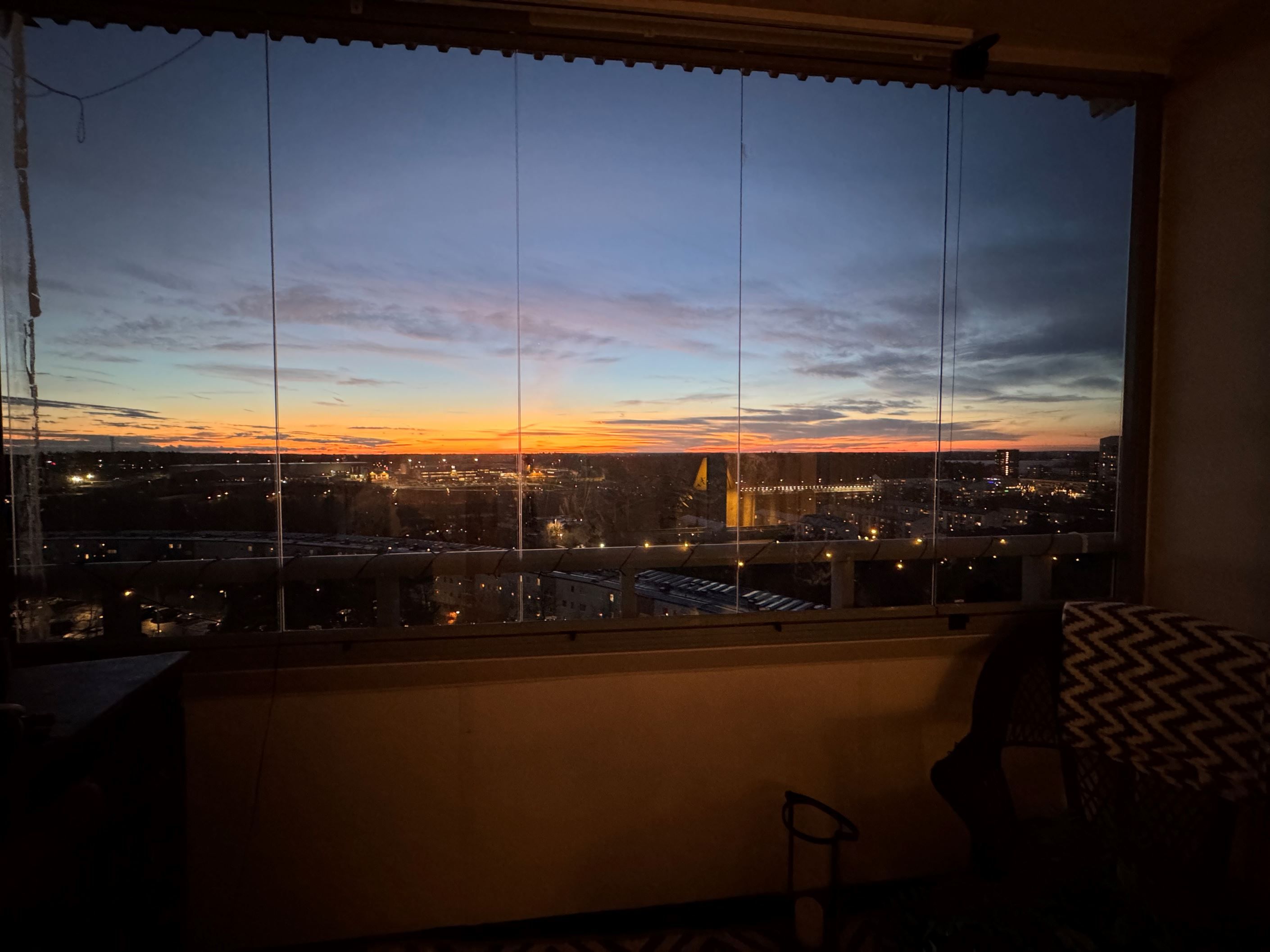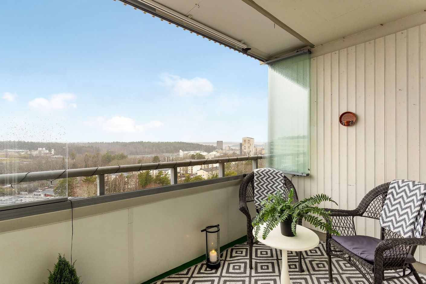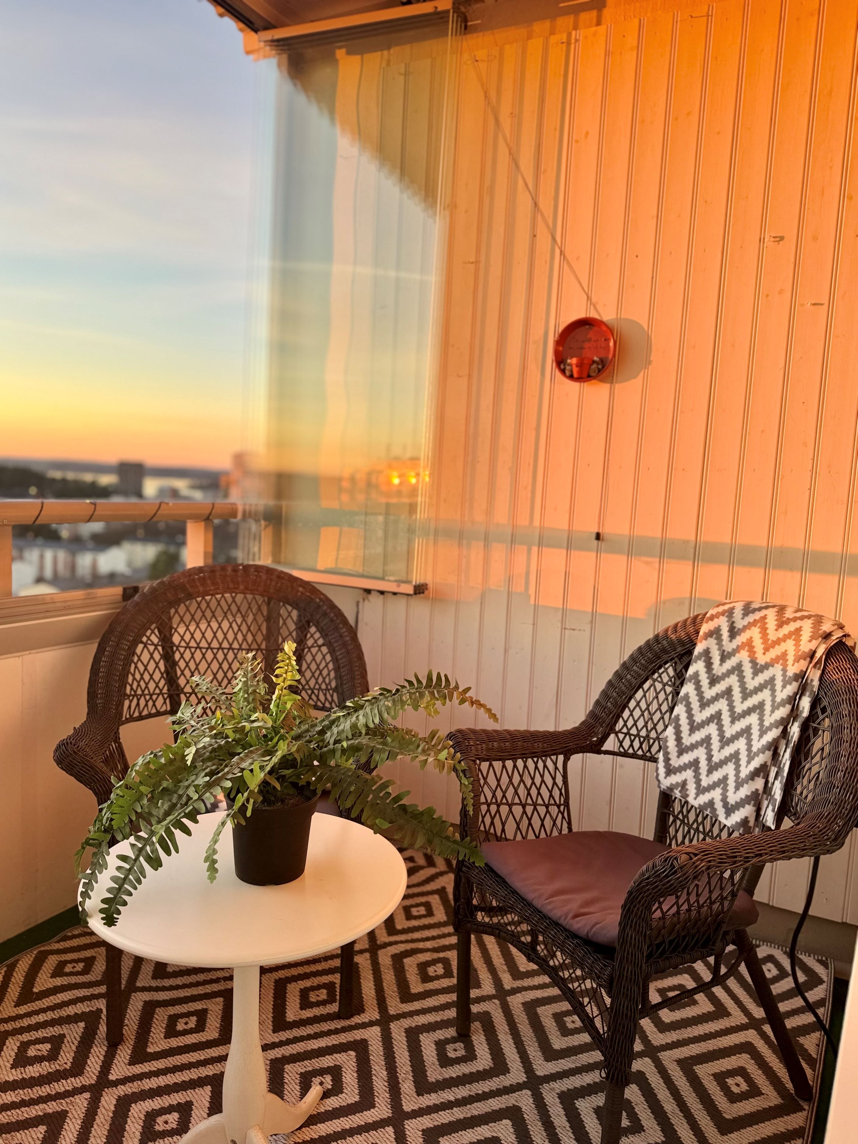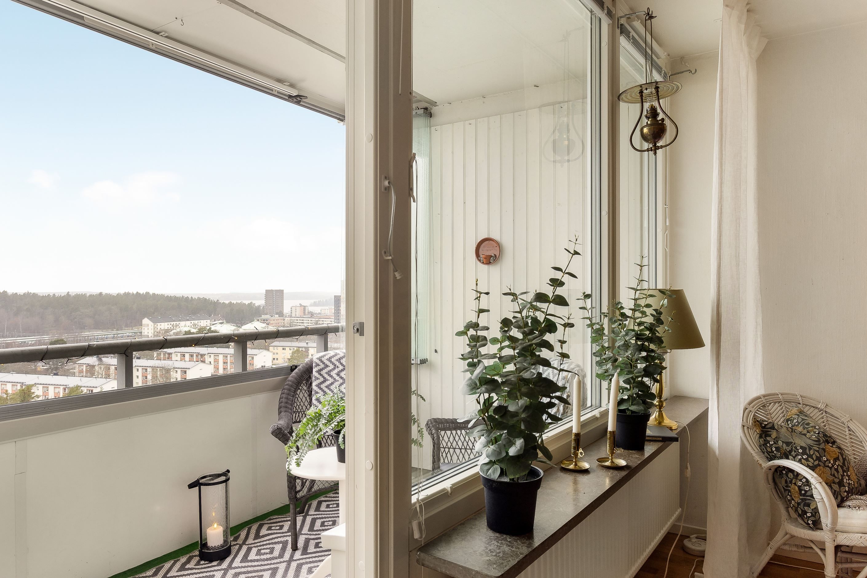 Den inglasade balkongen är ett av bostadens absoluta guldkorn - en trivsam och möblerbar plats som förlänger säsongen och bjuder på rogivande utsikt året runt. Balkongen har ett eftertraktat sydvästläge med härlig eftermiddags- och kvällssol samt möjlighet att njuta av vackra solnedgångar över omgivningarna. Perfekt för såväl morgonkaffet som kvällsmiddagar.