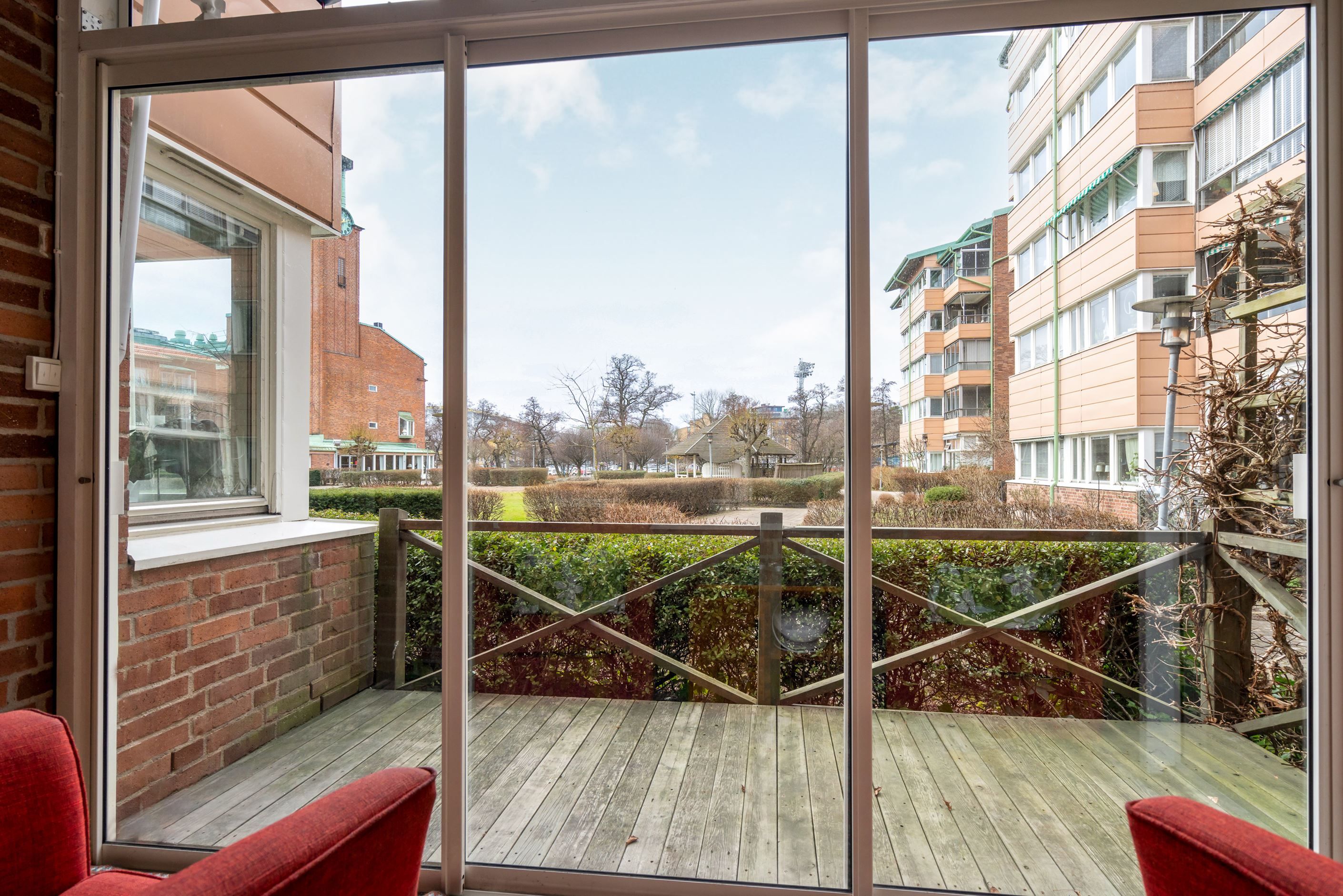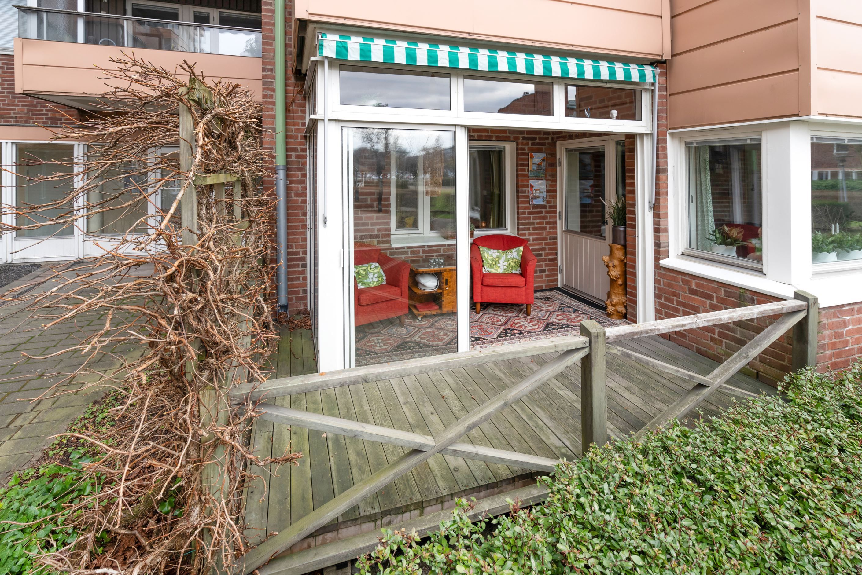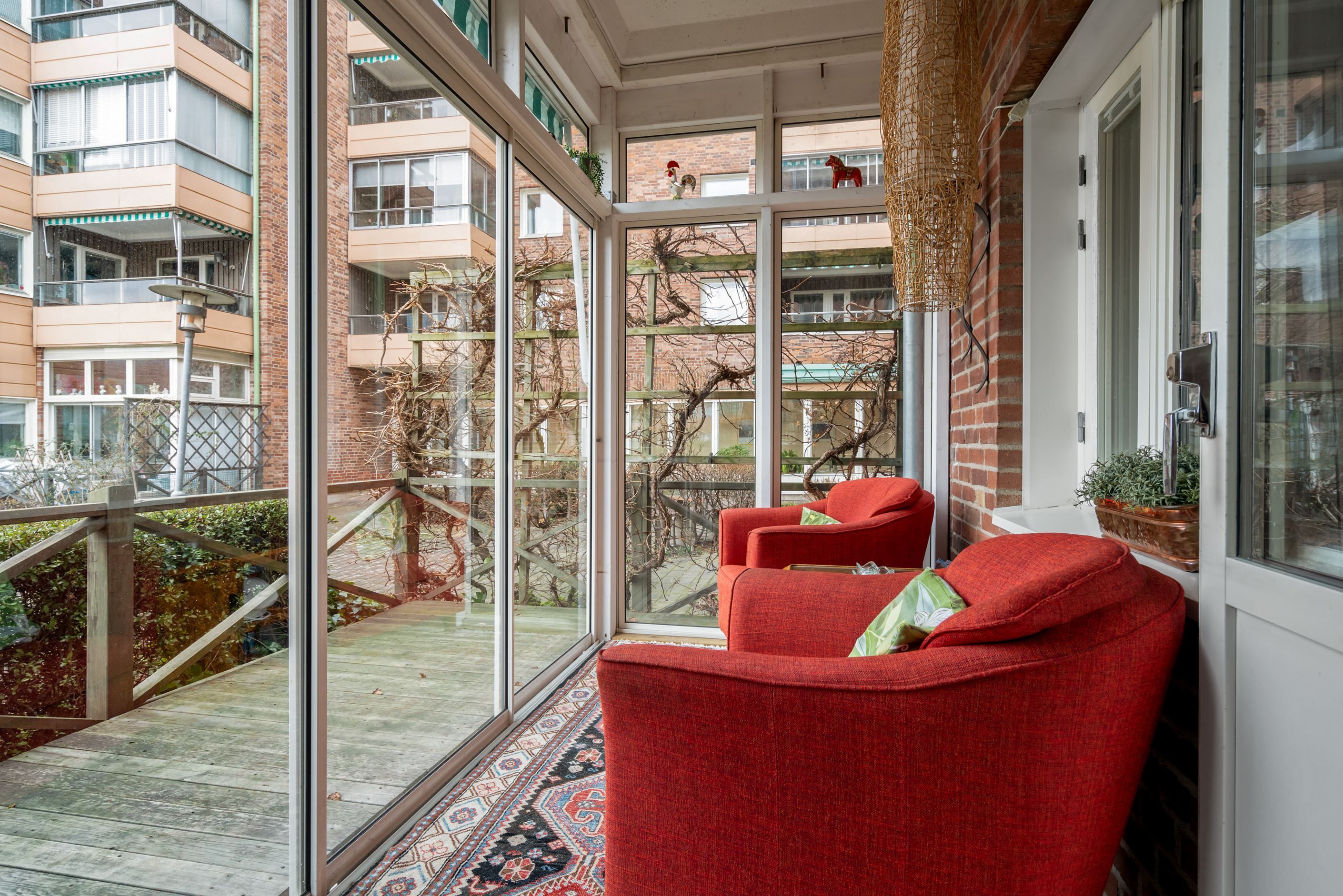 Ljus tvåa med stor inglasad balkong och egen uteplats