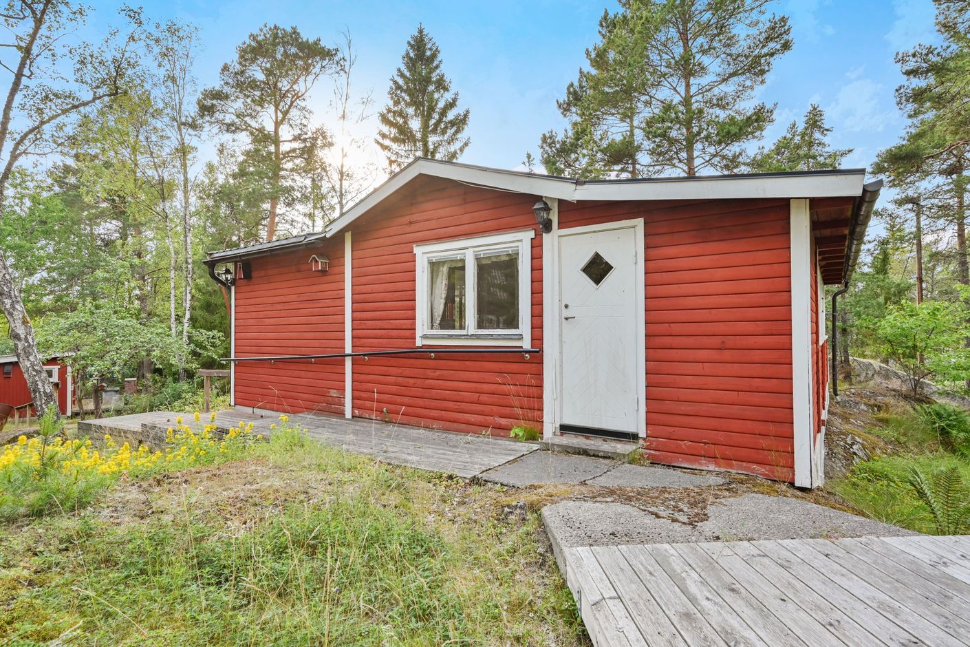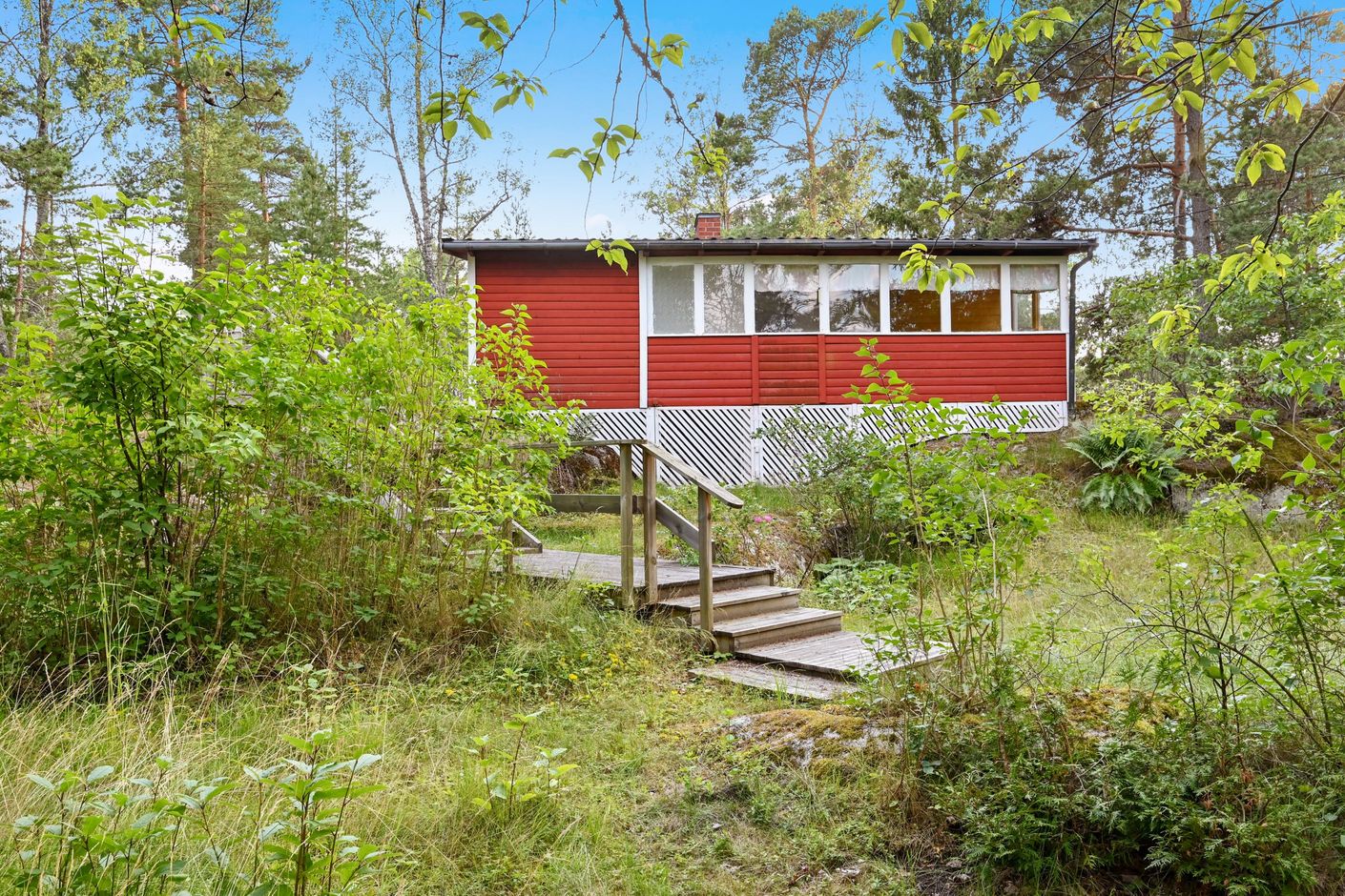 Det befintliga huset är enkelt - med ett visst behov av renovering och under håll - men inbjudande, med en planlösning som rymmer vardagsrum med braskamin, två sovrum – varav ett har utgång till altan under tak – ett separat kök, inbyggd terrass med plats för matbord samt ett wc-utrymme med mulltoalett. Här finns gott om utrymme för avkoppling under helger och sommarveckor, eller som bas för den som vill skapa något nytt.