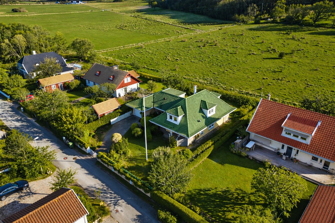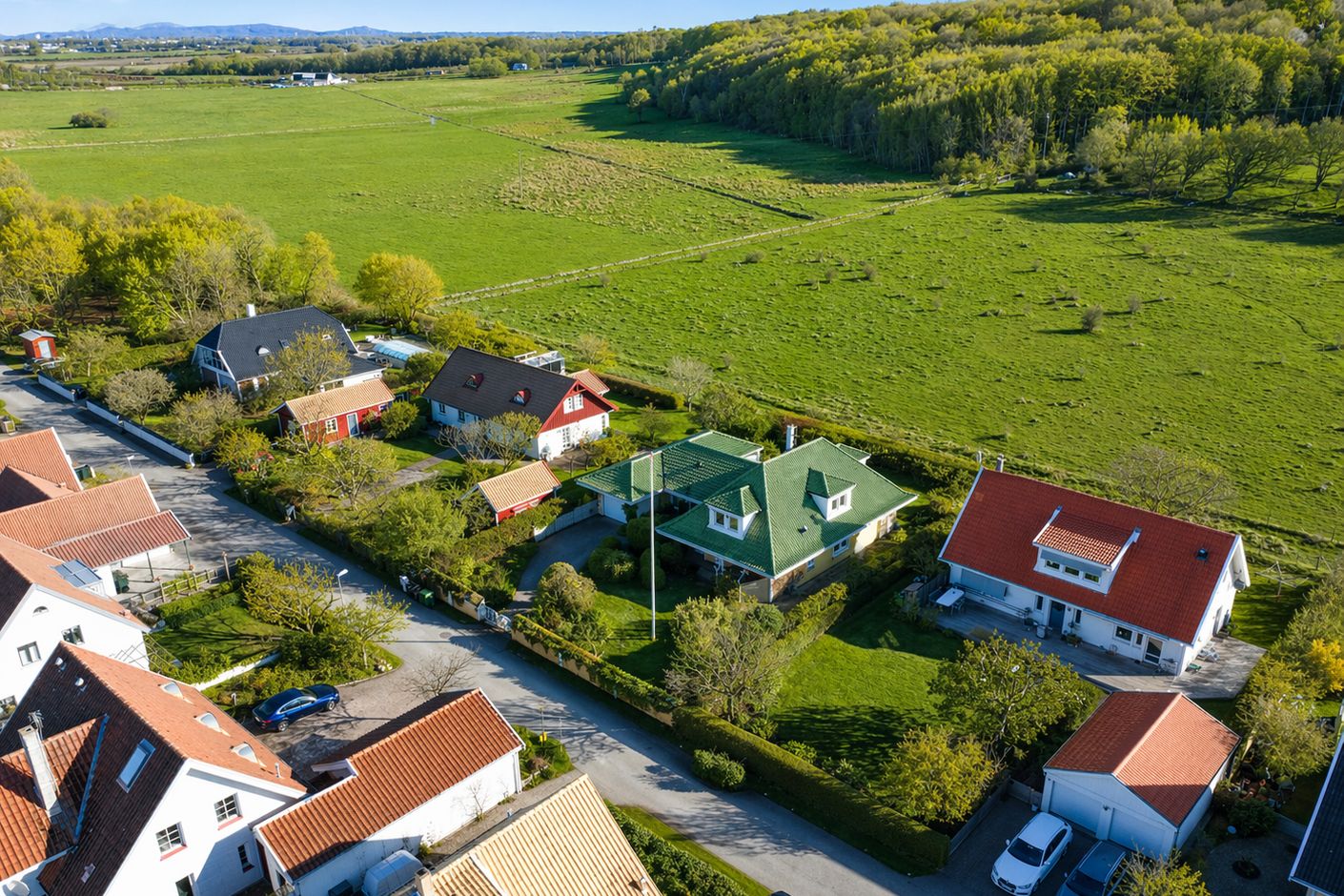 Här erbjuds ett välplanerat hem med generösa sällskapsytor och fina utblickar över omgivningarna. Redan på entréplan möts du av ett stort och inbjudande kök med matplats placerad vid ett charmigt burspråk som ger ett härligt ljusinsläpp. Vardagsrummet erbjuder gott om plats för både soffgrupp och en större matplats, och här finns även en kamin som skapar en varm och ombonad känsla. Från vardagsrummet nås bostadens uteplats, perfekt för sommarens umgänge.