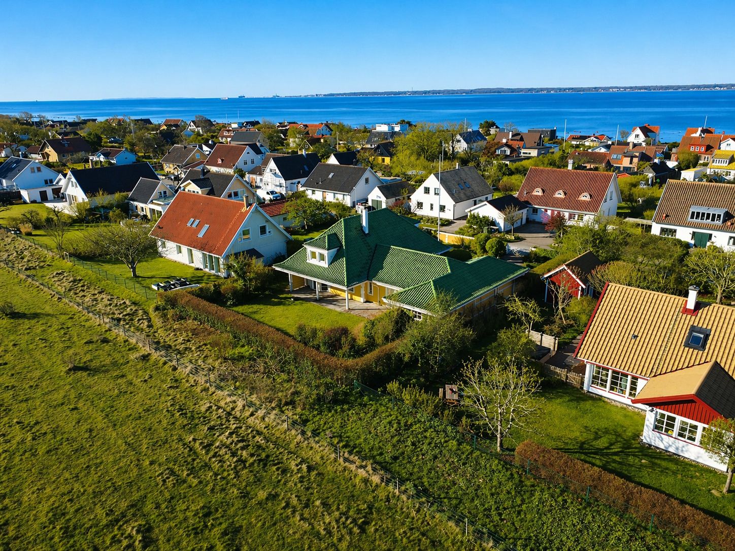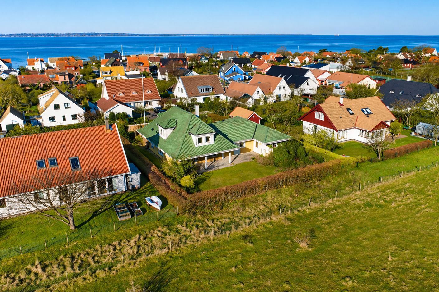 På övre plan finns tre sovrum. Två av rummen bjuder på rogivande utsikt över vackra hagar och trevliga gångstråk, medan det tredje sovrummet erbjuder en härlig vy mot havet. Här uppe finns också ytterligare ett badrum, vilket ger ett bekvämt boende för hela familjen.