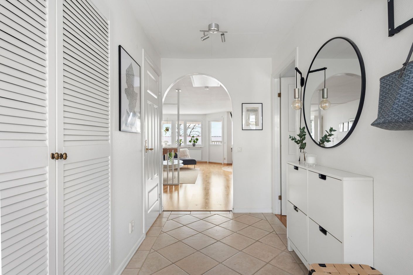 Huset erbjuder balkong och altan i soligt söderläge mot en lättskött trädgård. Från balkongen har du sjöglimt över takåsarna och kan njuta av morgonkaffet samtidigt som du ser segelbåtarna glida förbi. Bostaden är i mycket gott skick och har tre sovrum med möjlighet till ett fjärde, samt kök och vardagsrum på samma plan – en praktisk och trivsam planlösning.