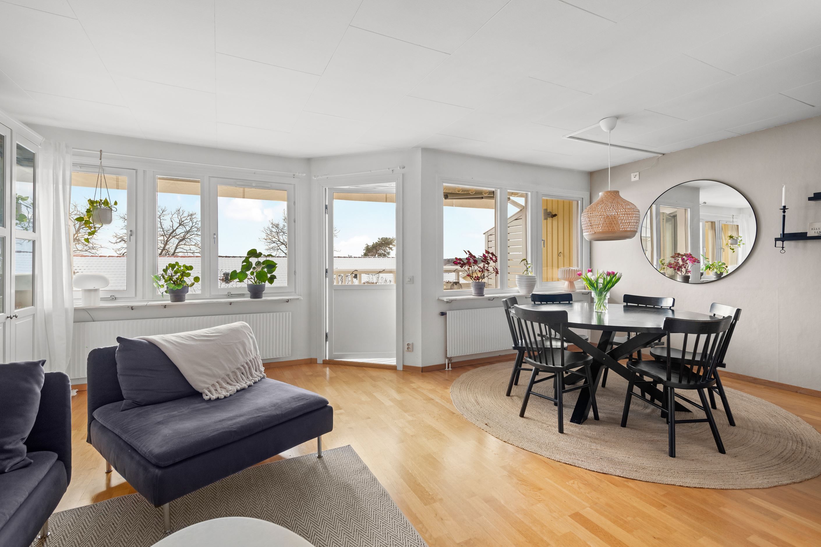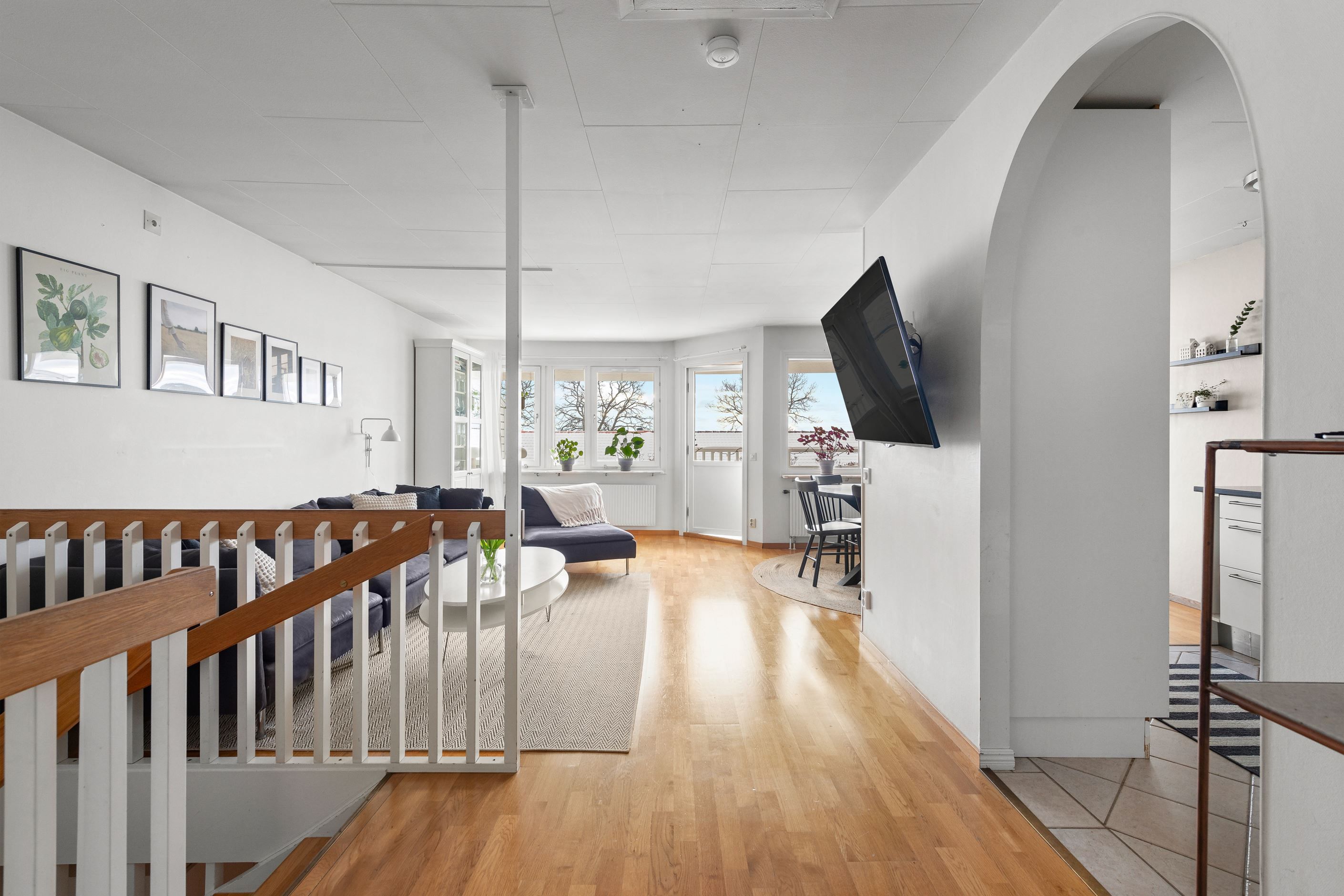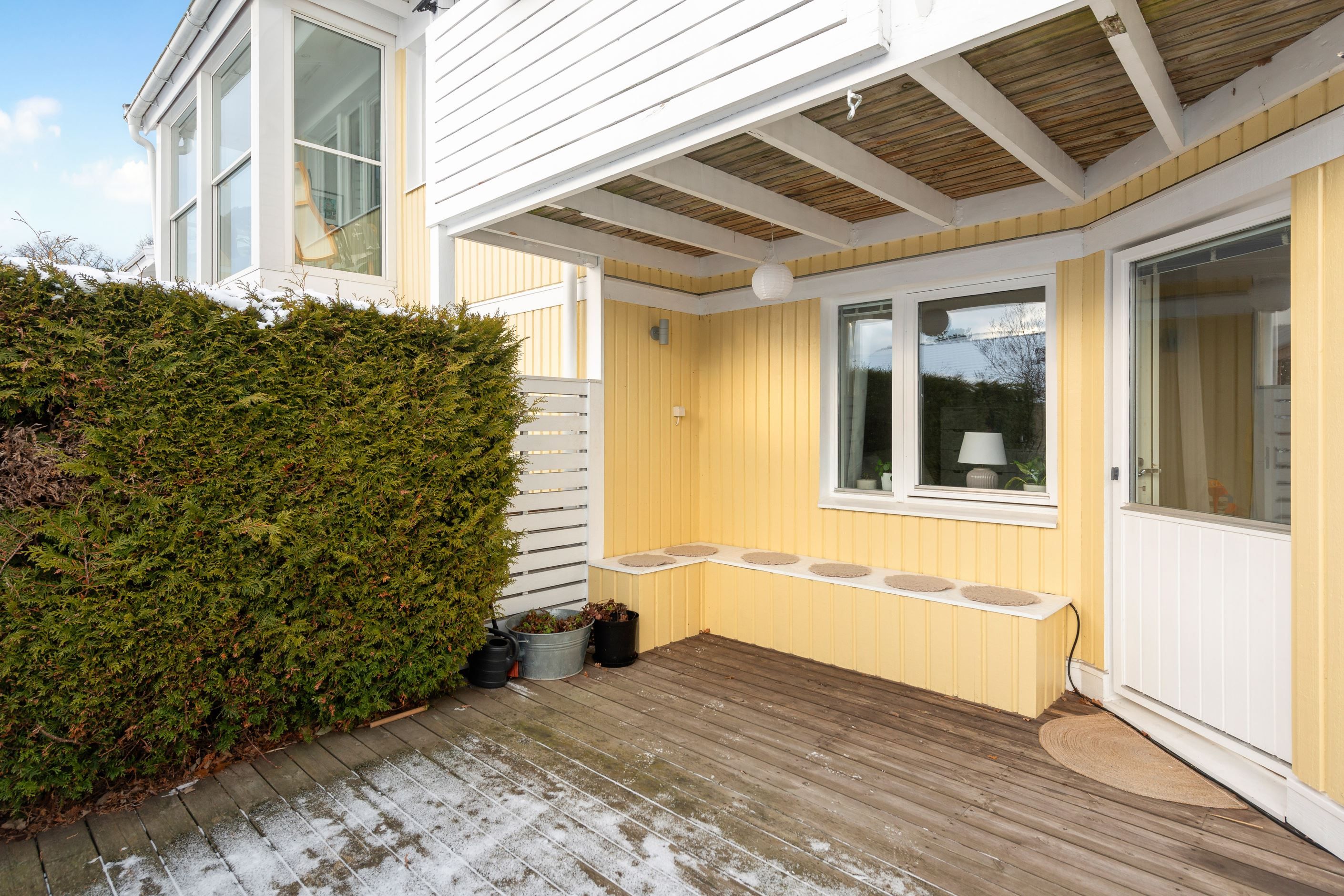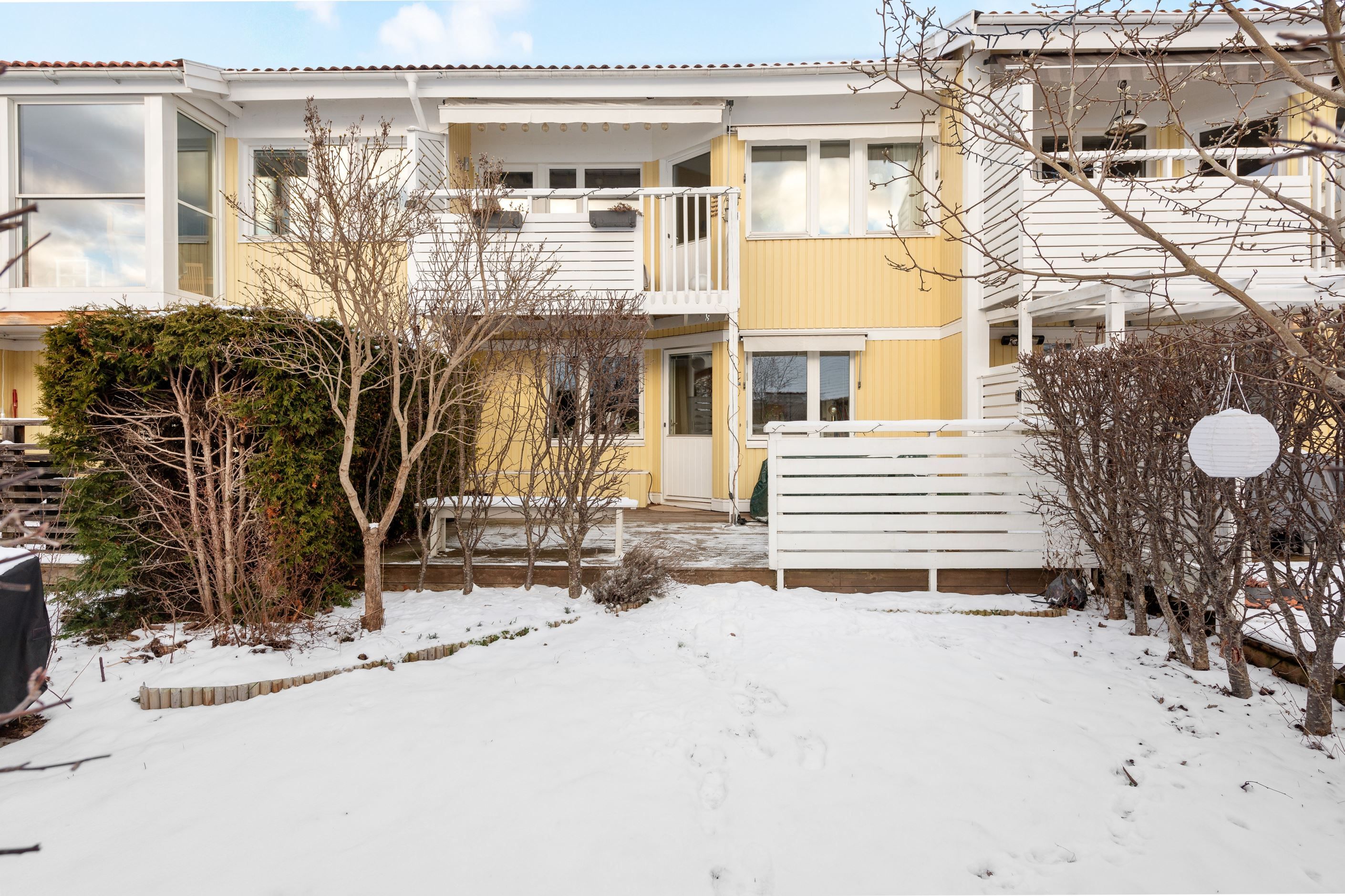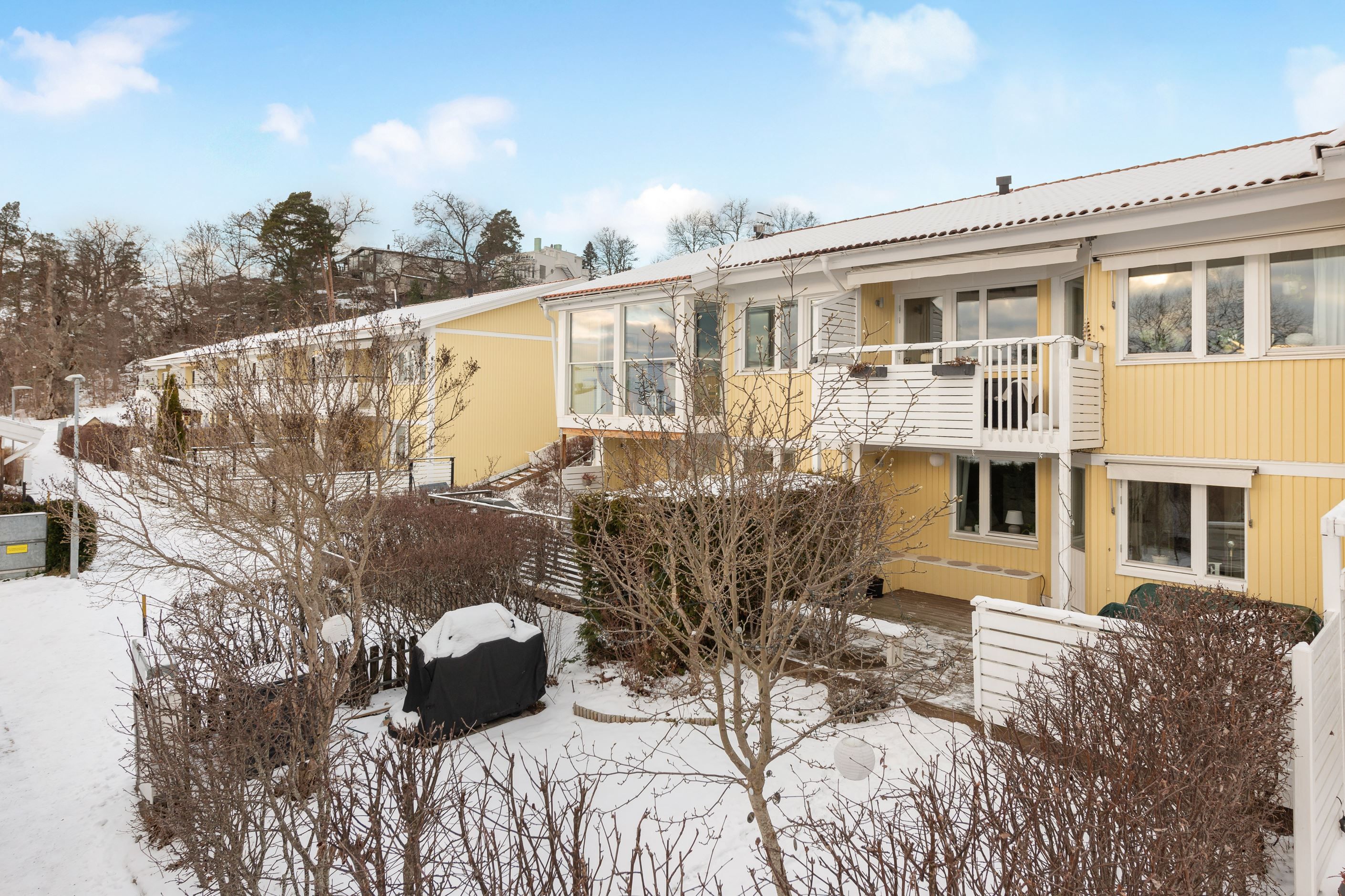 Huset erbjuder balkong och altan i soligt söderläge mot en lättskött trädgård. Från balkongen har du sjöglimt över takåsarna och kan njuta av morgonkaffet samtidigt som du ser segelbåtarna glida förbi. Bostaden är i mycket gott skick och har tre sovrum med möjlighet till ett fjärde, samt kök och vardagsrum på samma plan – en praktisk och trivsam planlösning.