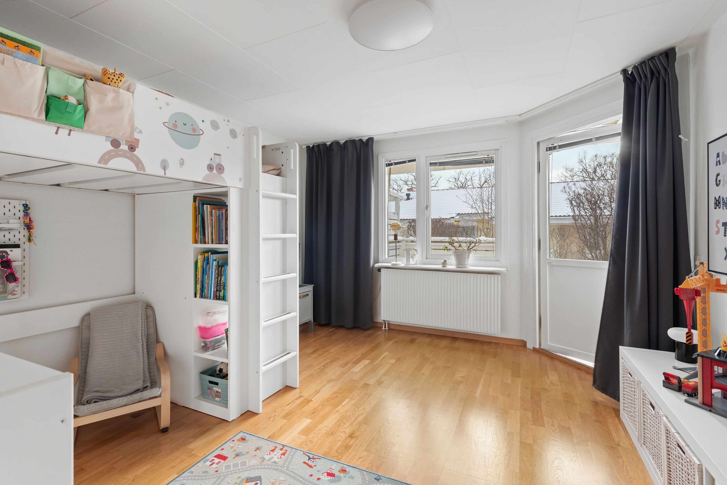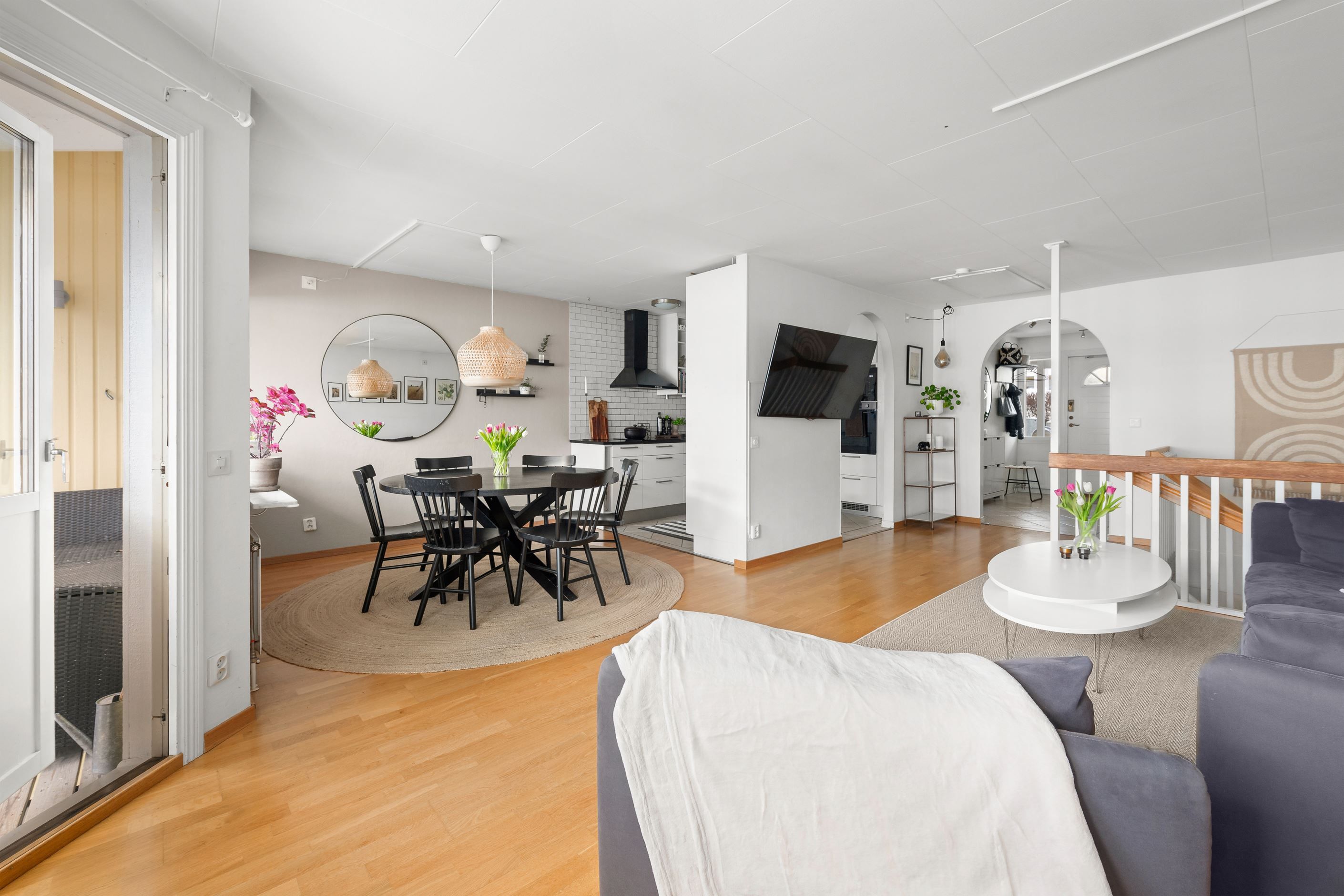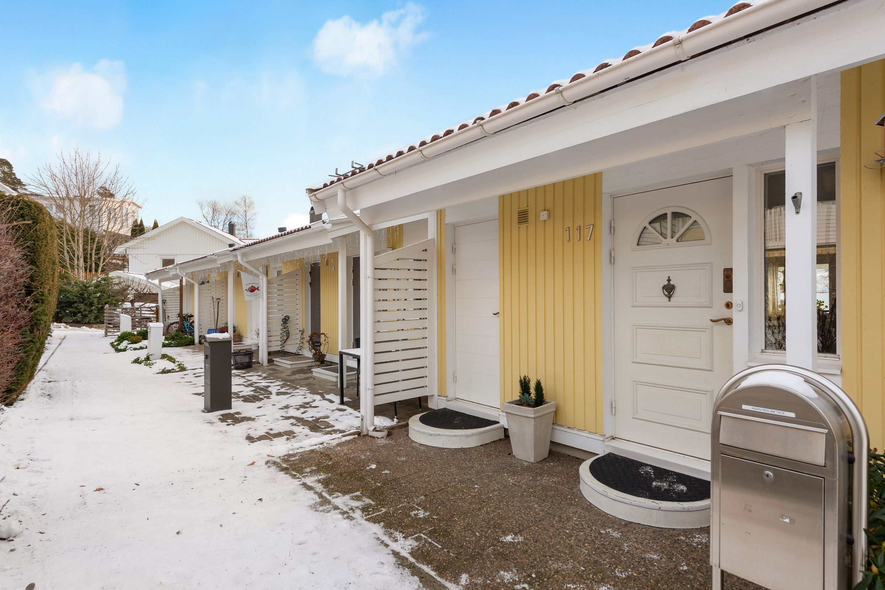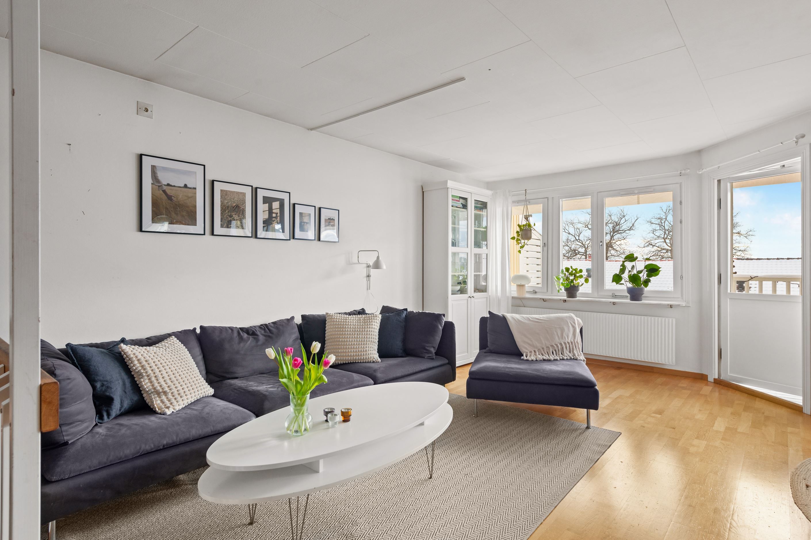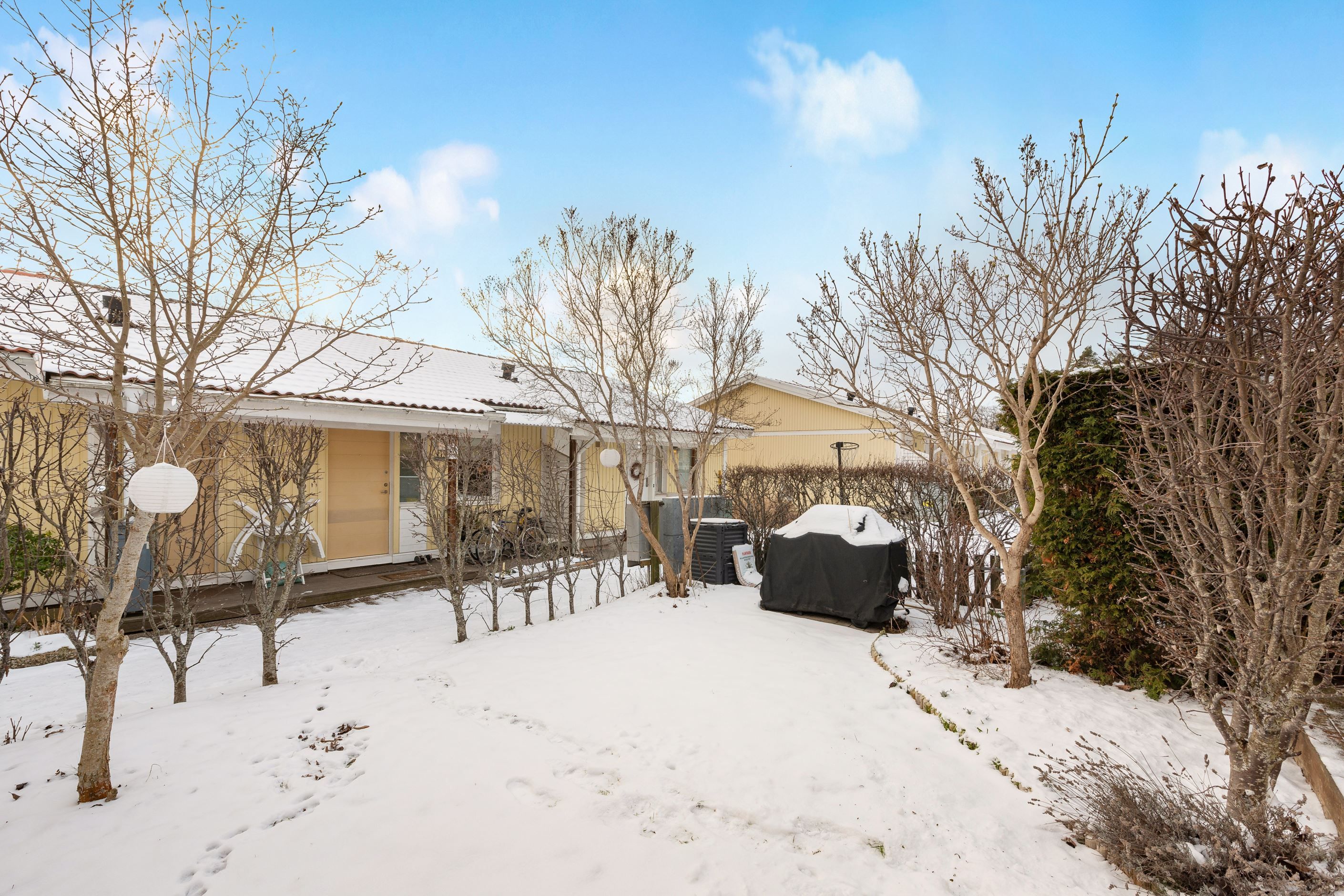 Huset erbjuder balkong och altan i soligt söderläge mot en lättskött trädgård. Från balkongen har du sjöglimt över takåsarna och kan njuta av morgonkaffet samtidigt som du ser segelbåtarna glida förbi. Bostaden är i mycket gott skick och har tre sovrum med möjlighet till ett fjärde, samt kök och vardagsrum på samma plan – en praktisk och trivsam planlösning.