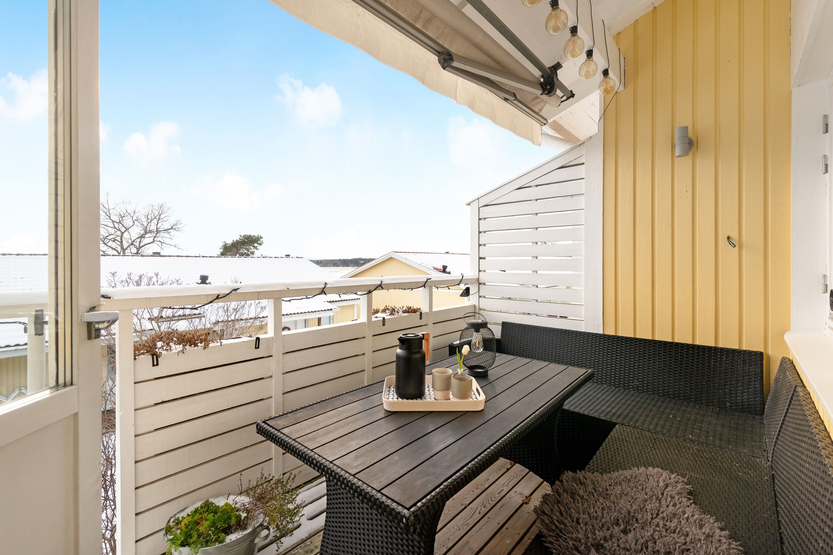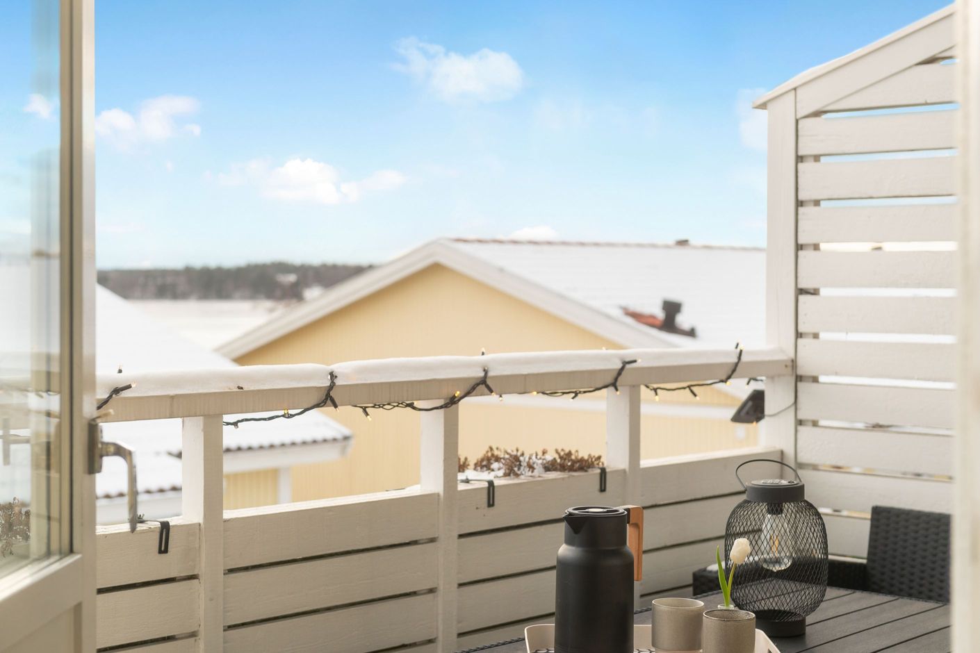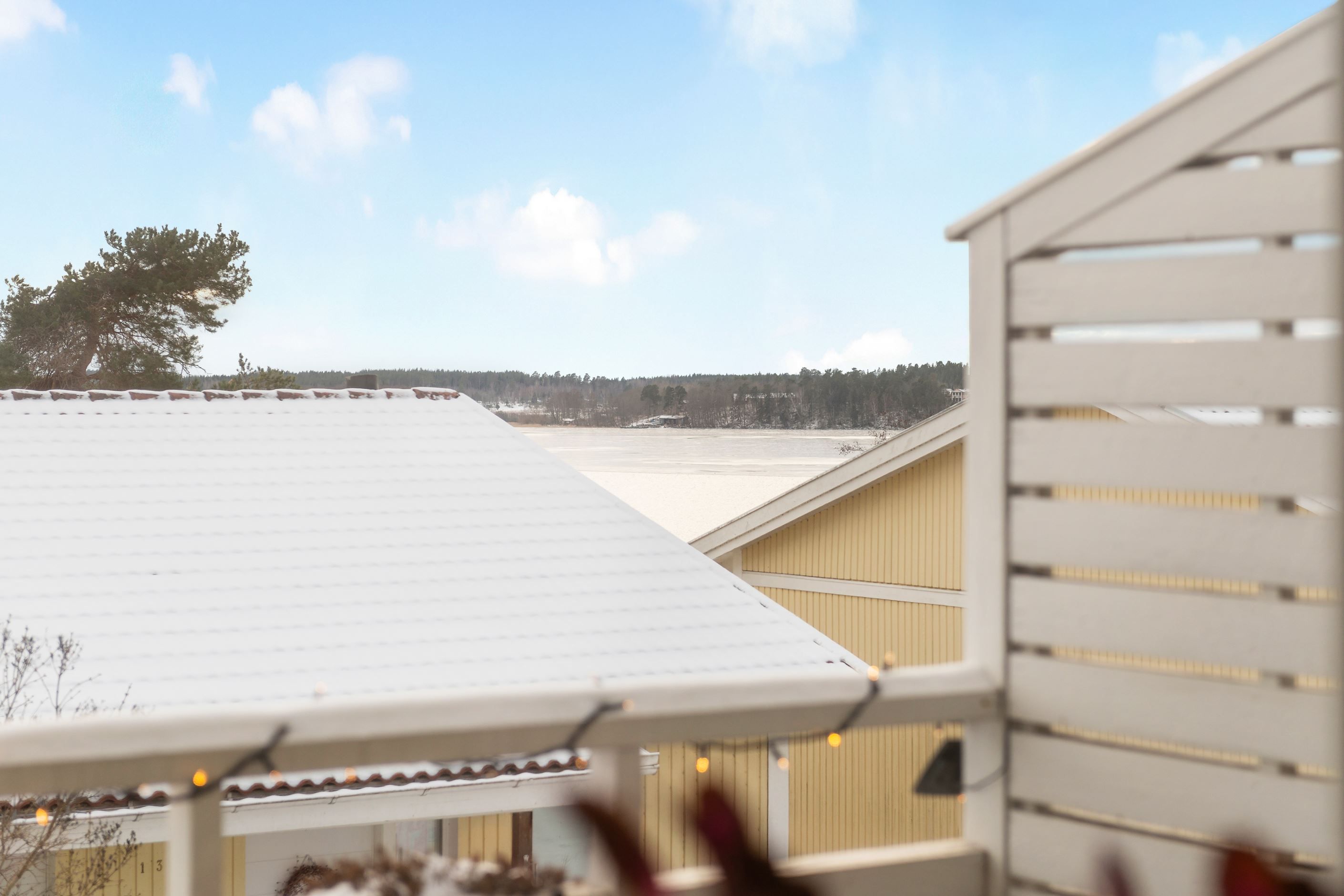 - Sjöglimt från vardagsrum och balkong